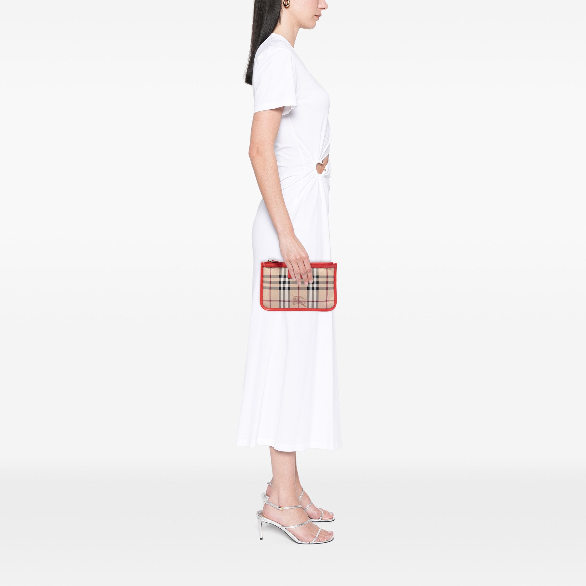 Brown Burberry Haymarket Check Coated Canvas Pouch
