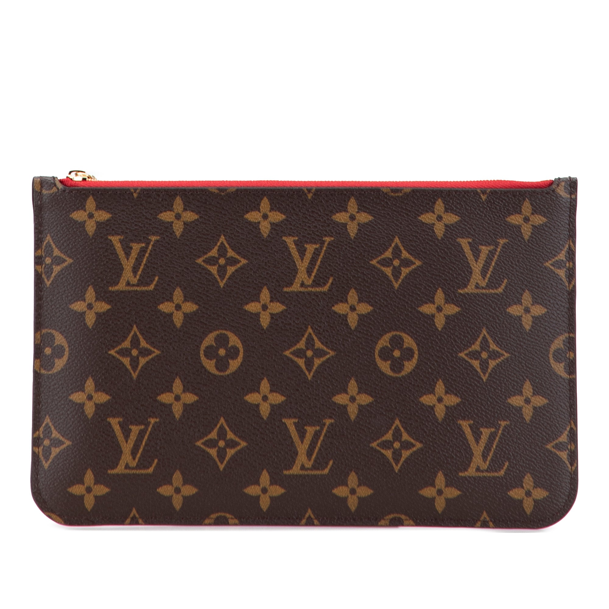 Please note this is a pre-owned item that may display signs of wear consistent with the condition listed above and shown in photos. Designer Revival guarantees this is an authentic Brown Louis Vuitton Monogram Neverfull Pouch or 100% of your money back. Learn more about our authentication process.