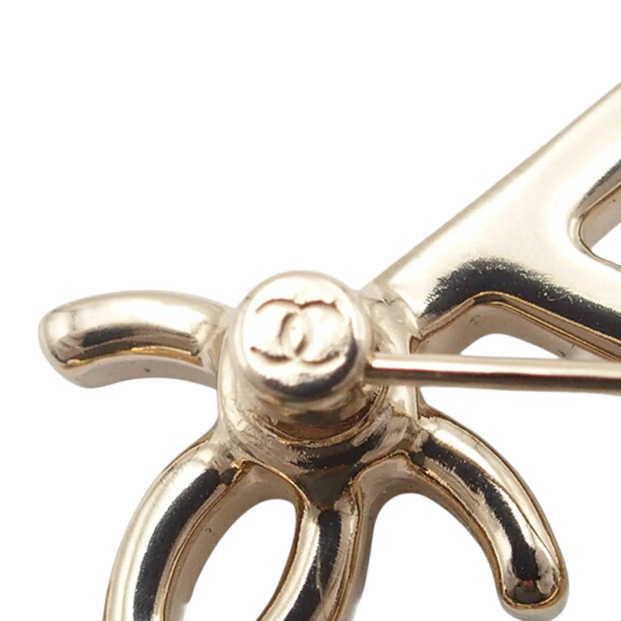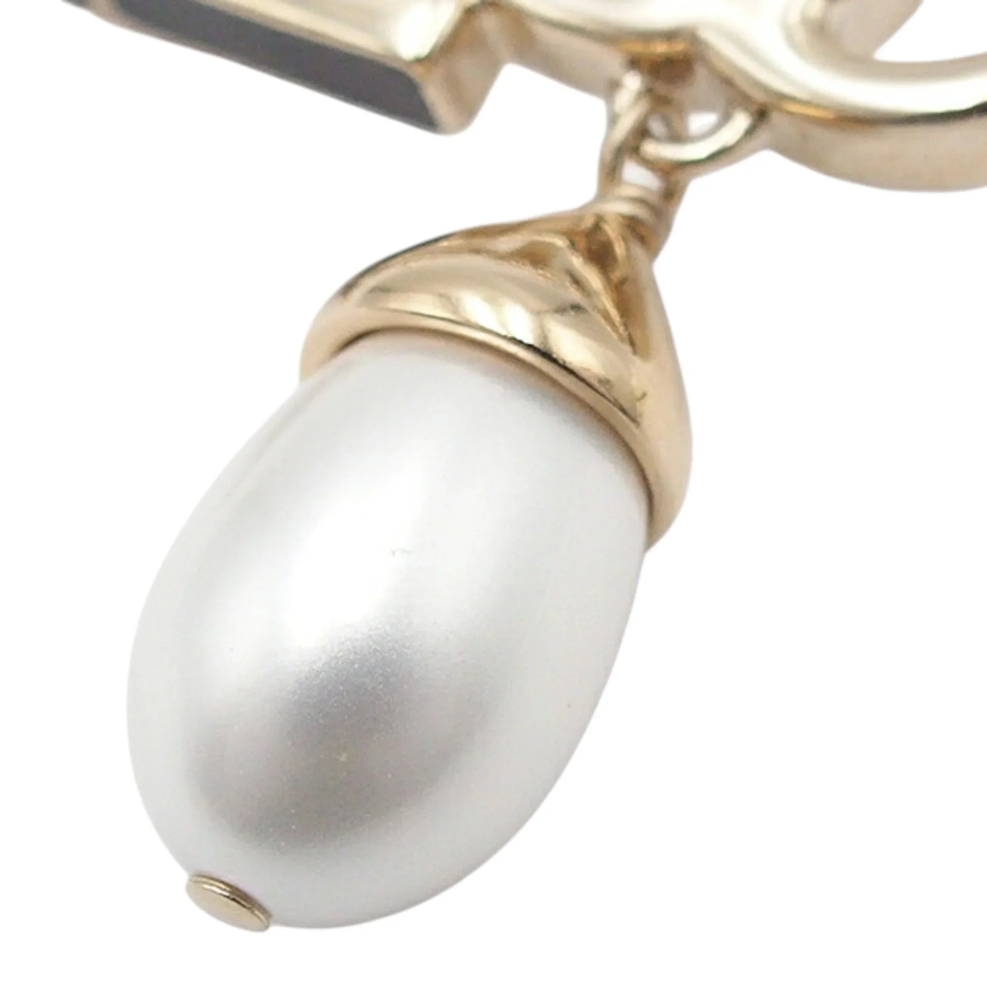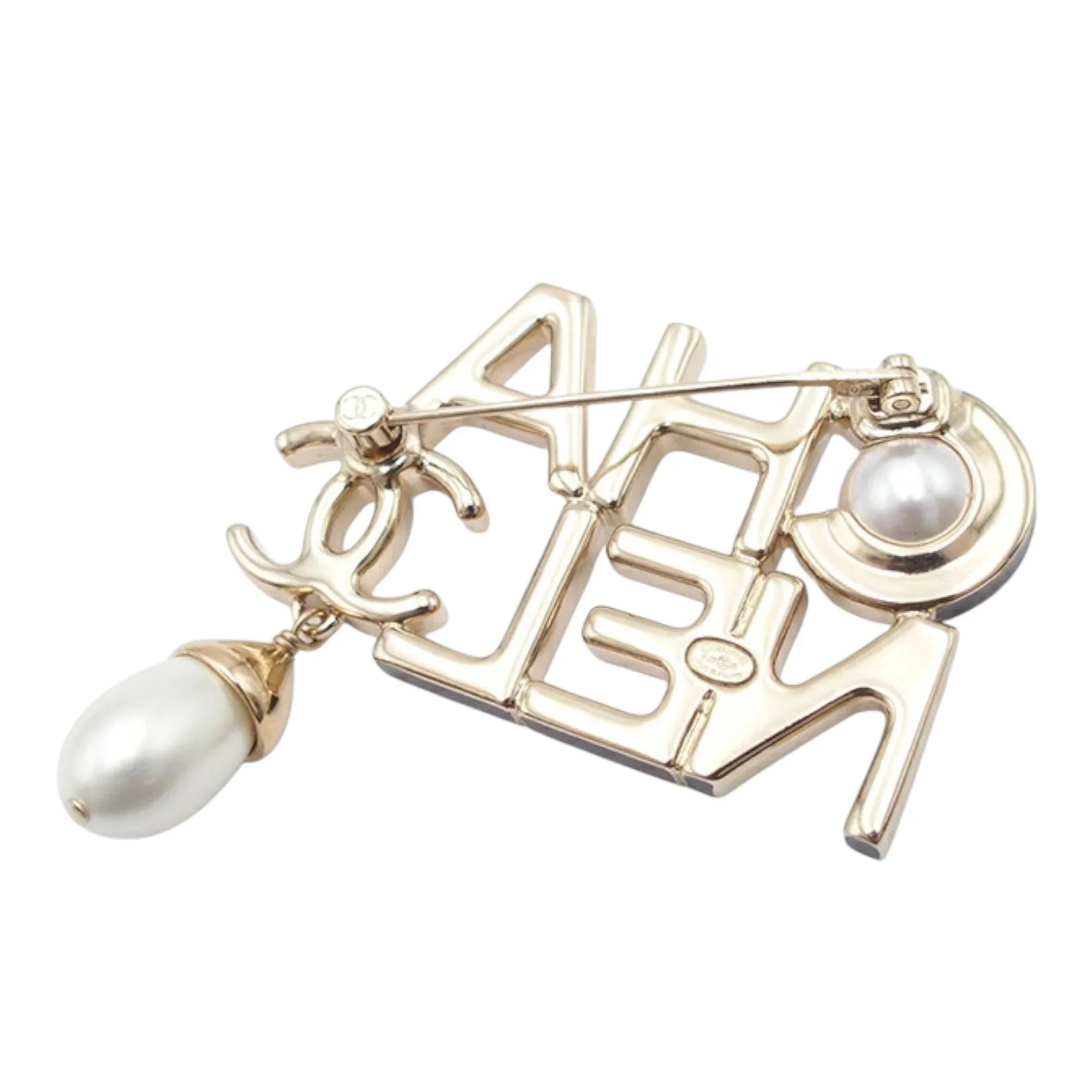 Gold Chanel CC Gold Plated Faux Pearl Logo Brooch