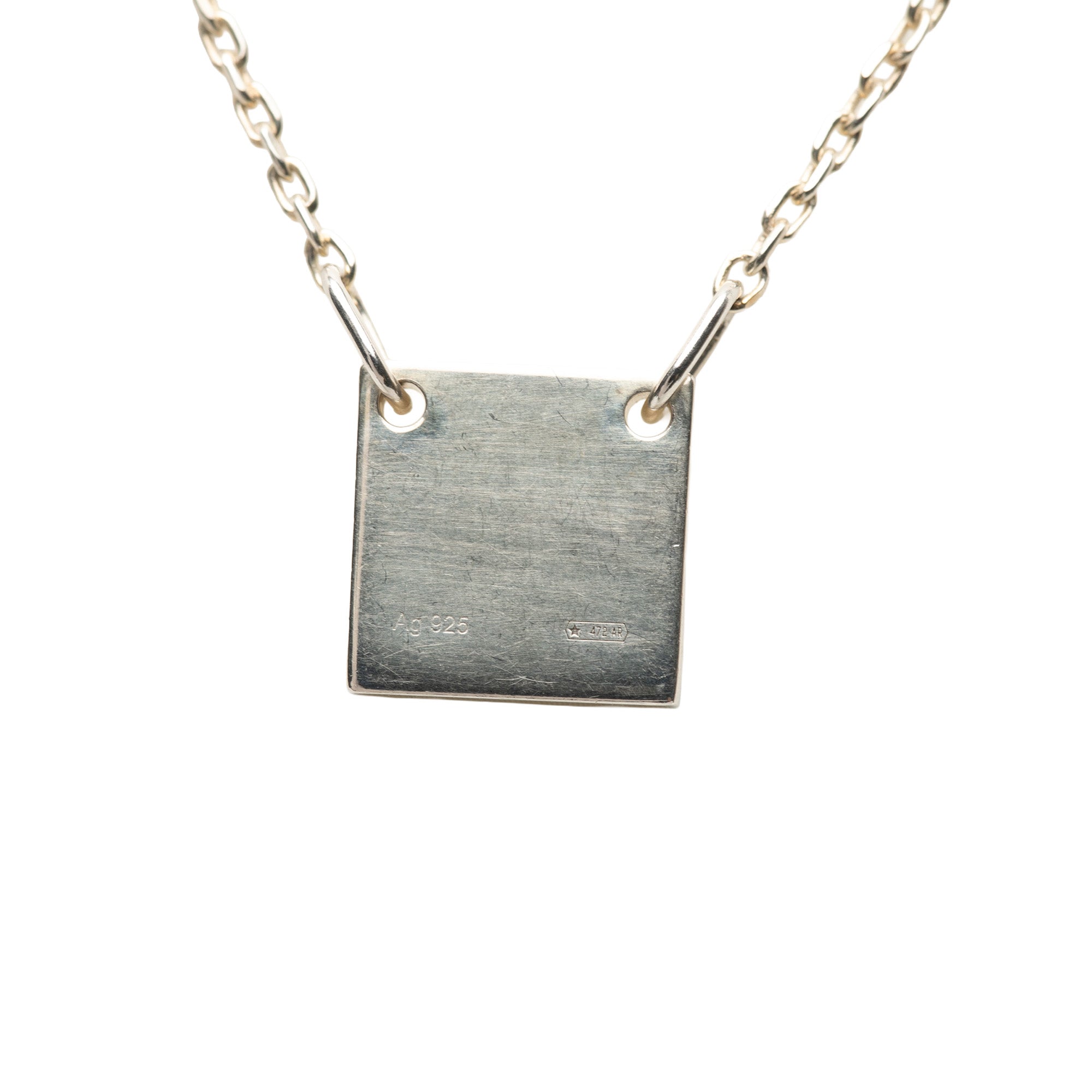 Silver Gucci Sterling Silver Square Plate Logo Pendant Necklace