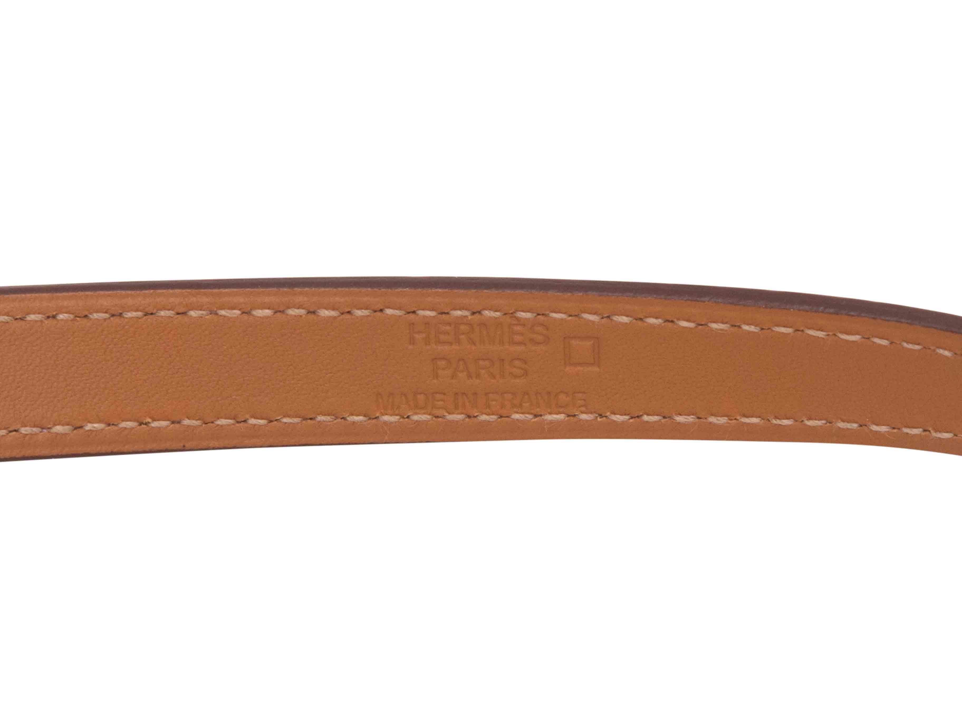 Product Details: Pink crocodile Mini Kelly Double Tour Bracelet by Hermes. Palladium-plated turn-lock hardware. 0.5" height, 14" length.