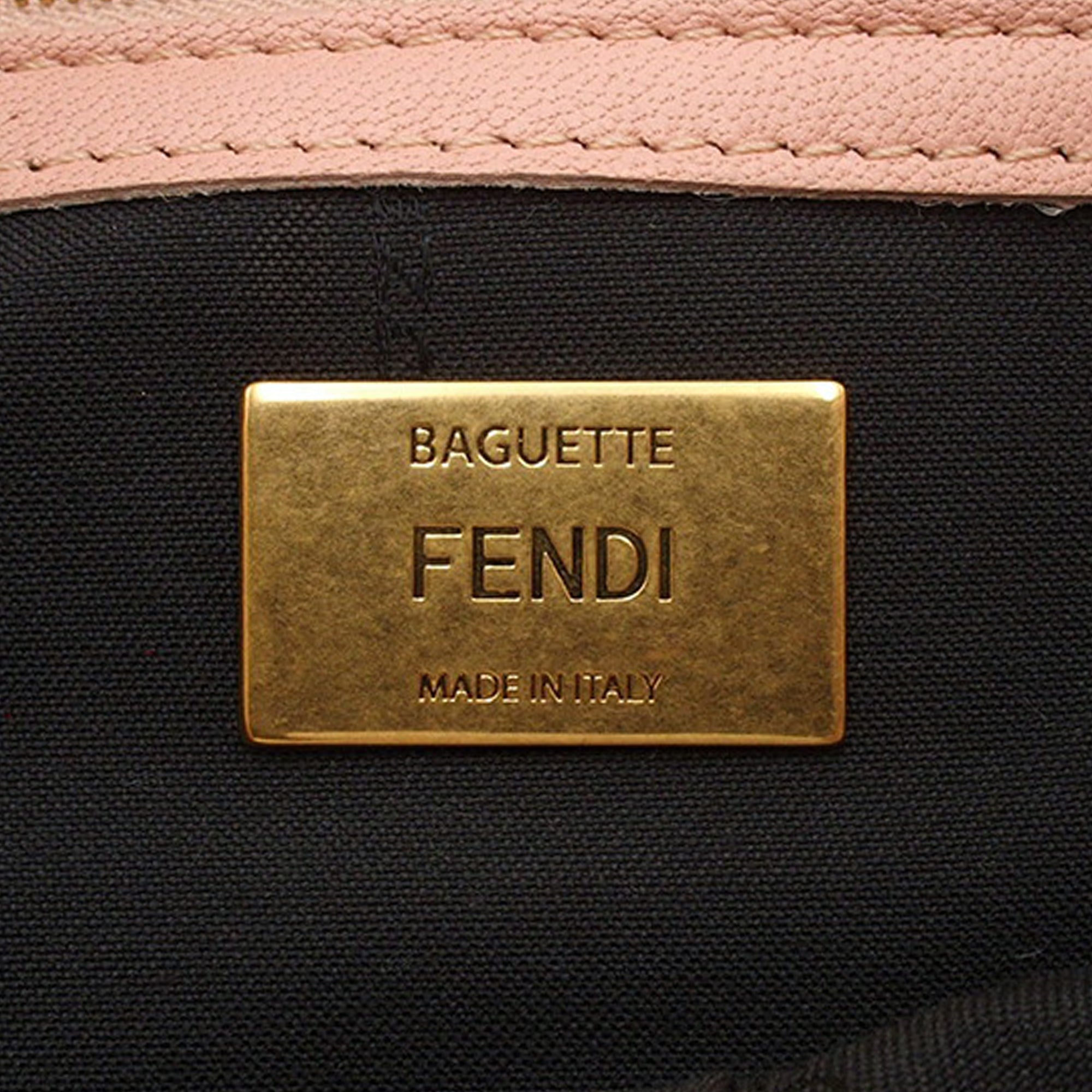 Pink Fendi Zucca Embossed Leather Baguette Satchel