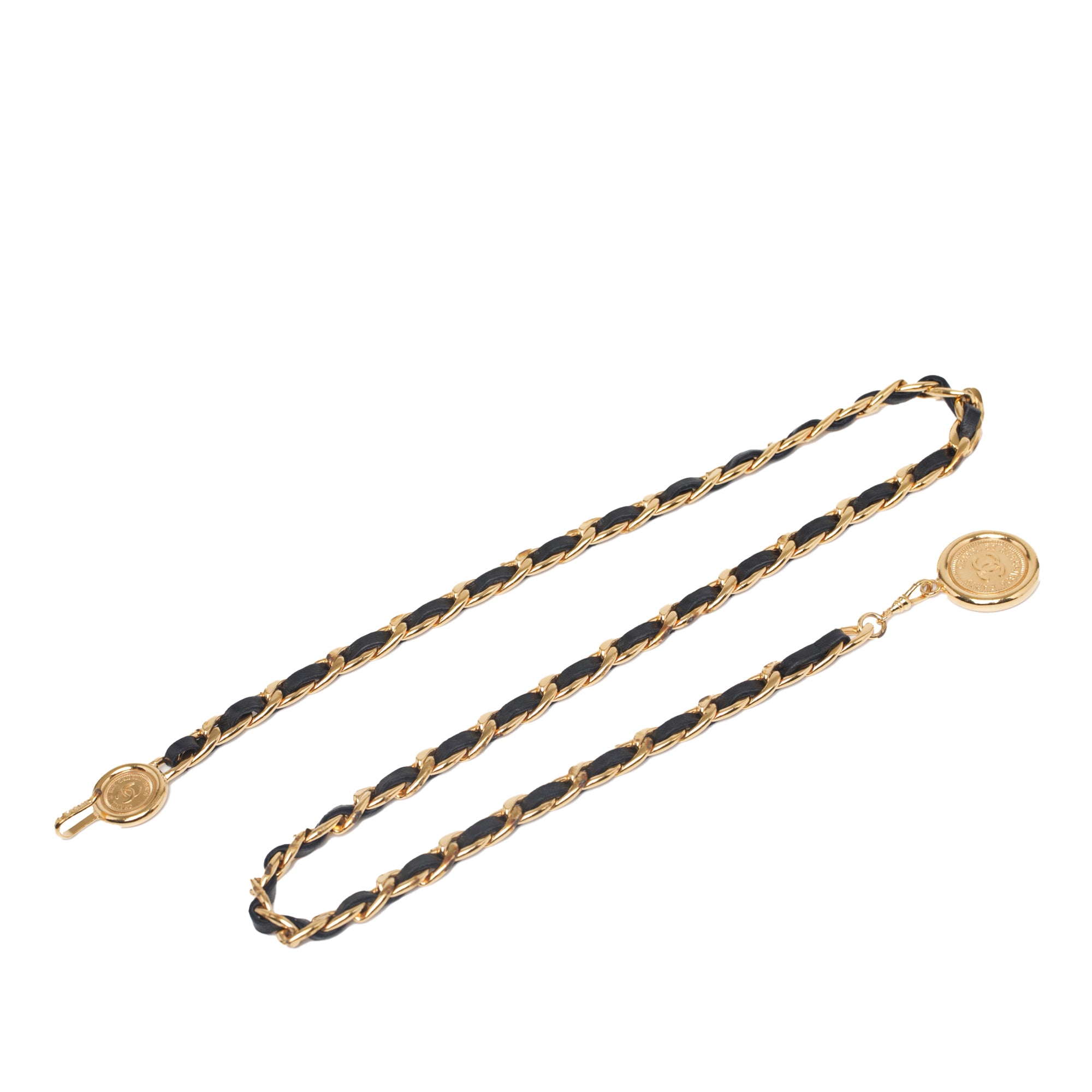 Gold Chanel Gold Plated Medallion Leather Woven Chain Belt