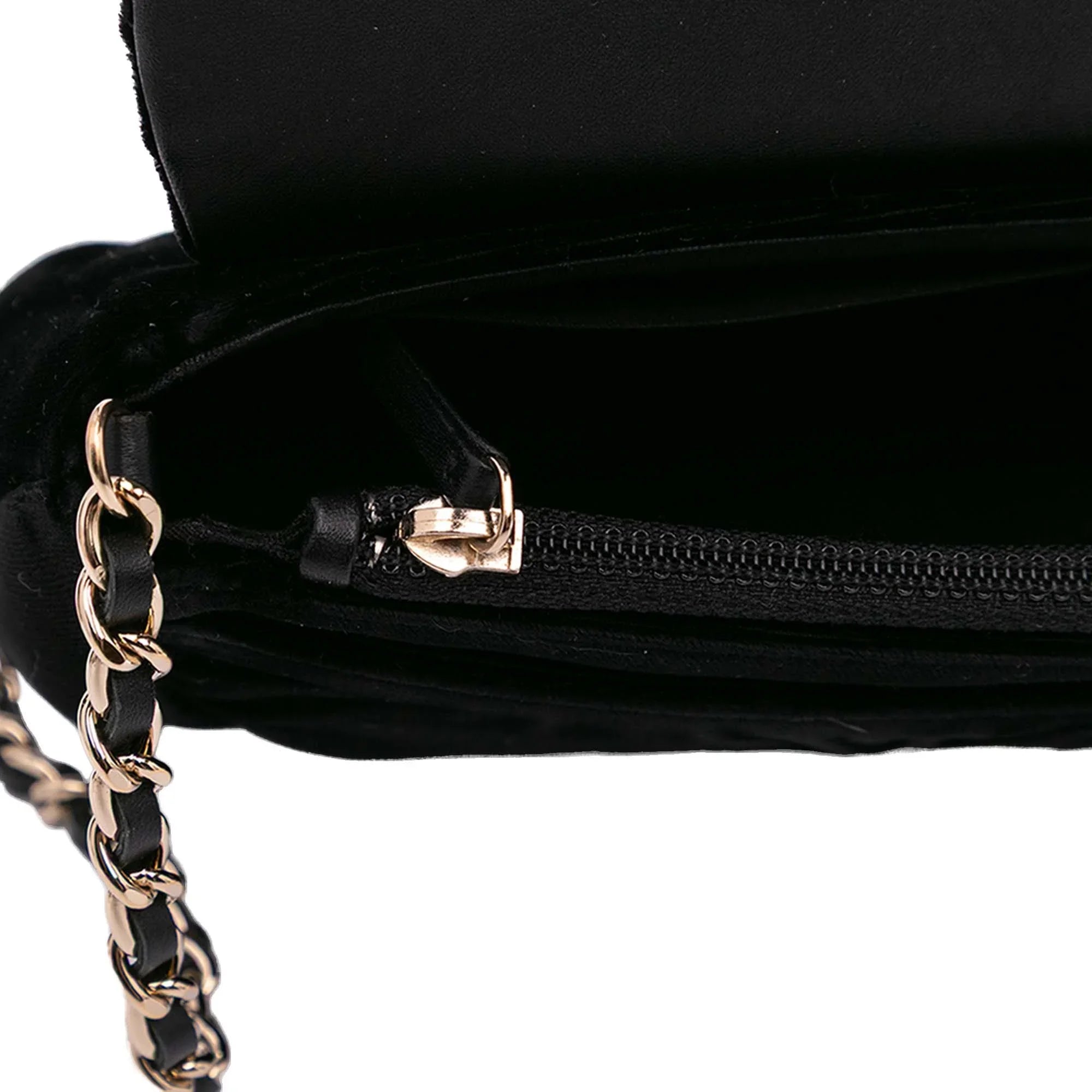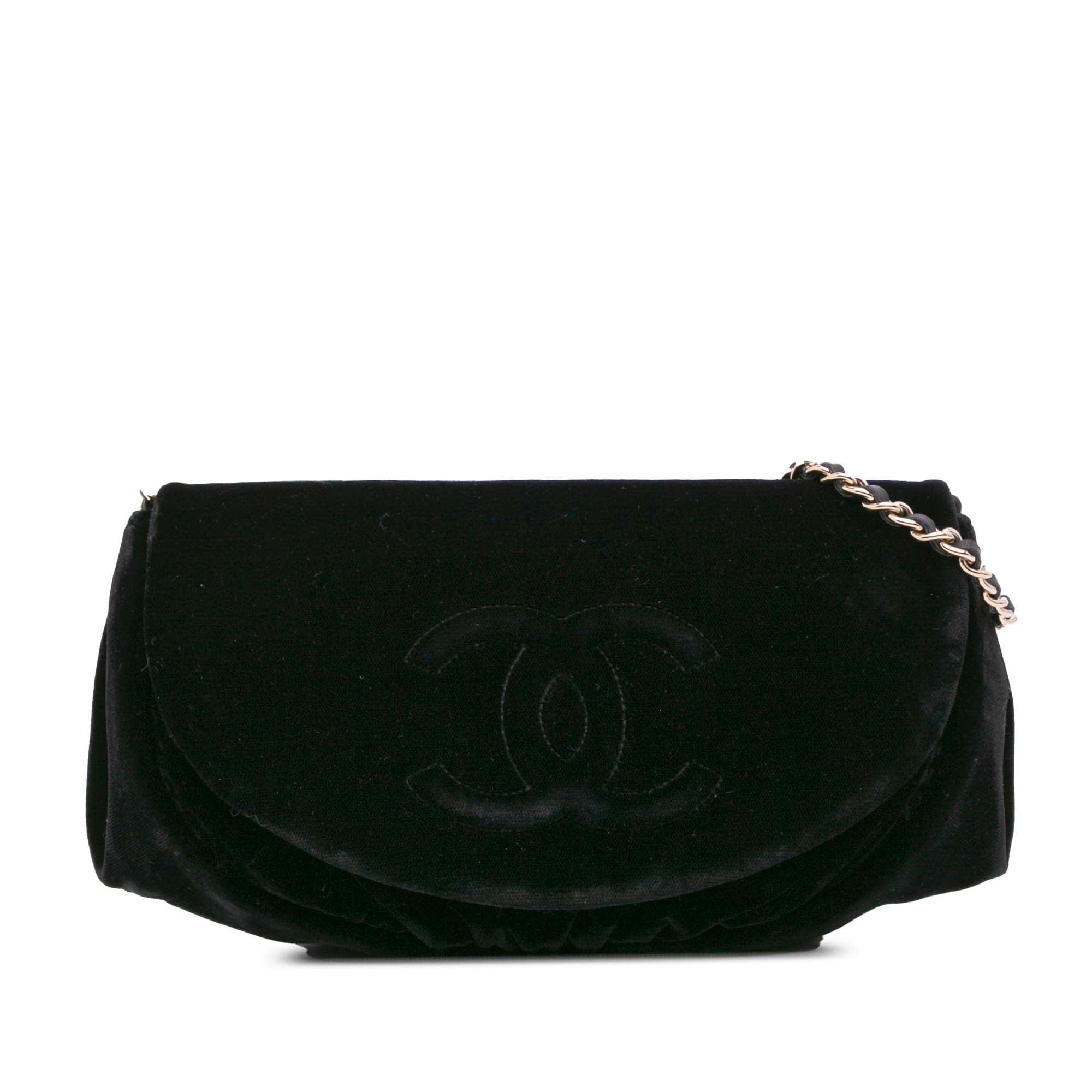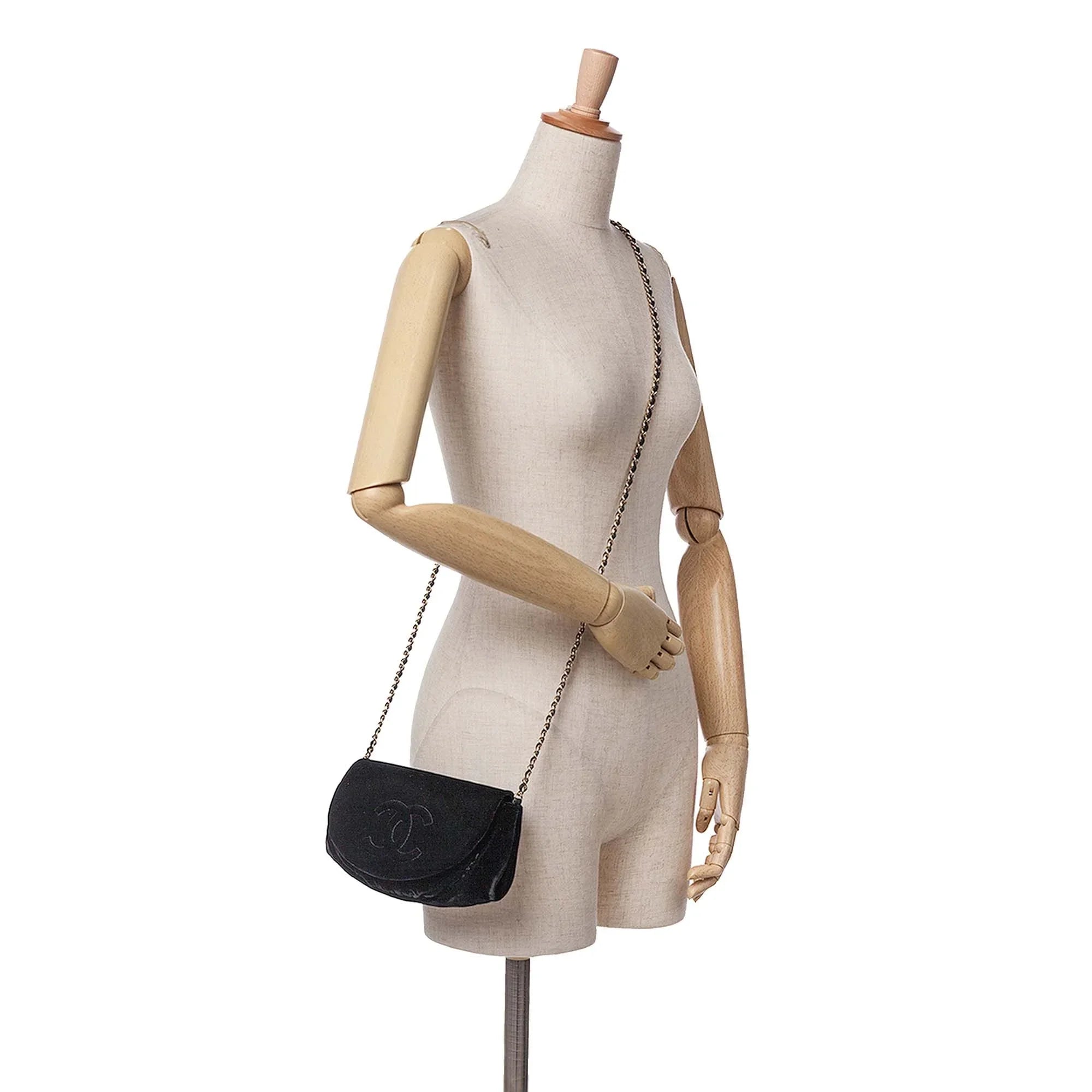 Black Chanel CC Velvet Half Moon Wallet on Chain Crossbody Bag