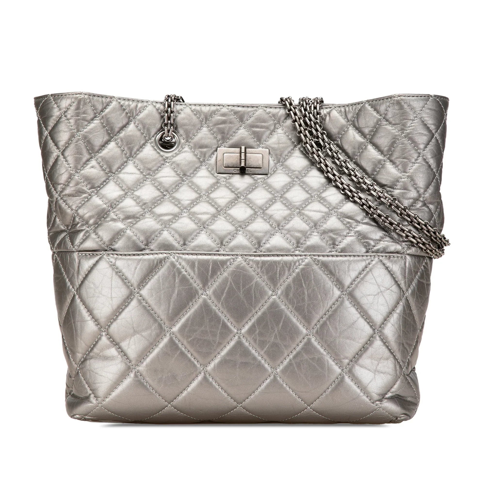 Silver Chanel Reissue 2.55 Quilted Aged Calfskin Tote