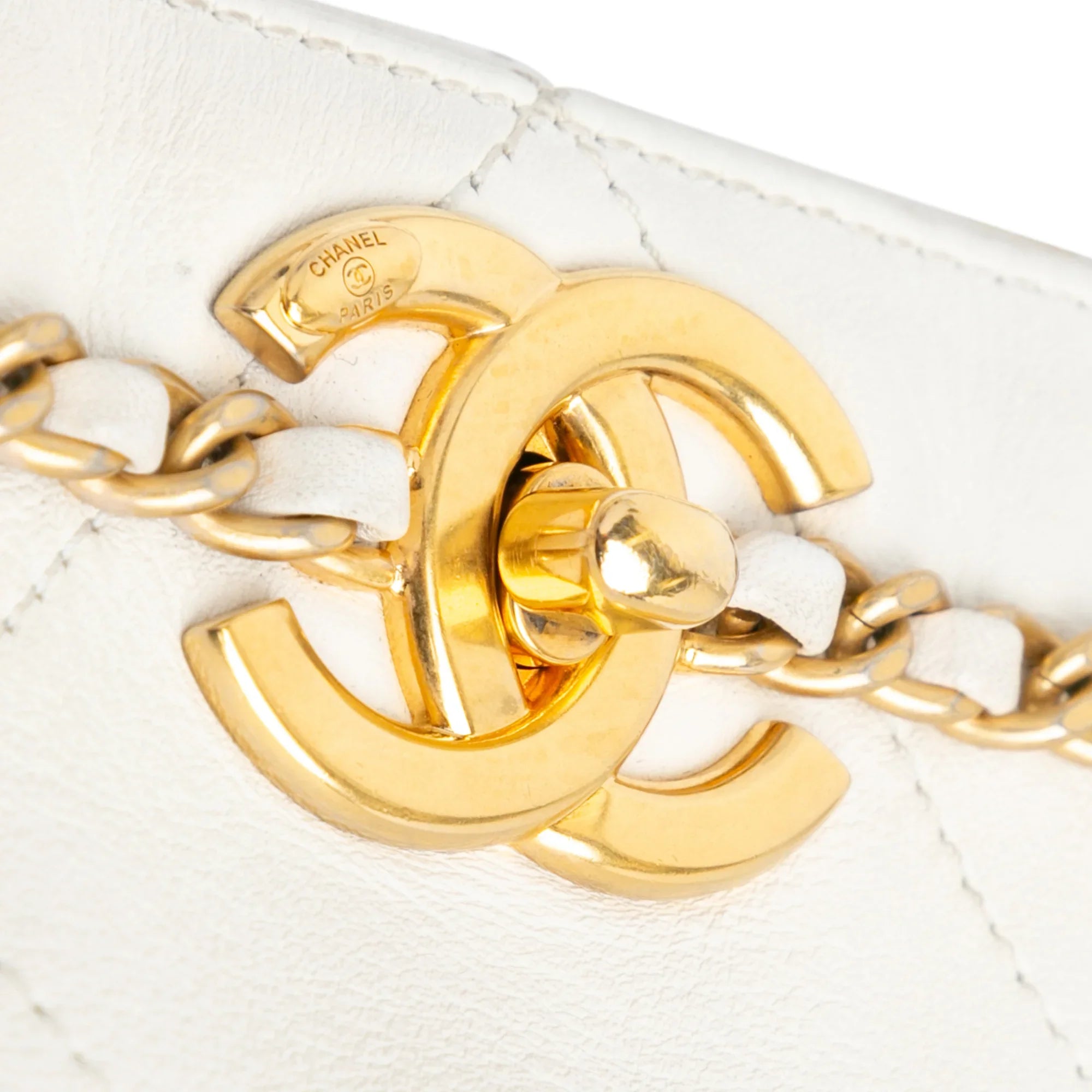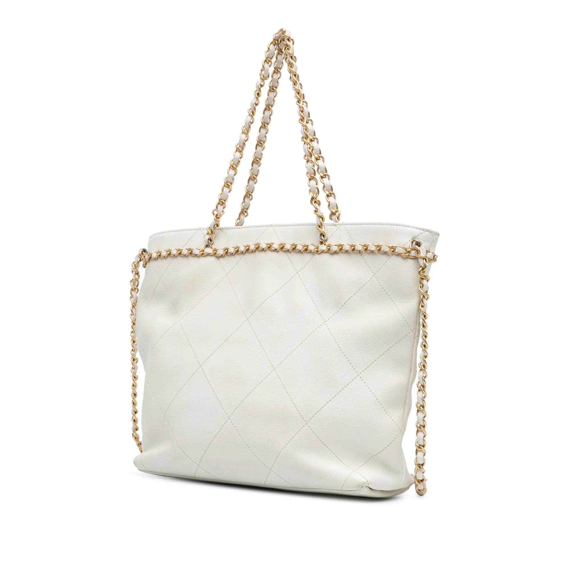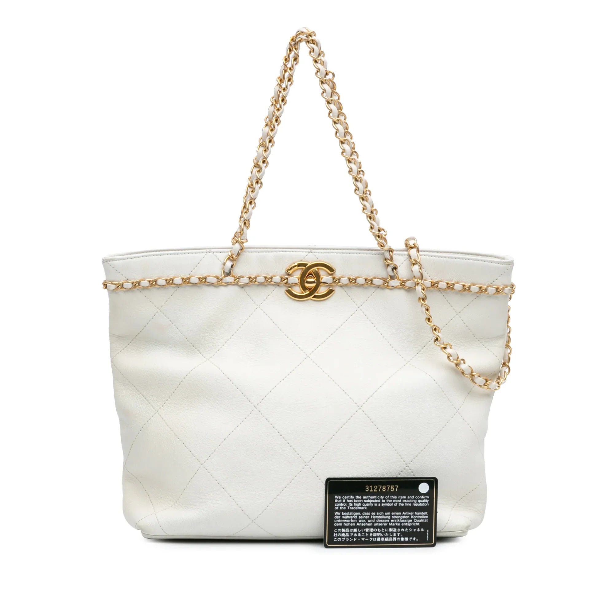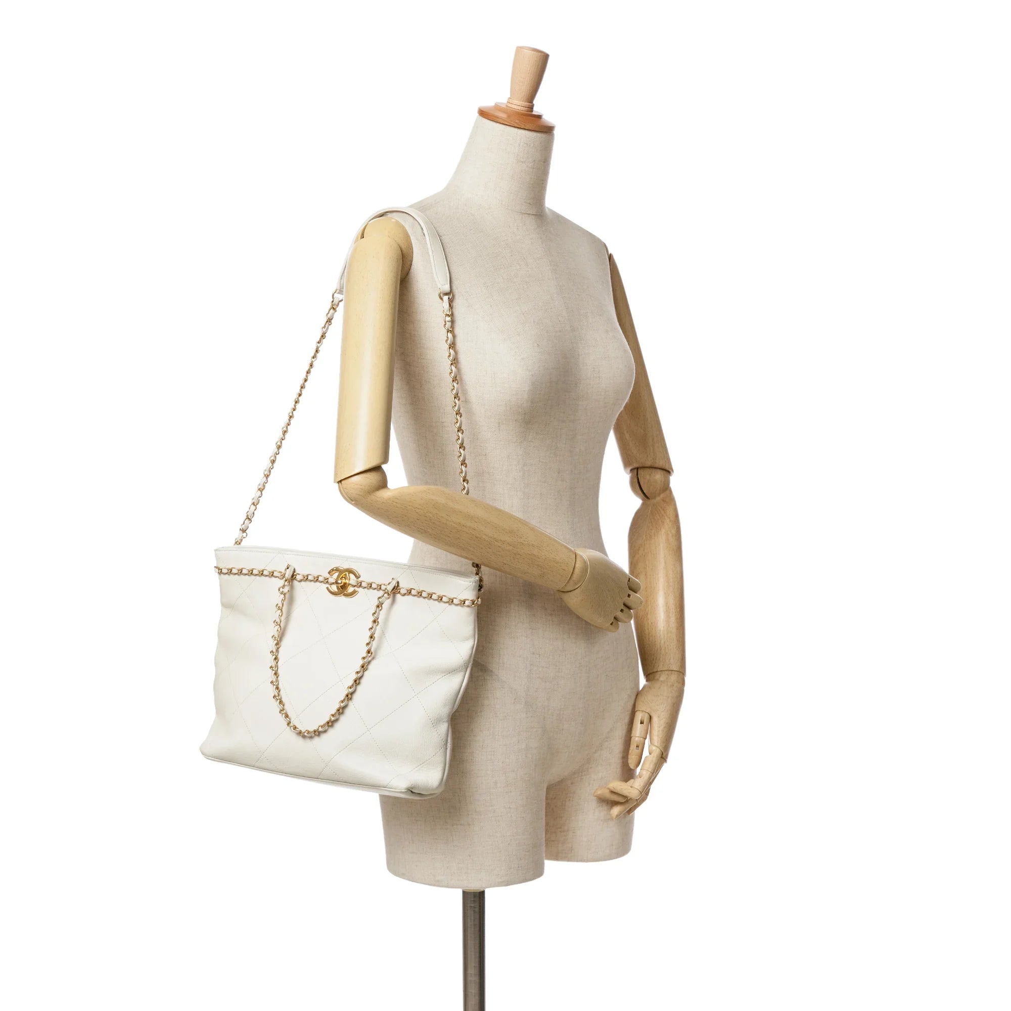 White Chanel Quilted Calfskin CC Lock Chain Shopping Tote Satchel