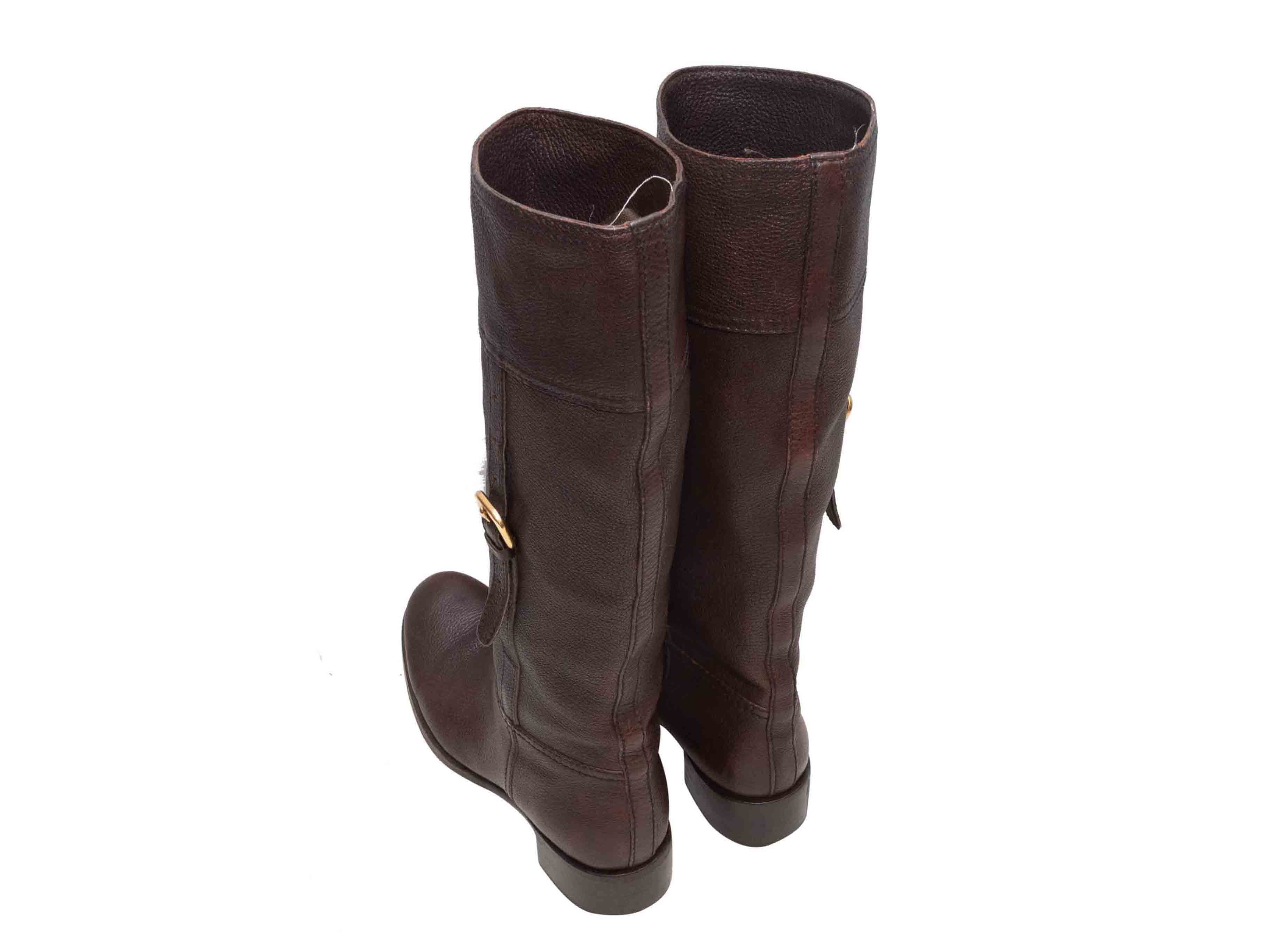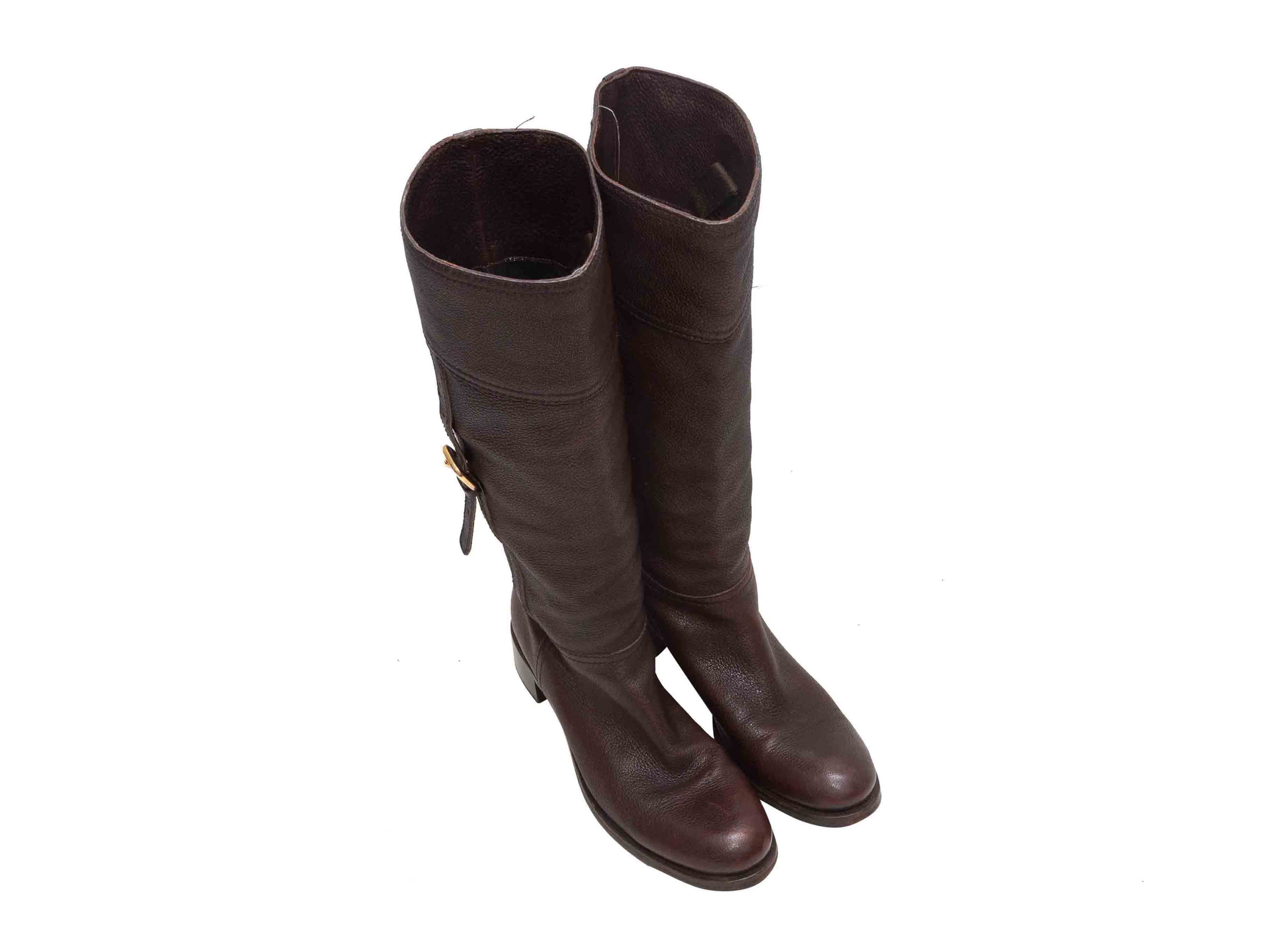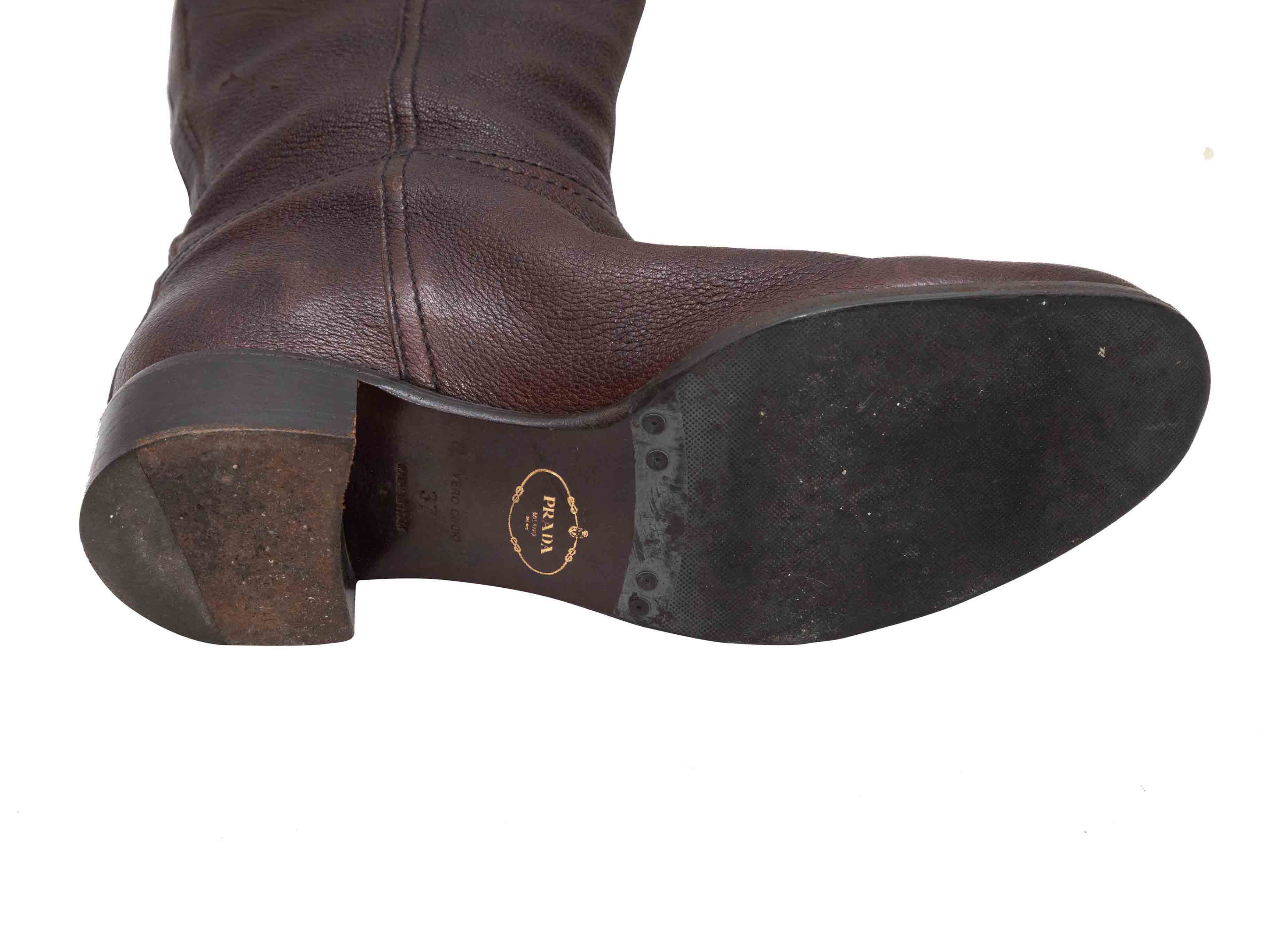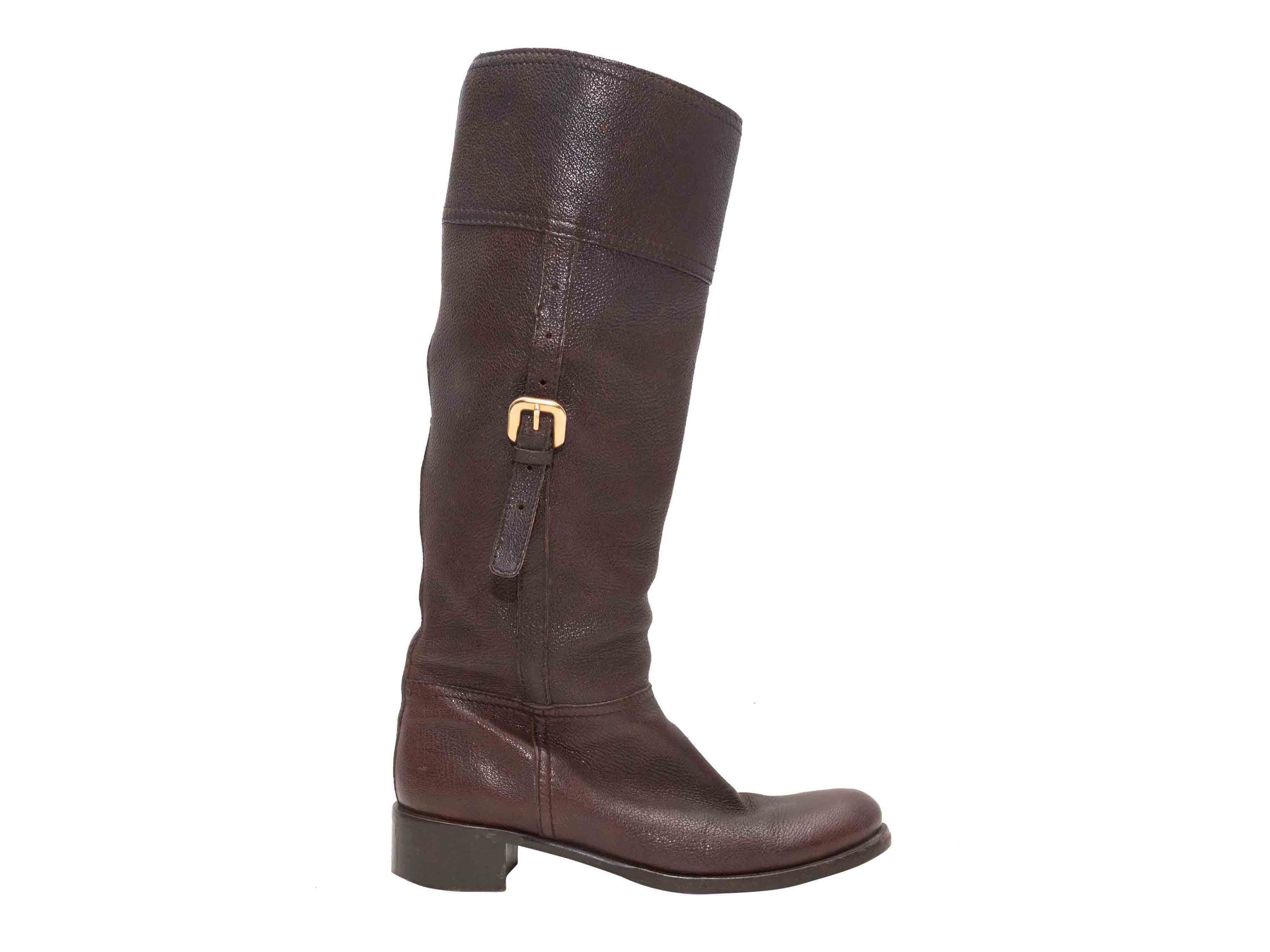 Brown Prada Knee-High Leather Buckle Boots Size 37