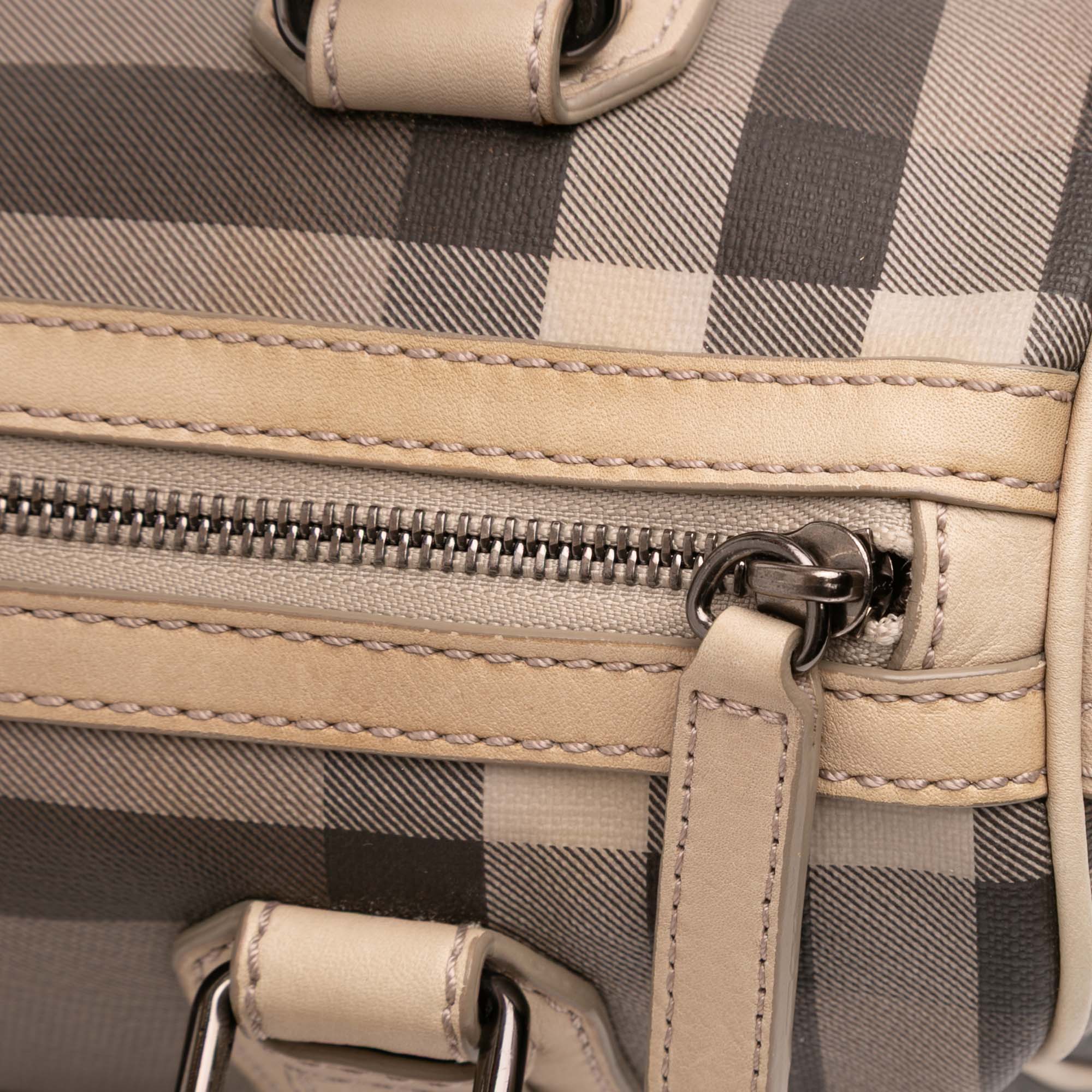 Brown Burberry Smoke Check Coated Canvas Chester Boston Bag