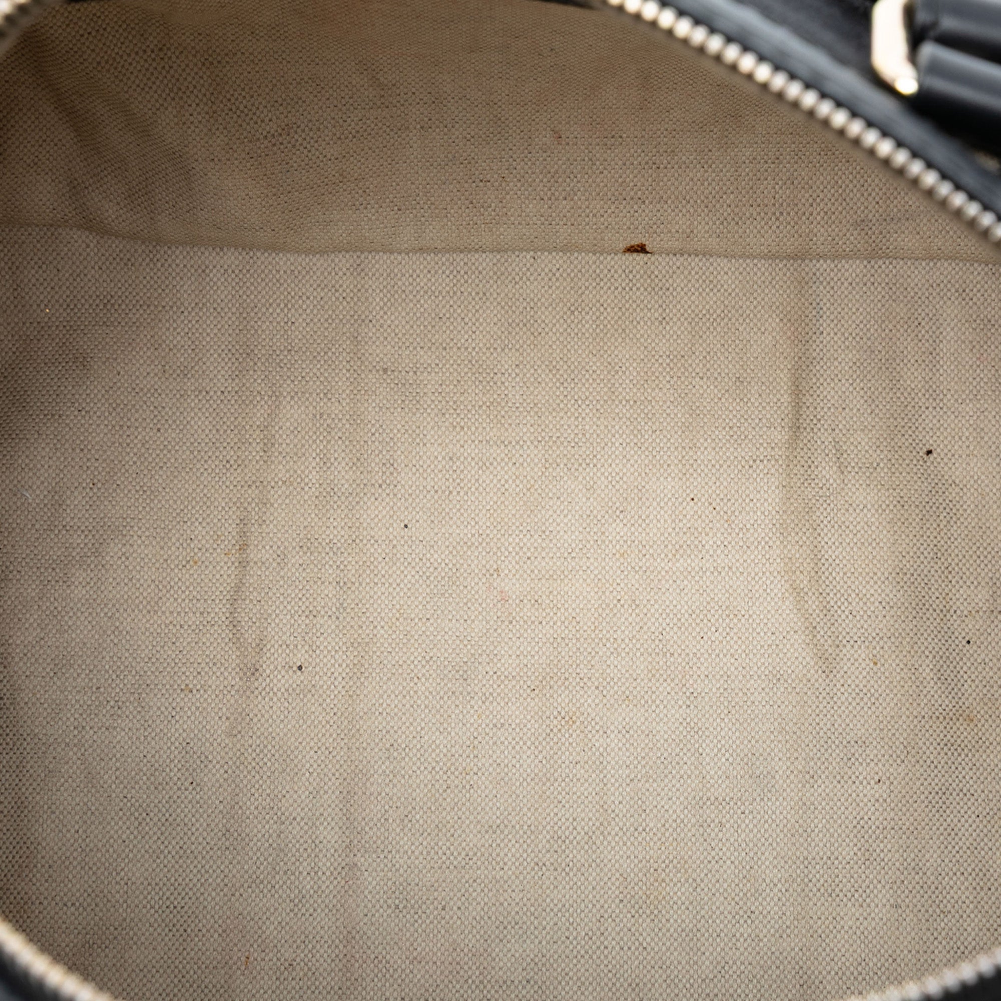 Condition: Pre-owned. Good. Exterior Back Creased, Scratched. Exterior Back stained with Other. Exterior Bottom Creased, Loose Stitching. Exterior Corners Worn. Exterior Front Creased, Worn. Exterior Front stained with Other. Exterior Handle Cracked, Scratched, Worn. Exterior Handle stained with Other. Interior Pocket stained with Other. Interior Lining stained with Transfer Of Color, Other. Practical Attachment Rusty/Tarnished, Scratched. Exterior Side Scratched. Exterior Side stained with Other. Exterior Top Worn. Zipper Rusty/Tarnished, Scratched.