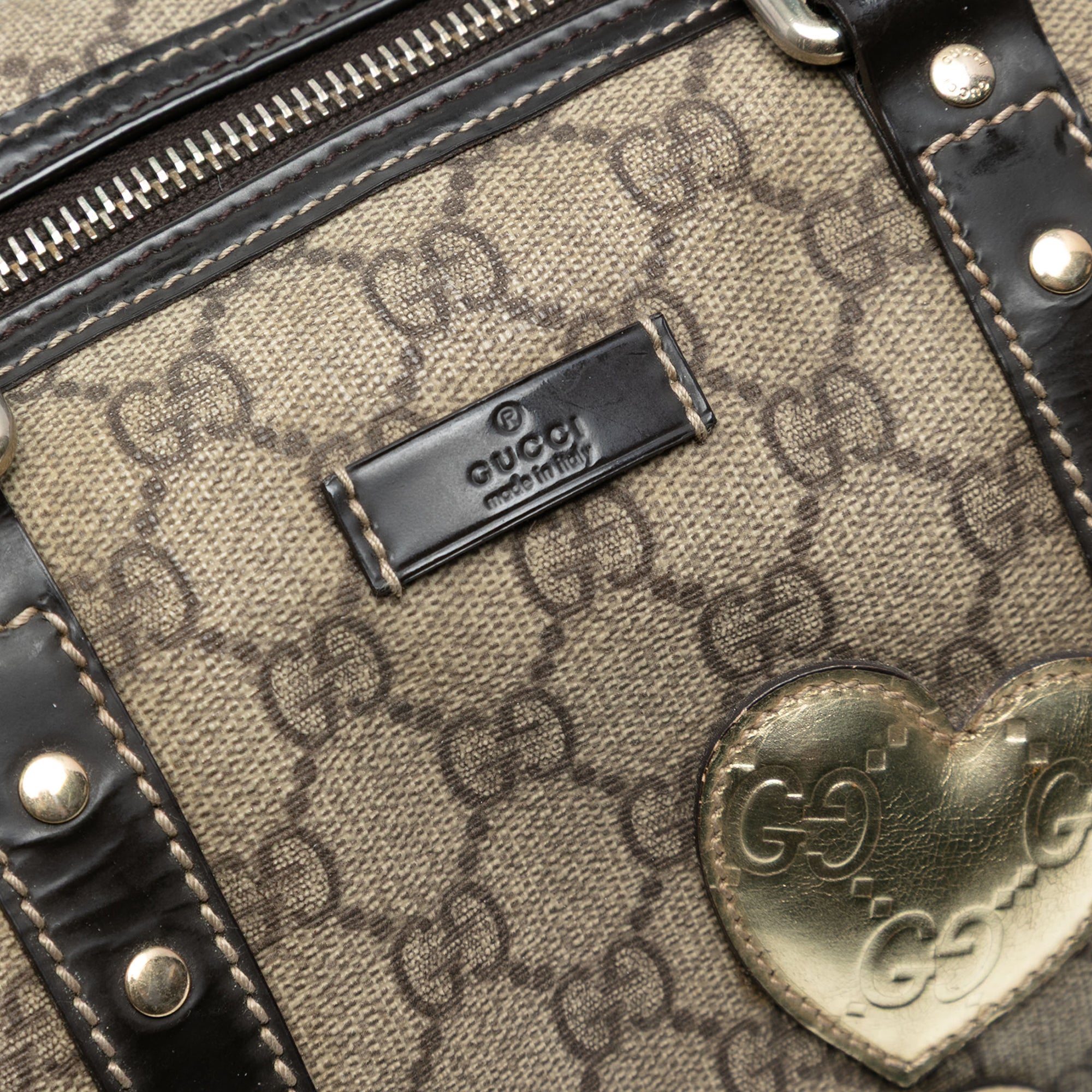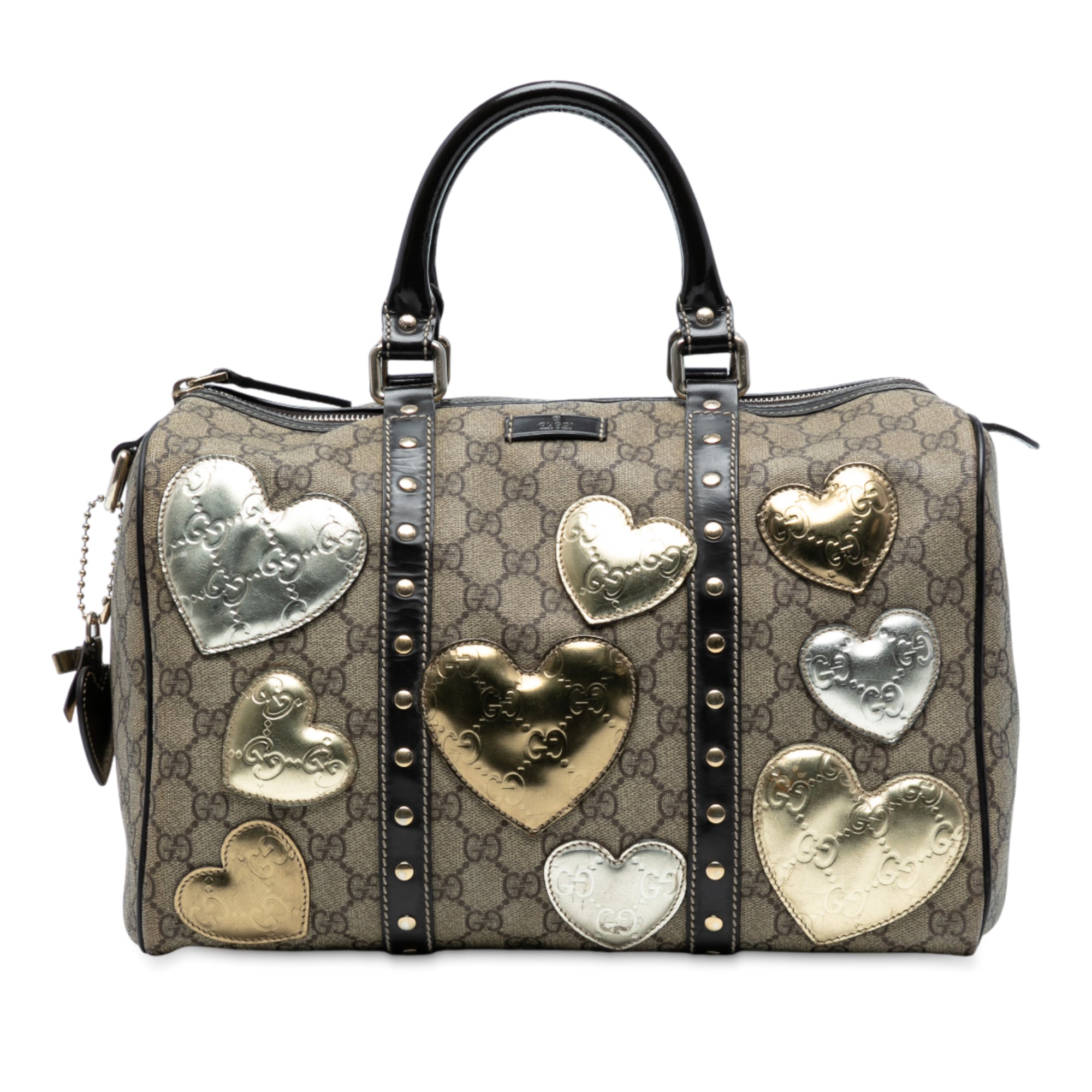 Brown Gucci Medium GG Supreme Guccissima Heart Patches Joy Boston Bag