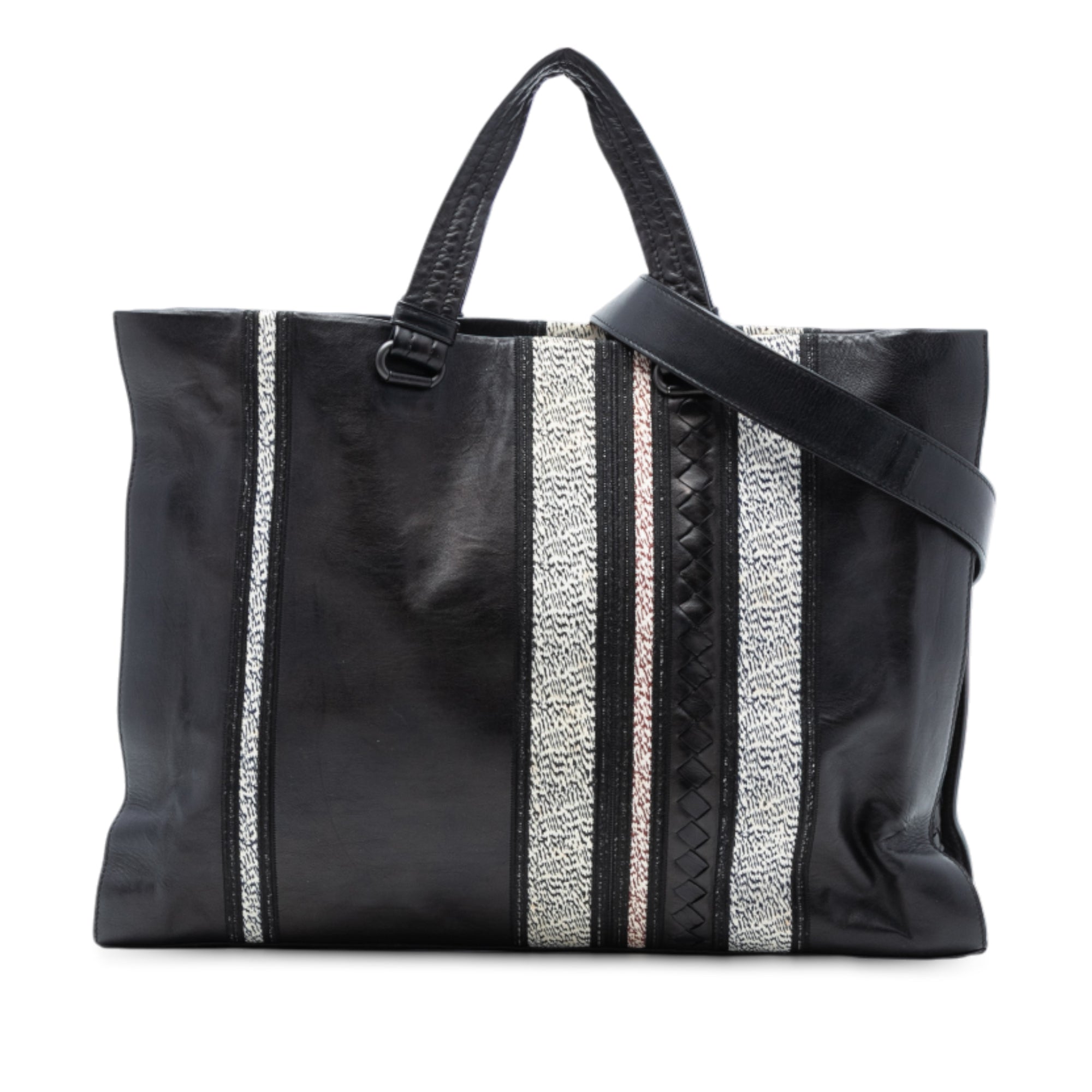 Black Bottega Veneta Intrecciato Trimmed Nappa Vertical Stripe Tote Satchel