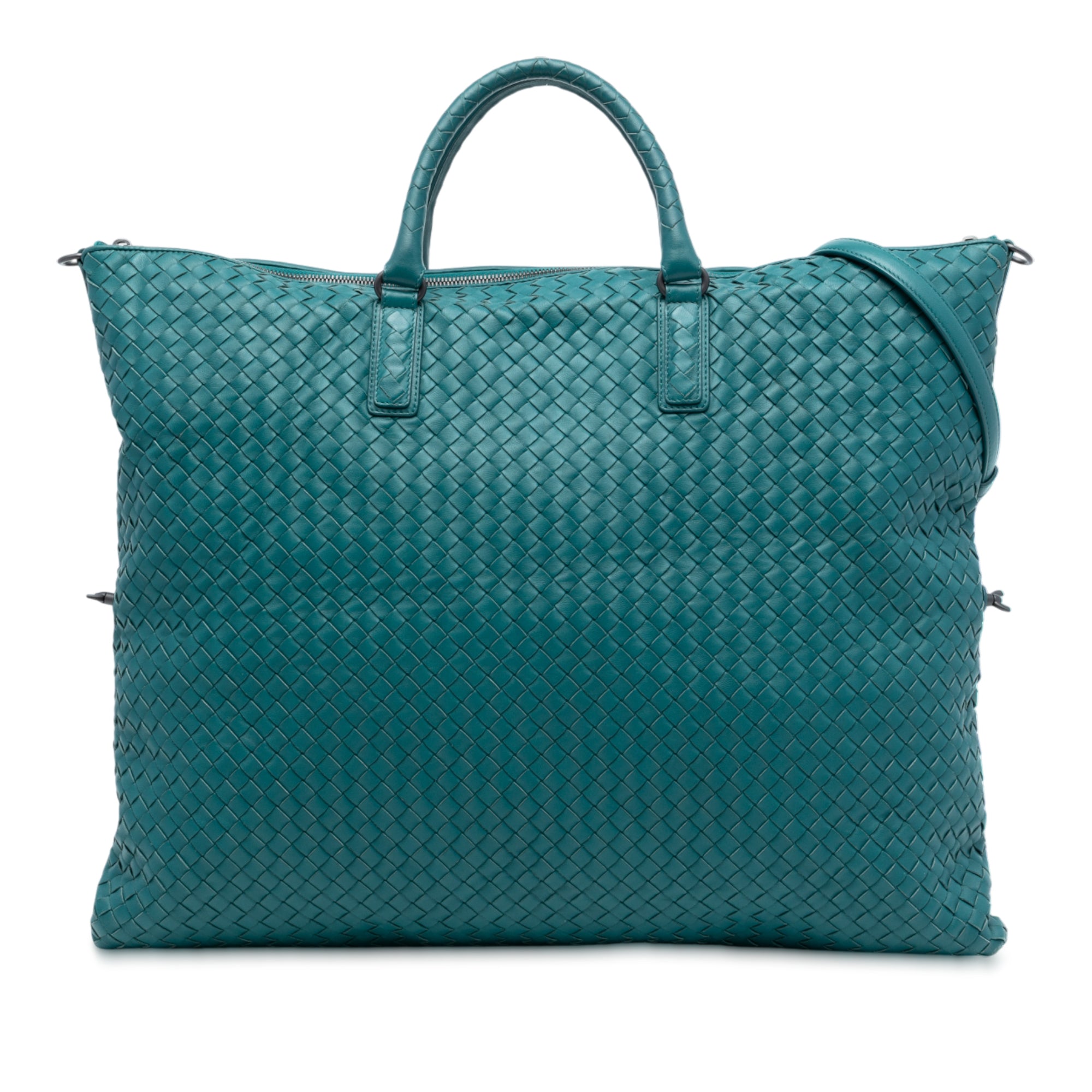 Blue Bottega Veneta Maxi Nappa Intrecciato Convertible Tote Travel Bag