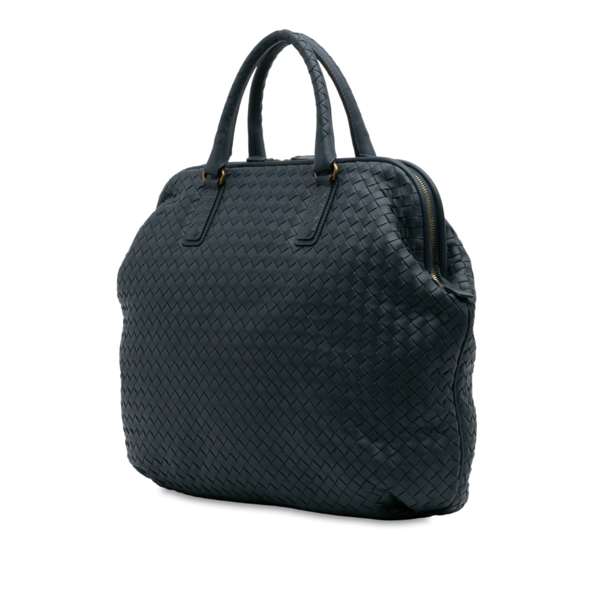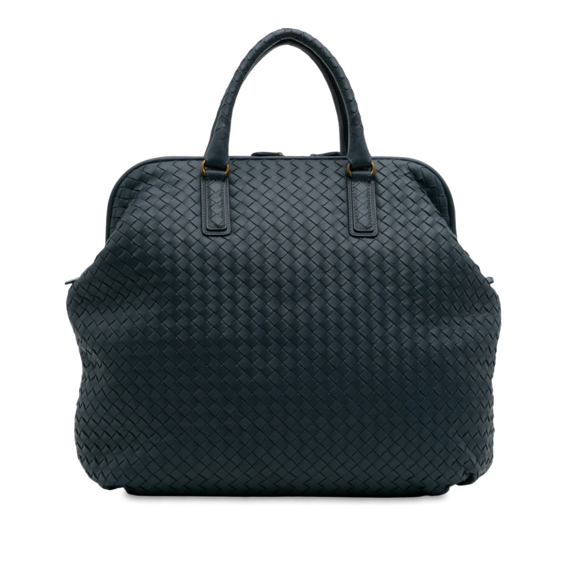 Blue Bottega Veneta Nappa Intrecciato Frame Top Handle Bag