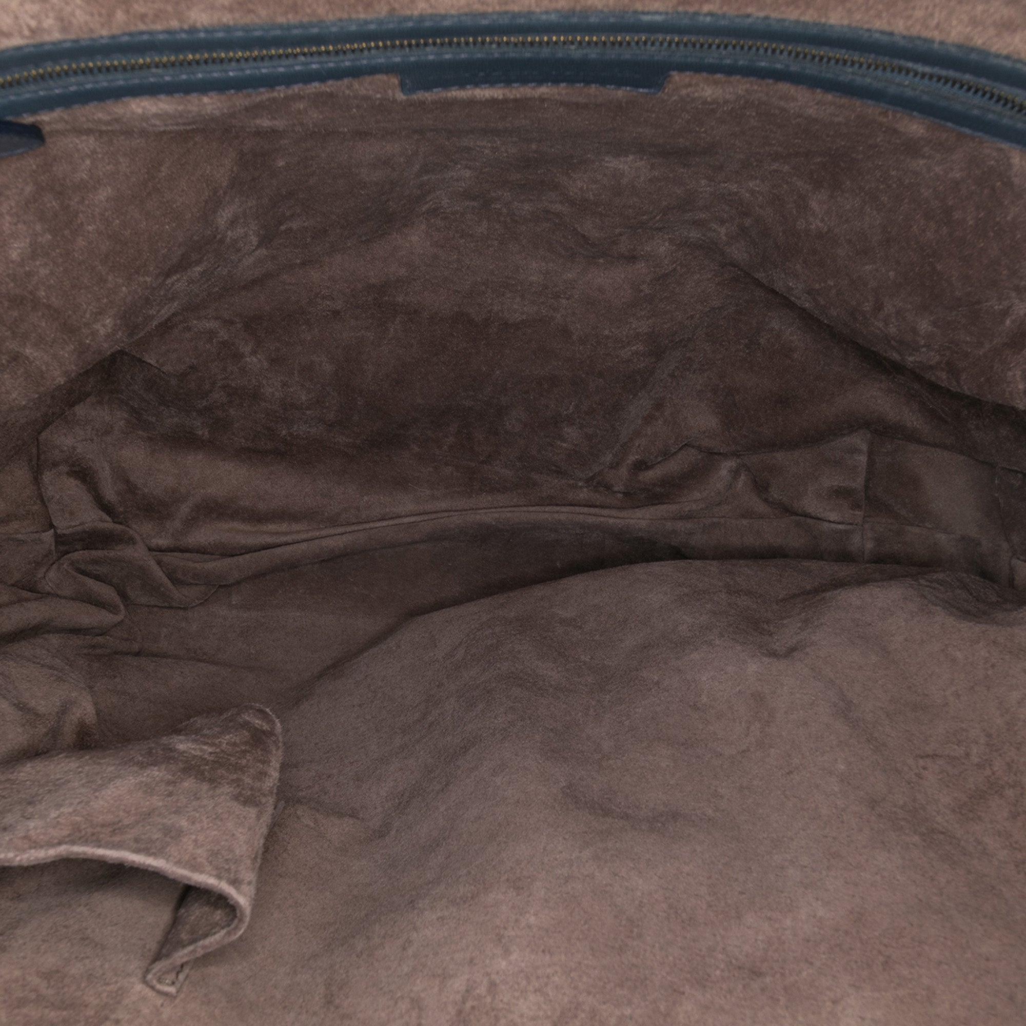 Product Details: Blue Bottega Veneta Nappa Intrecciato Frame Top Handle Bag. This travel bag features a woven nappa leather body, rolled leather top handles, a top zip closure, and interior zip and slip pockets. 15" L x 16.5" W x 5.5" D, 4.7" drop. Serial number 196349 V00A2 4007.