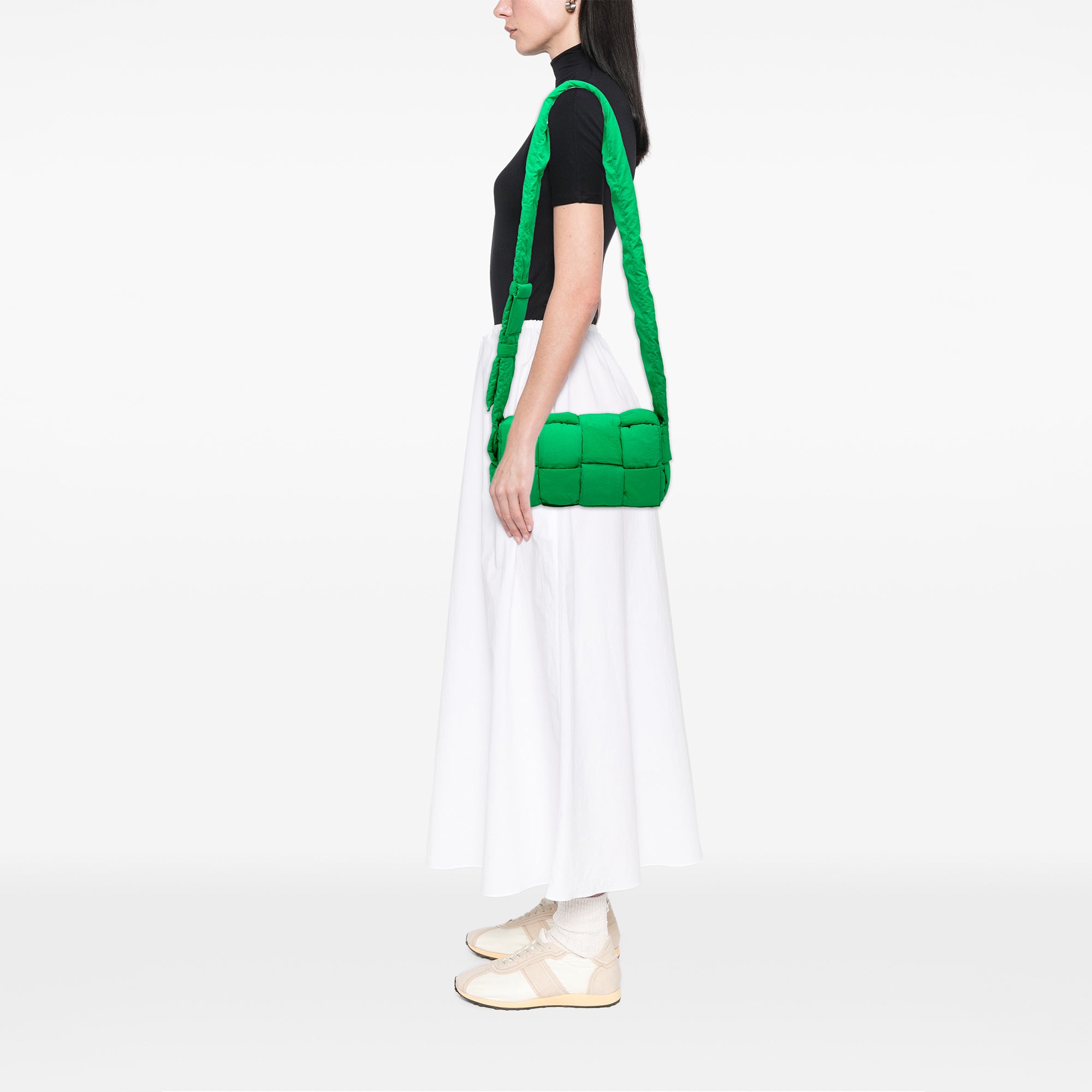 Green Bottega Veneta Nylon Intrecciato Padded Tech Cassette Crossbody
