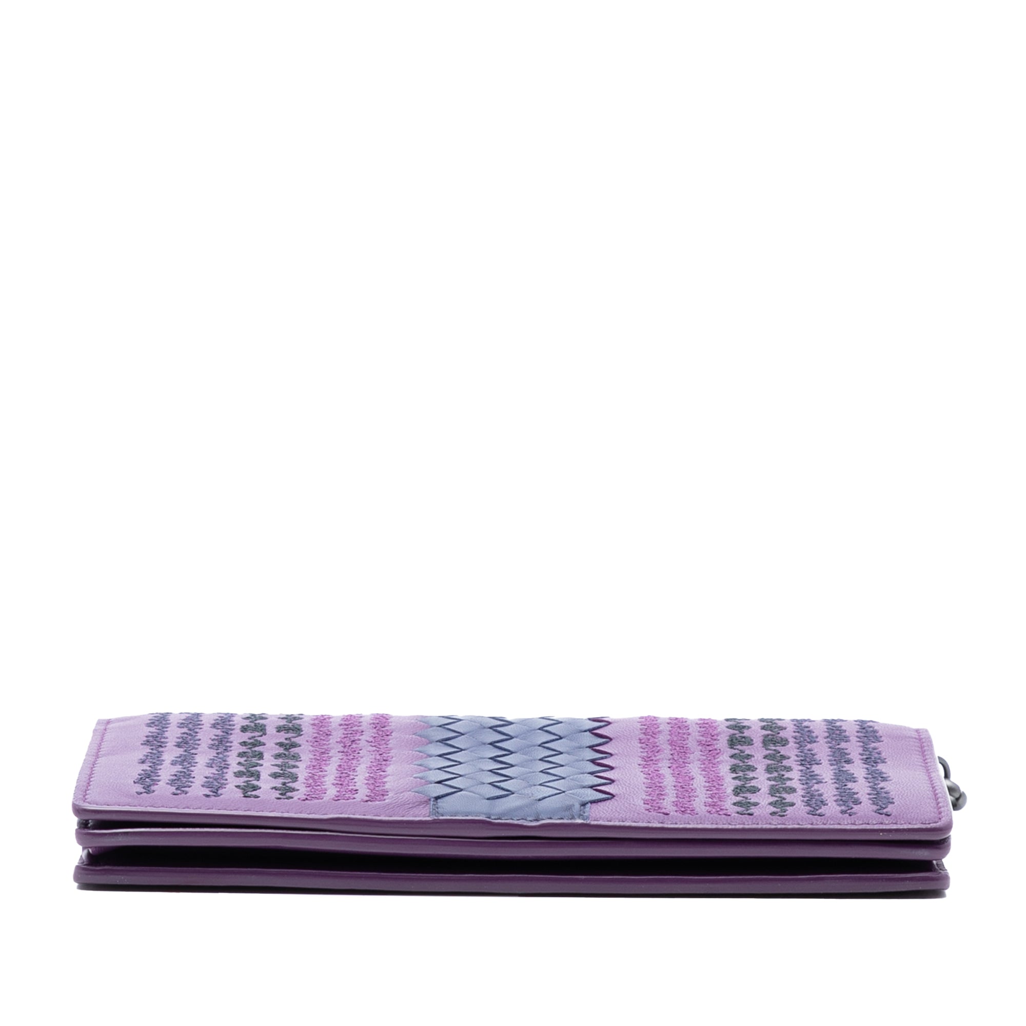 Purple Bottega Veneta Nappa Intrecciato Embroidered Continental Wallet on Chain Crossbody Bag