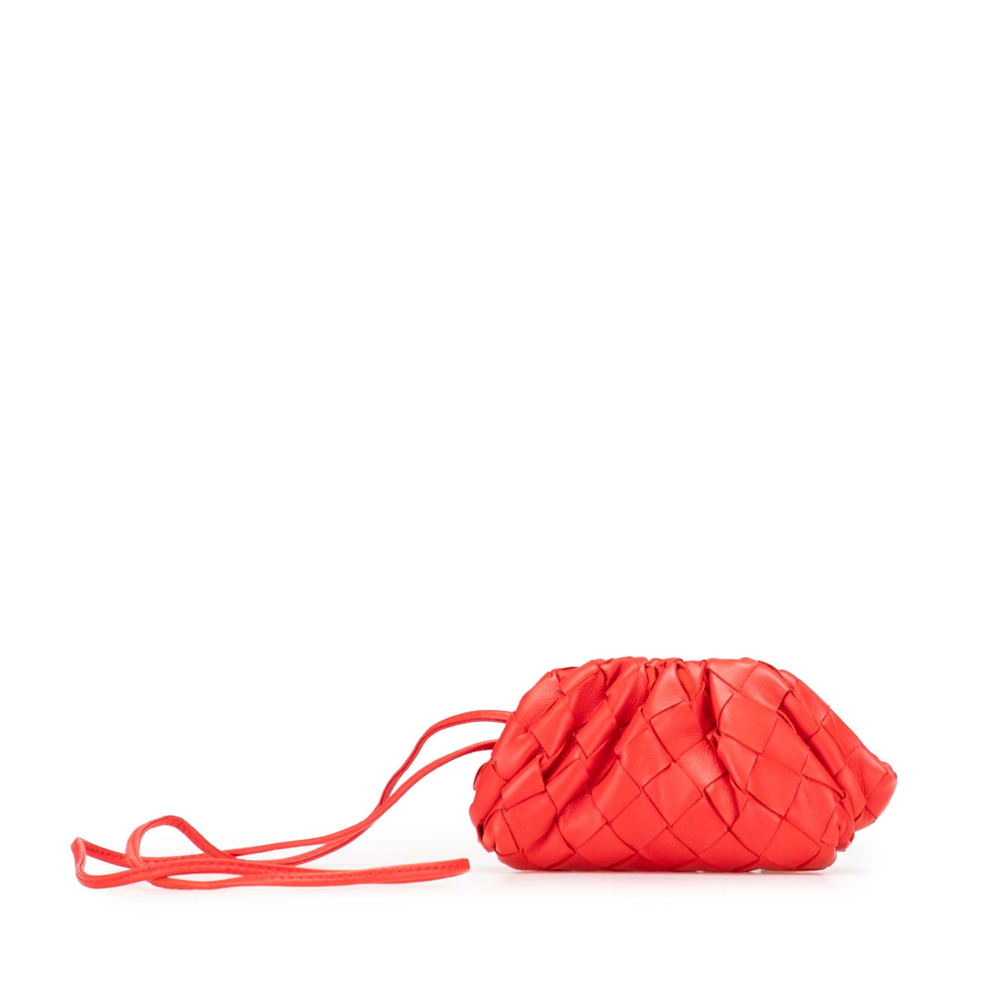 Red Bottega Veneta Intrecciato The Pouch Coin Purse - Designer Revival Red Bottega Veneta Intrecciato The Pouch Coin Purse - Designer Revival