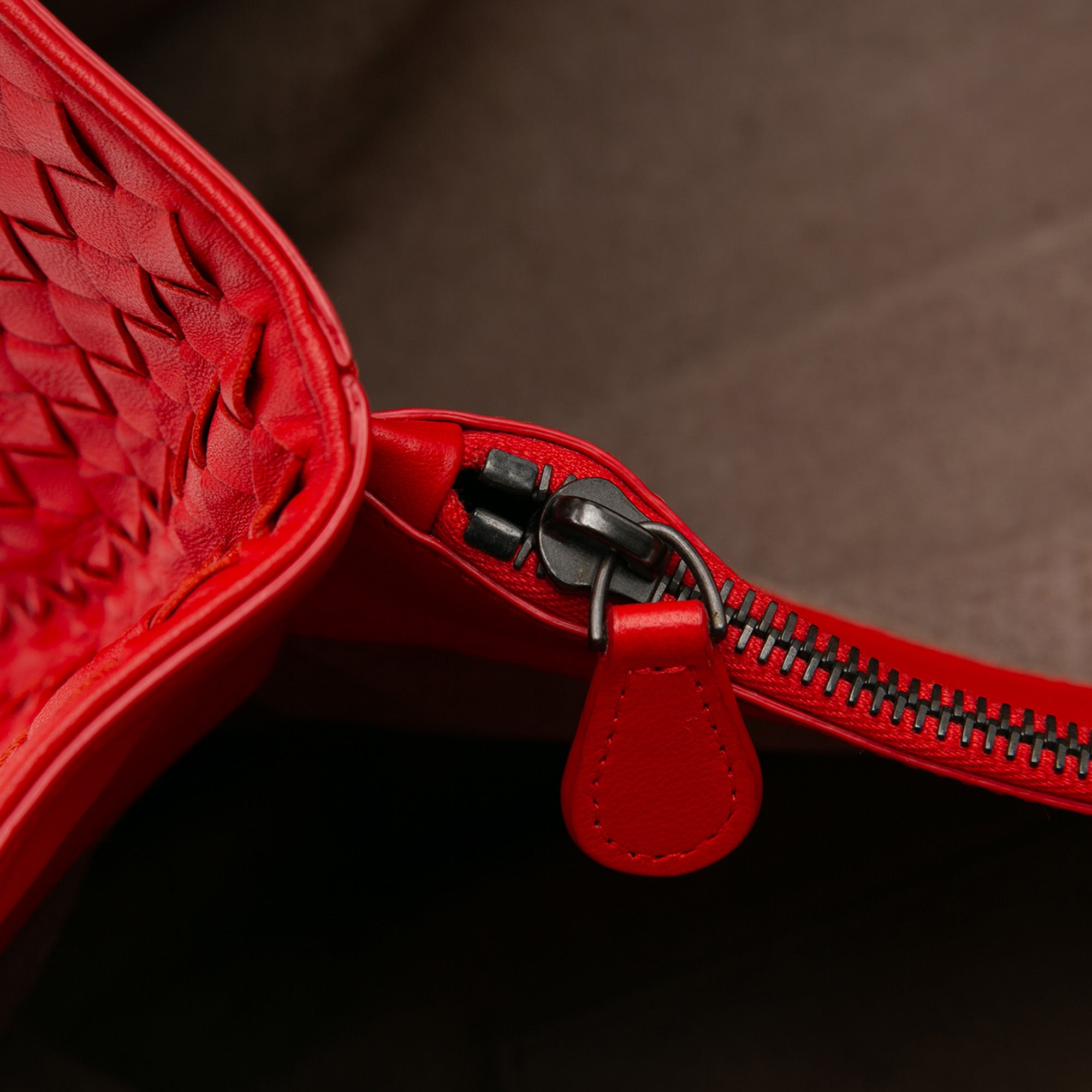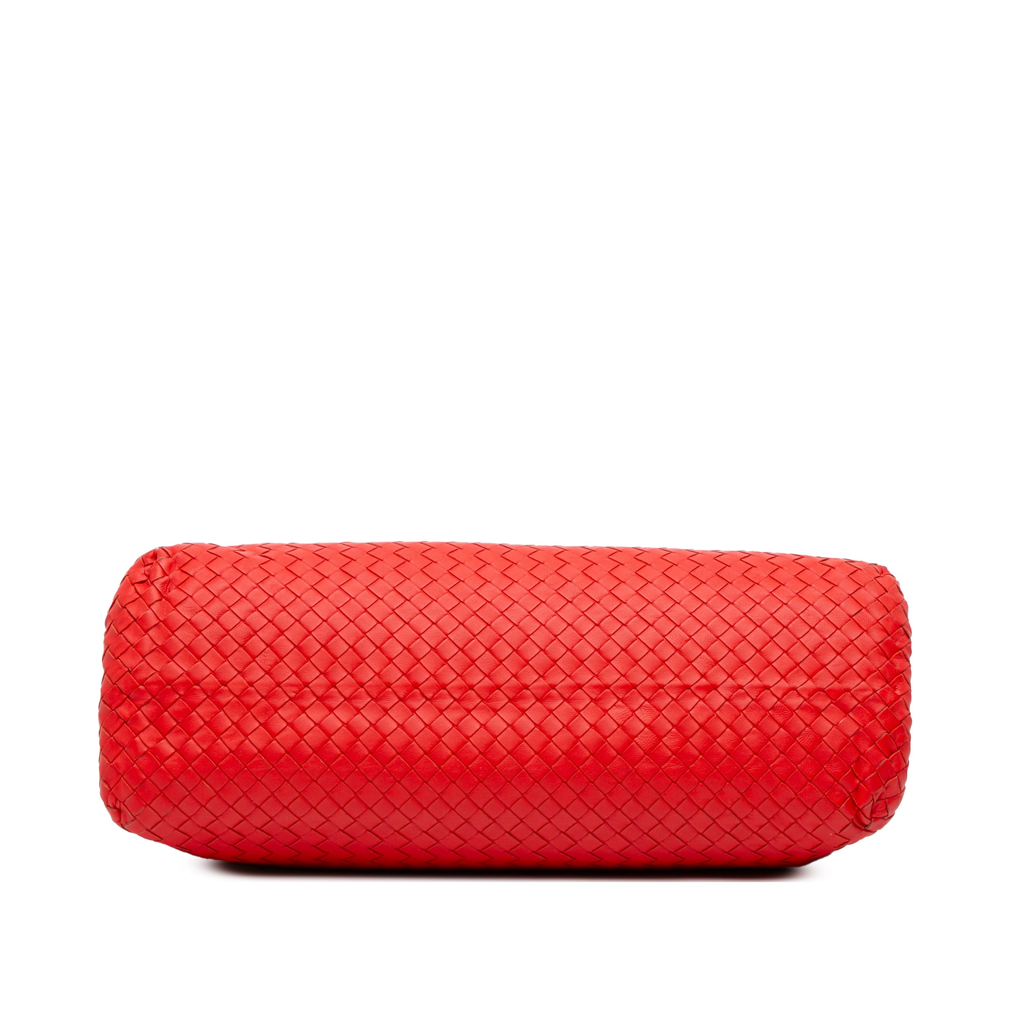 Red Bottega Veneta Medium Nappa Intrecciato Double Chain Tote - Designer Revival Red Bottega Veneta Medium Nappa Intrecciato Double Chain Tote - Designer Revival
