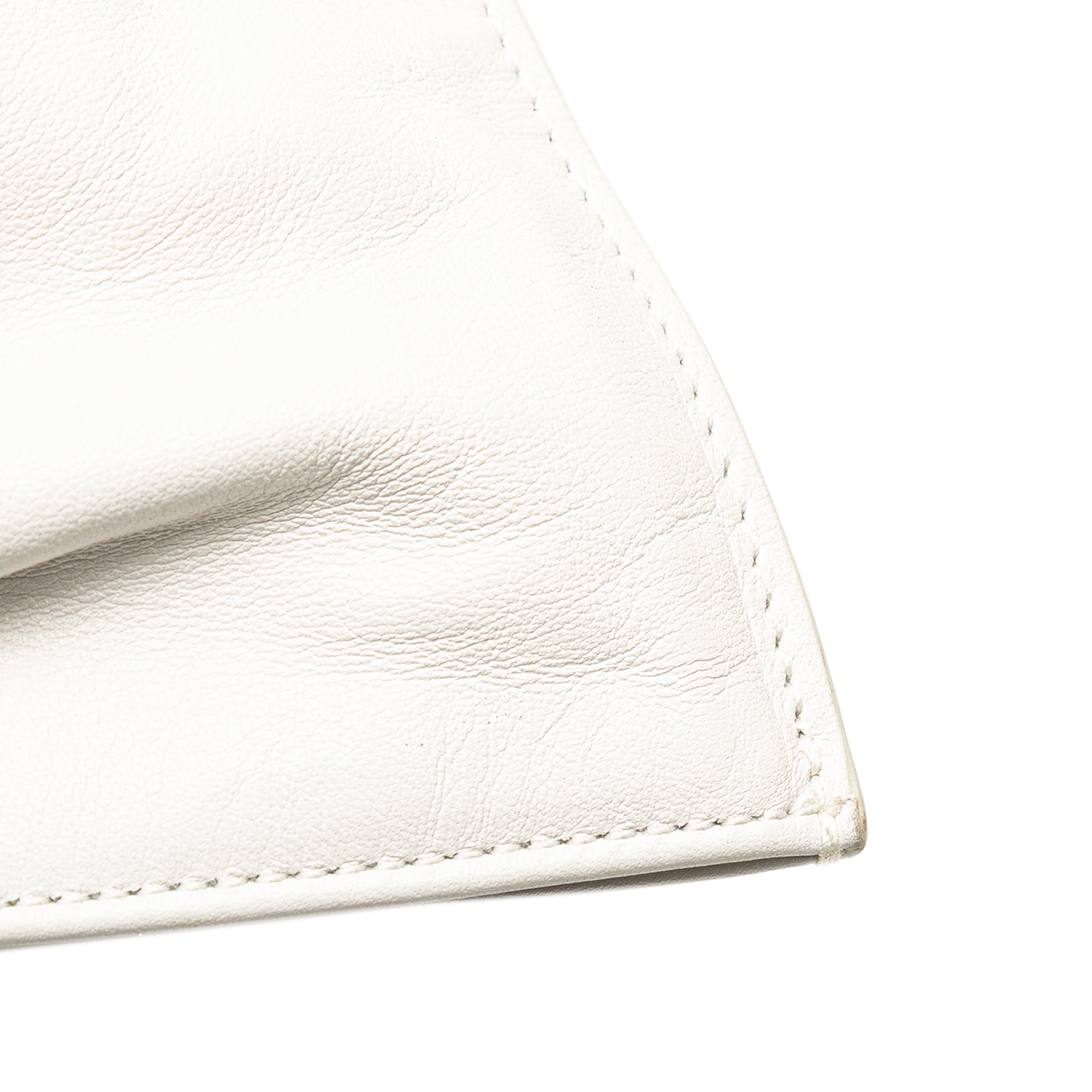 Please note this is a pre-owned item that may display signs of wear consistent with the condition listed above and shown in photos. Designer Revival guarantees this is an authentic White Bottega Veneta Nappa BV Twist Handbag or 100% of your money back. Learn more about our authentication process.
