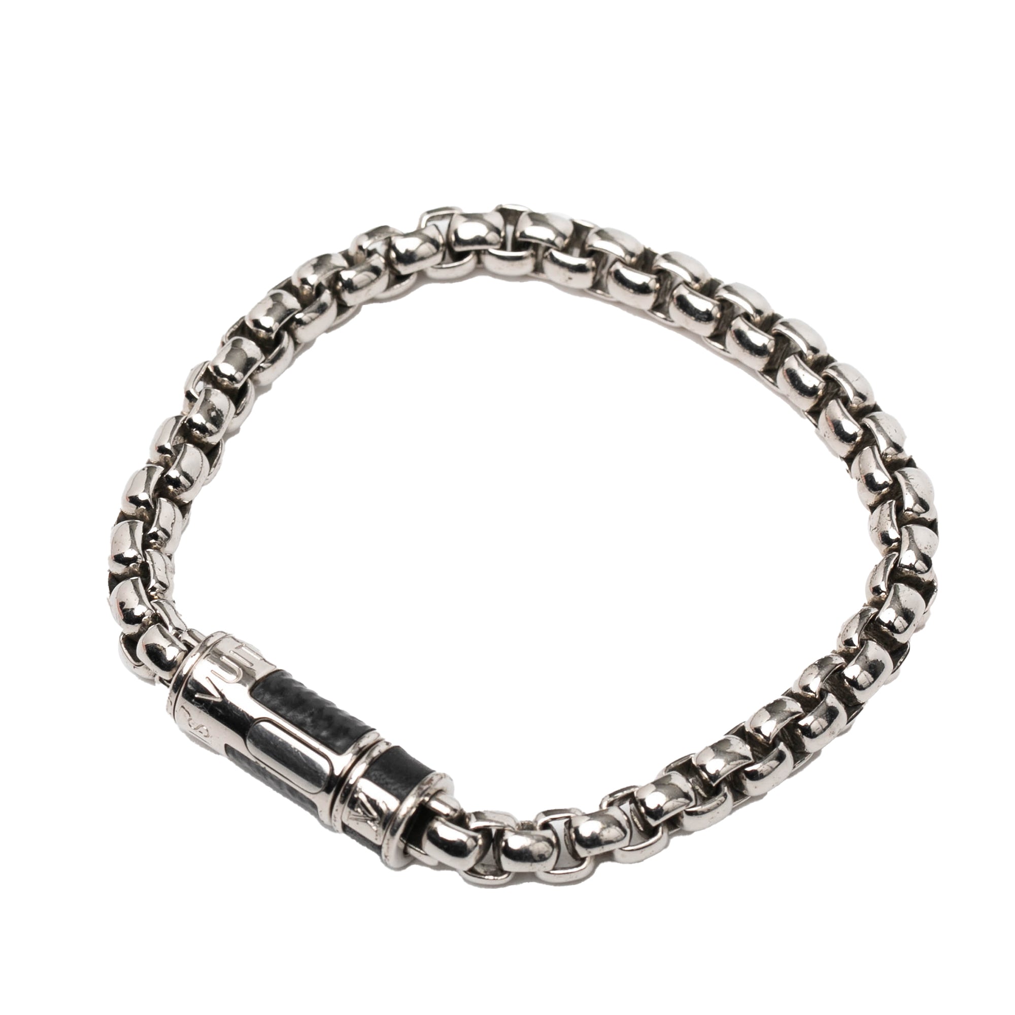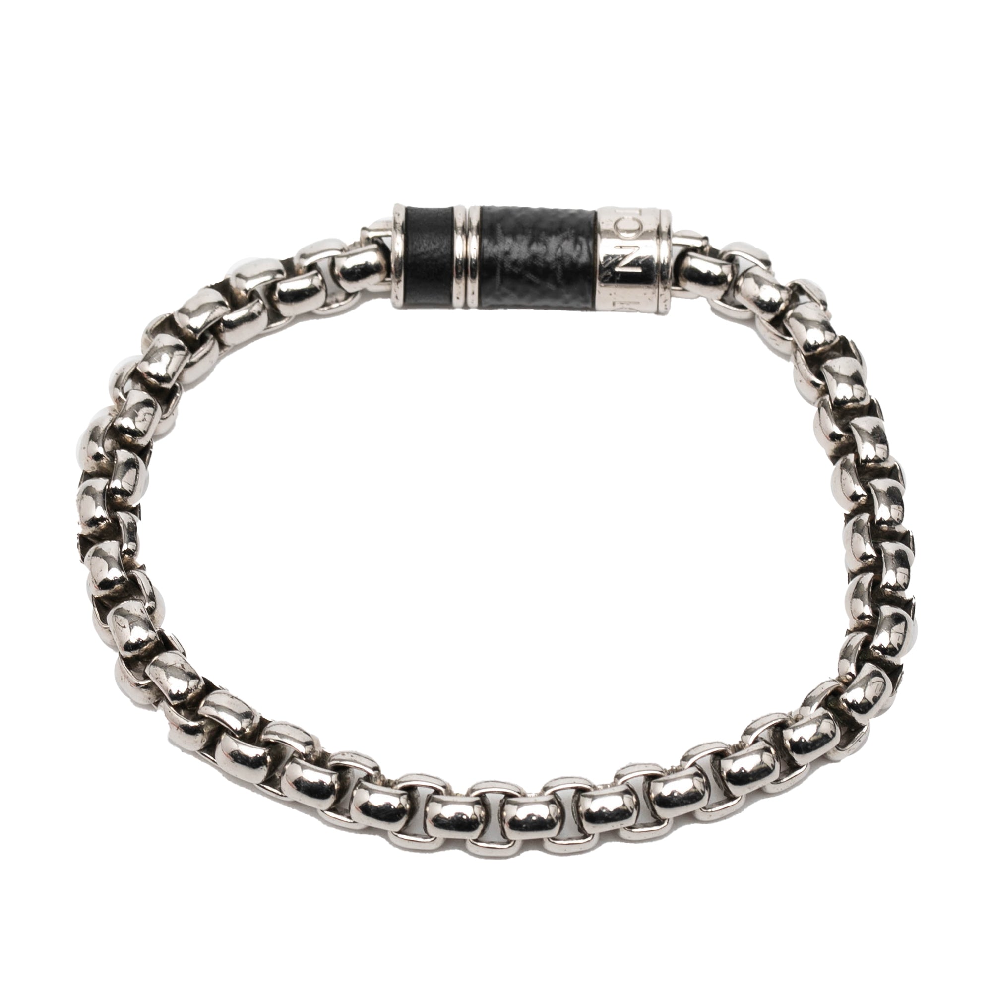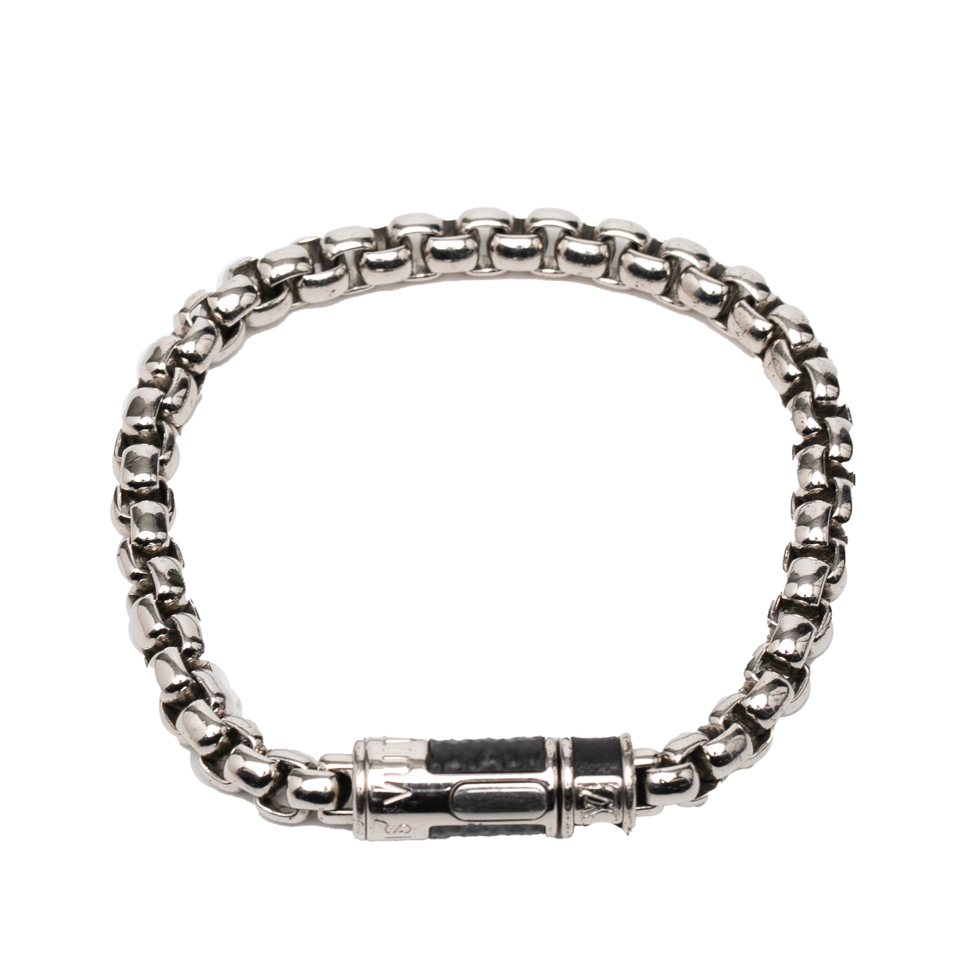 Please note this is a pre-owned item that may display signs of wear consistent with the condition listed above and shown in photos. Designer Revival guarantees this is an authentic Silver Louis Vuitton Silver Plated Monogram Eclipse Chain Bracelet or 100% of your money back. Learn more about our authentication process.
