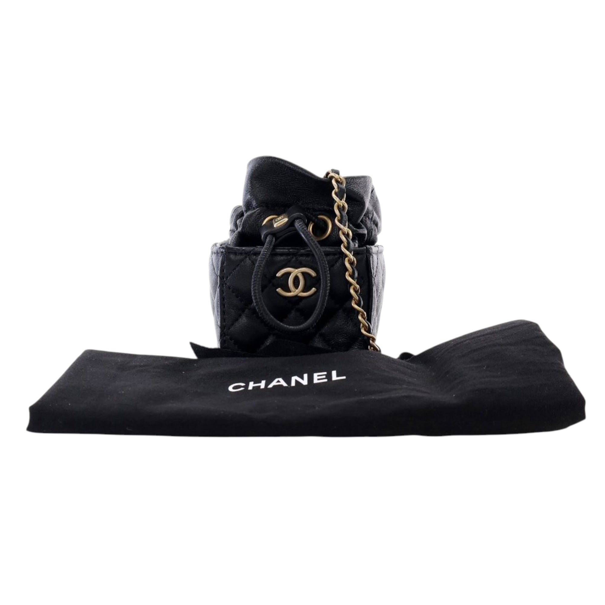 Black Chanel Mini Quilted Calfskin Drawstring Bucket Bag