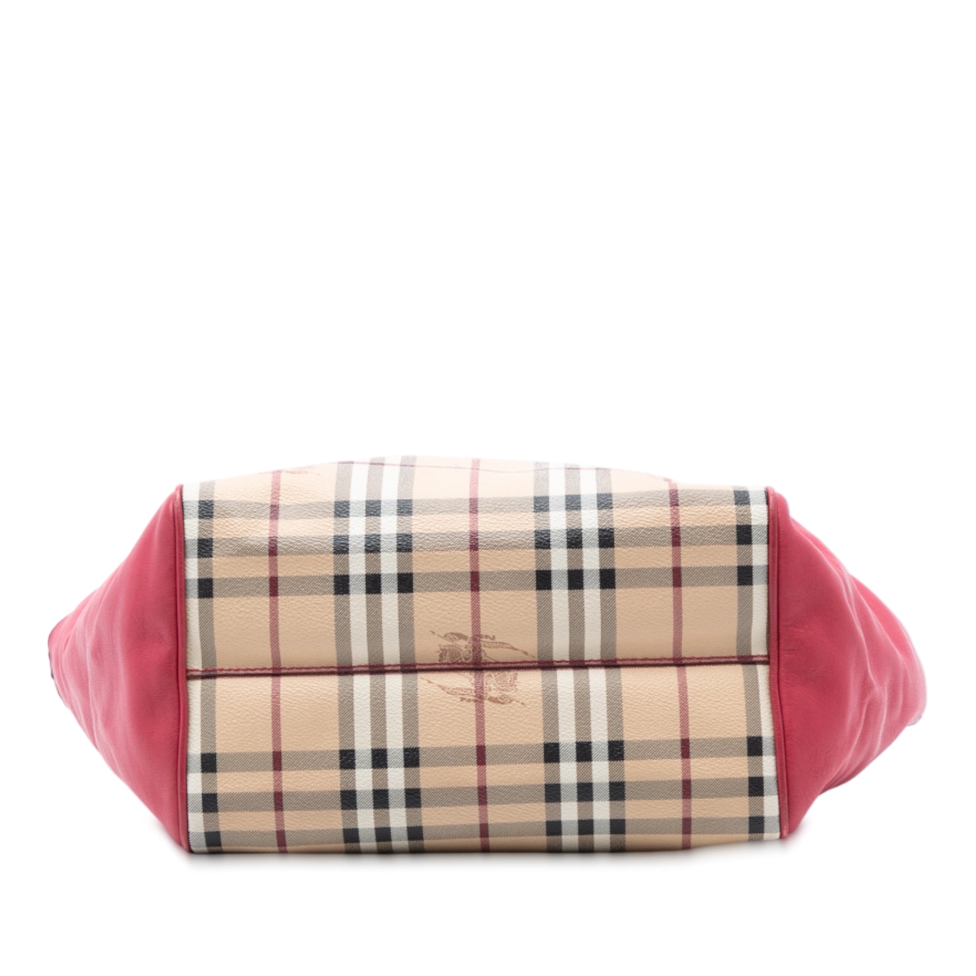 Brown Burberry Small Leather Trimmed Haymarket Check Coated Canvas Canterbury Tote