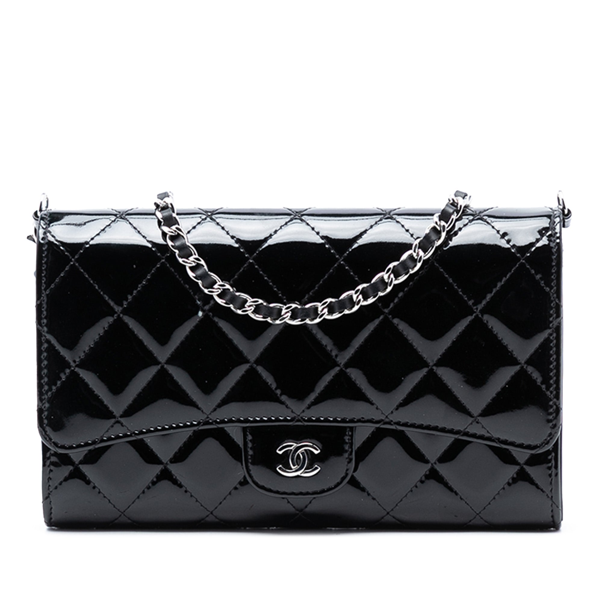 Black Chanel Classic Patent Wallet On Chain Shoulder Bag