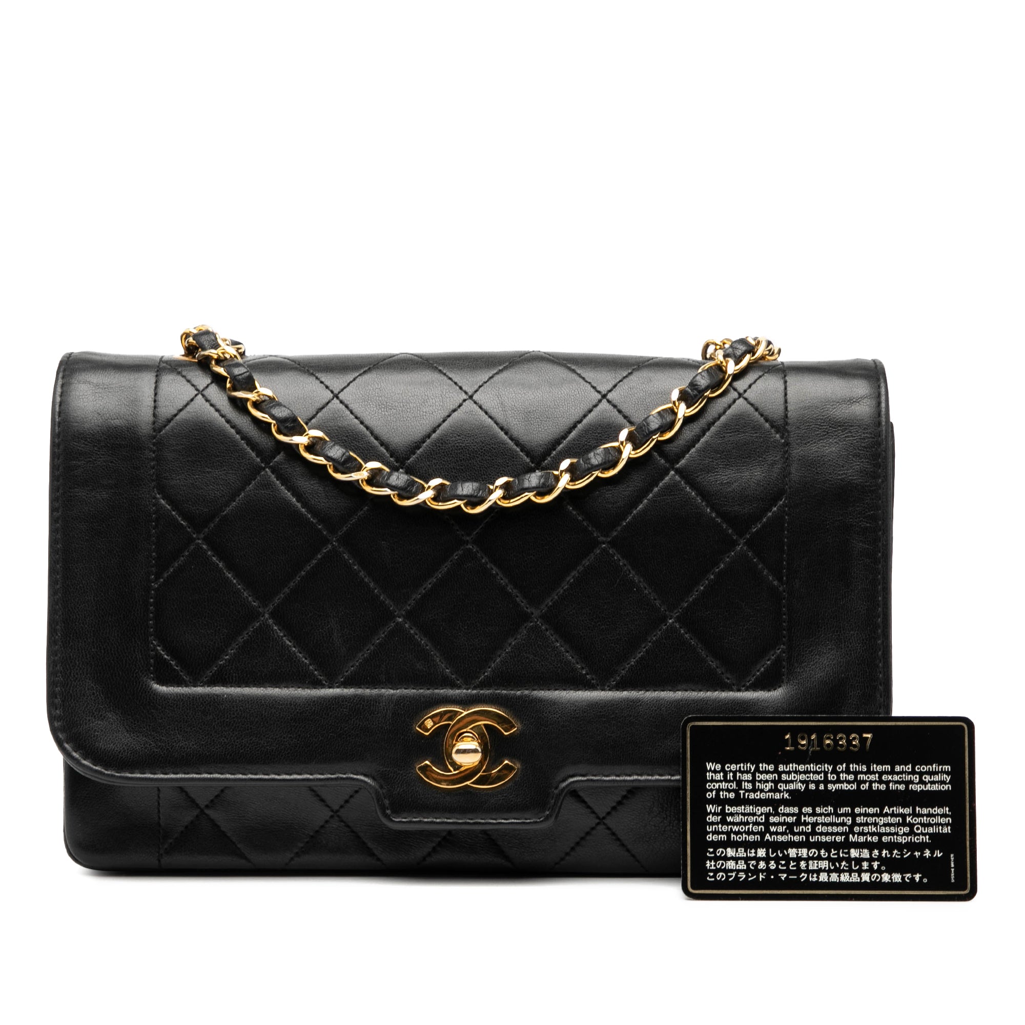 Please note this is a pre-owned item that may display signs of wear consistent with the condition listed above and shown in photos. Designer Revival guarantees this is an authentic Black Chanel Medium Lambskin Diana Full Flap Crossbody Bag or 100% of your money back. Learn more about our authentication process.