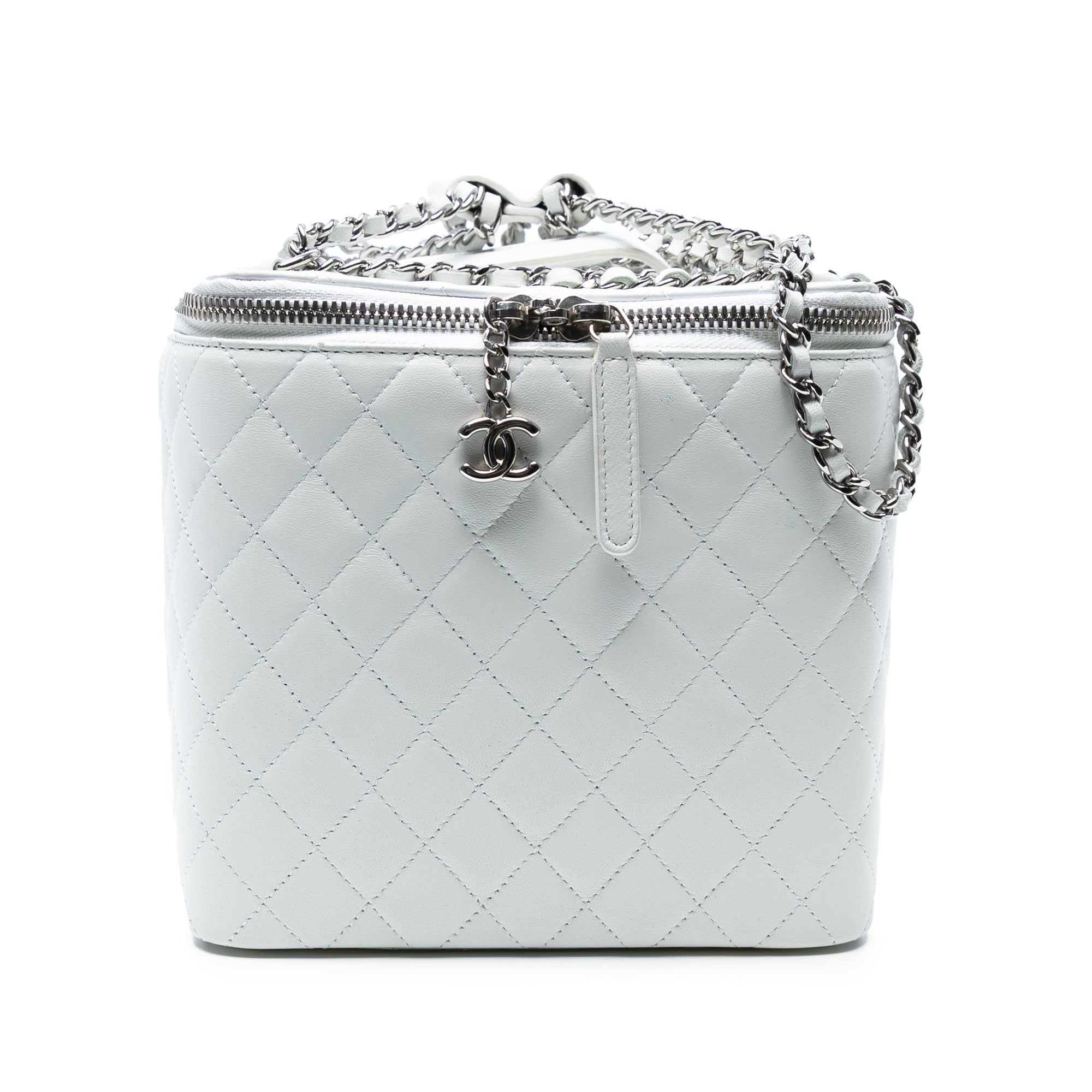 Please note this is a pre-owned item that may display signs of wear consistent with the condition listed above and shown in photos. Designer Revival guarantees this is an authentic White Chanel Large Quilted Lambskin Top Handle Jewelry Box With Chain Vanity Bag or 100% of your money back. Learn more about our authentication process.