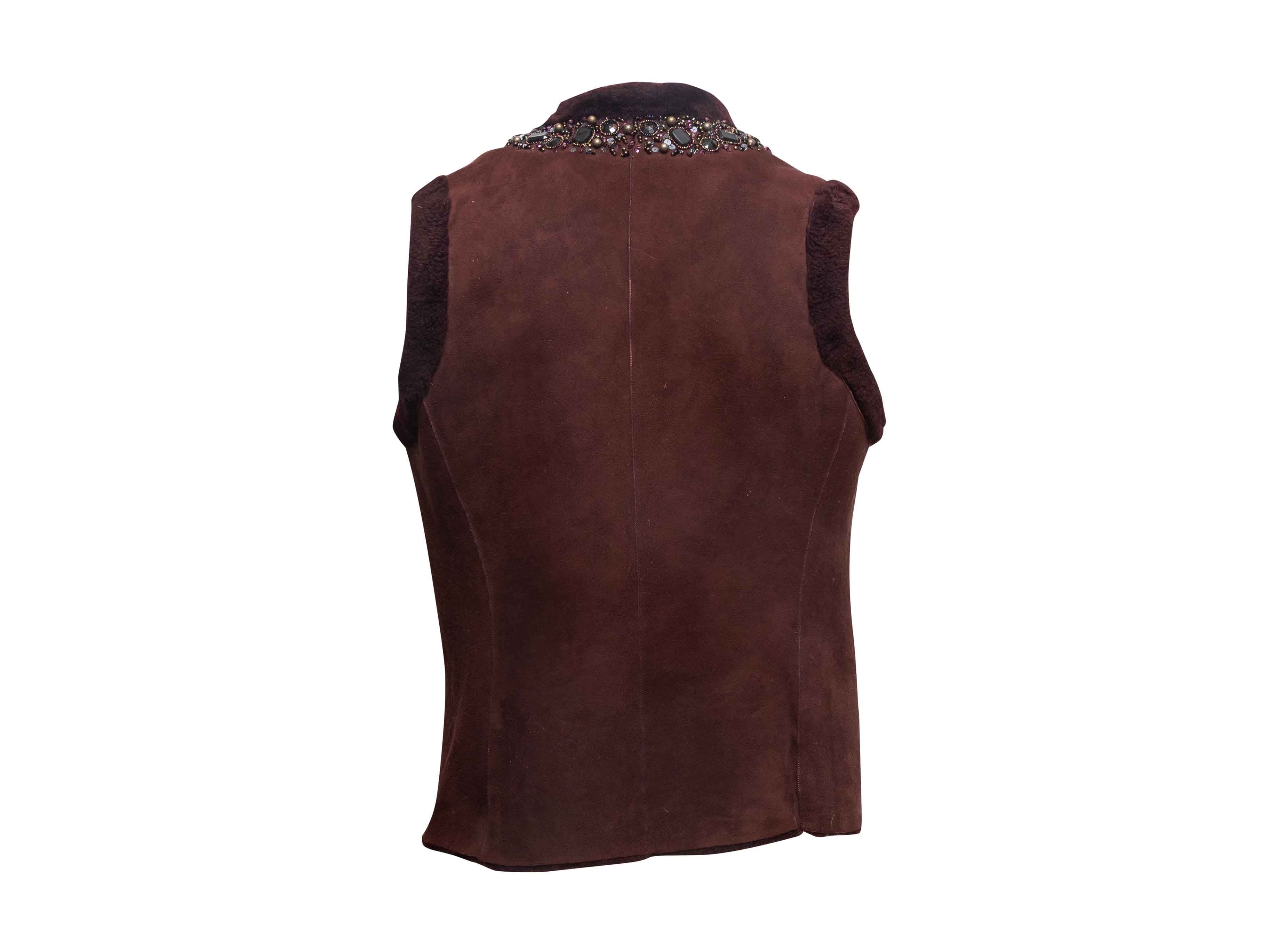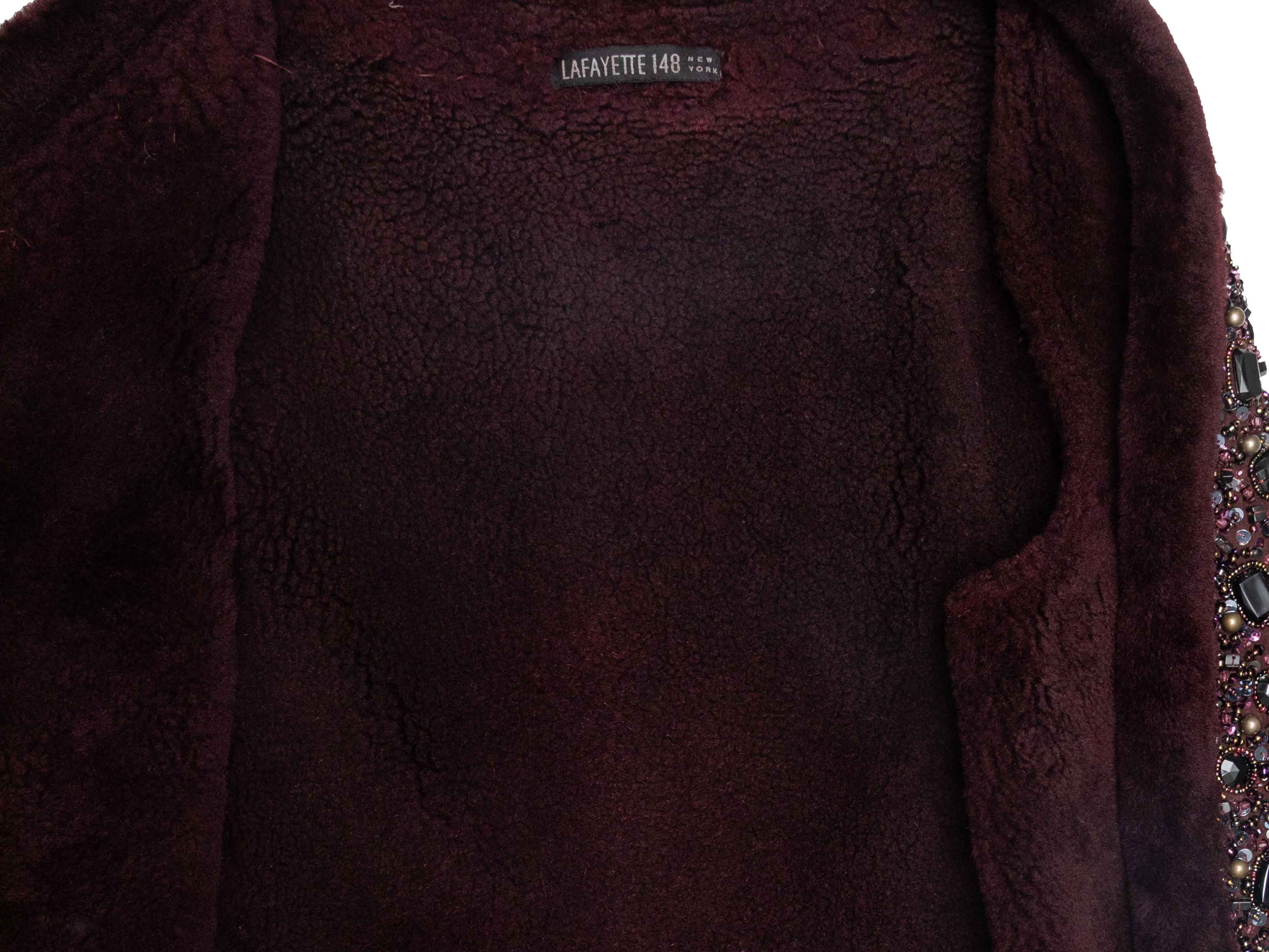 Burgundy Lafayette 148 Embellished Open Front Shearling Vest Size US S