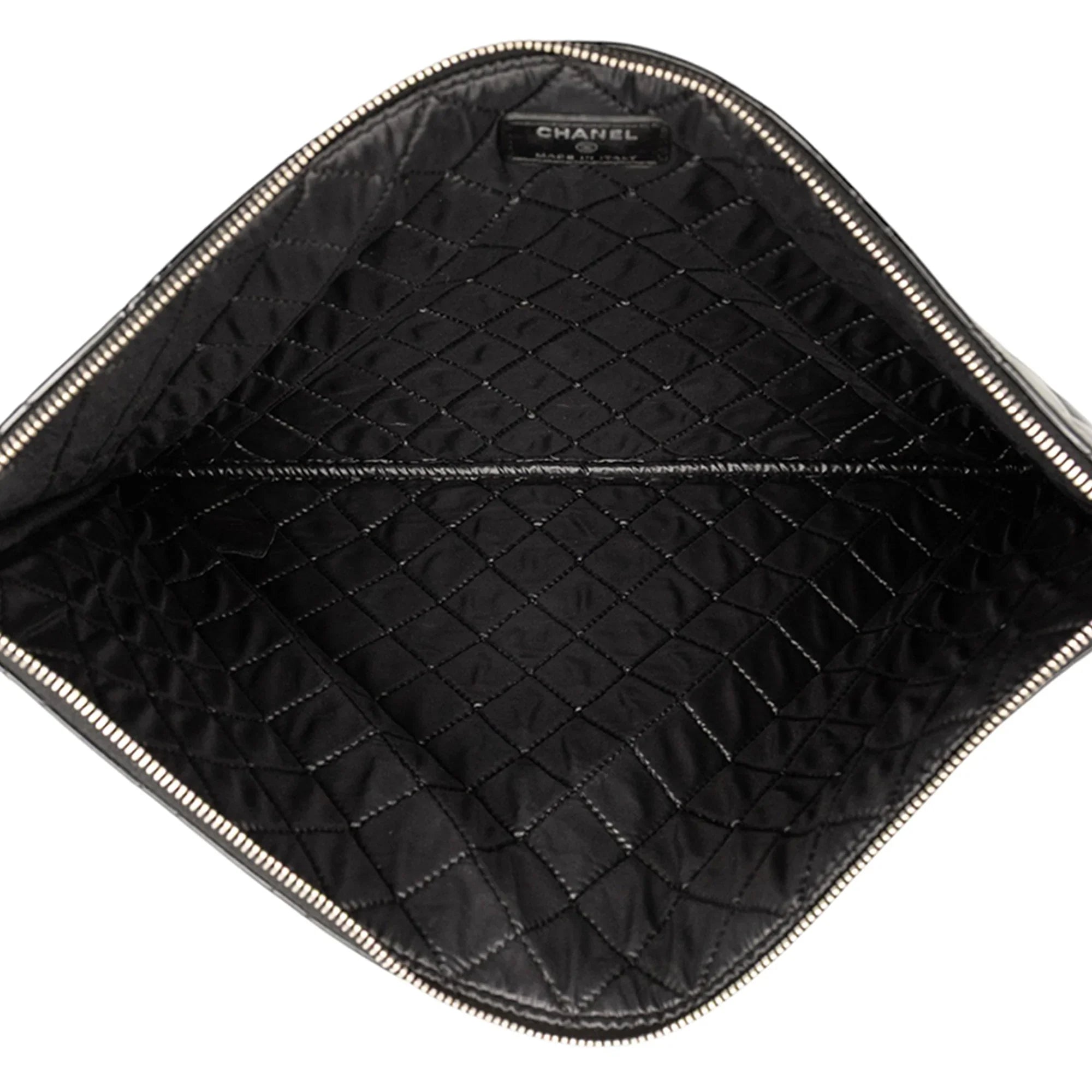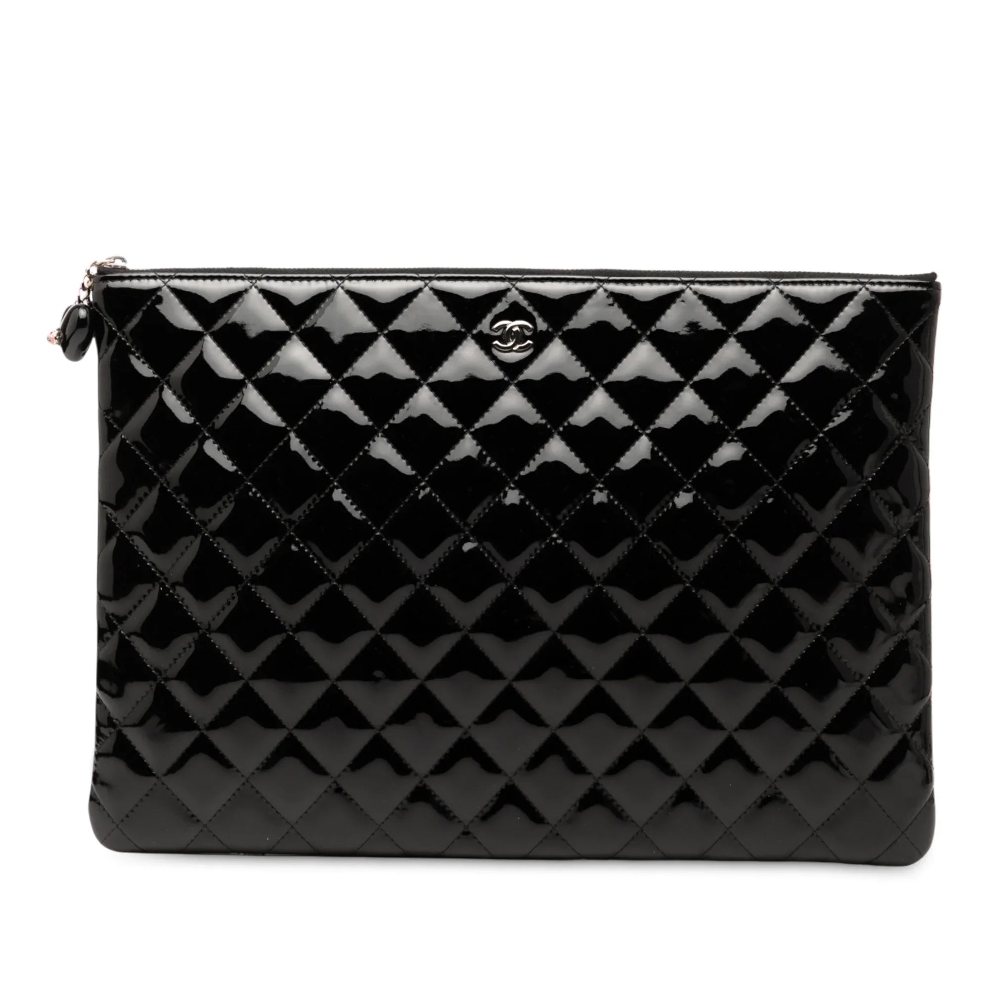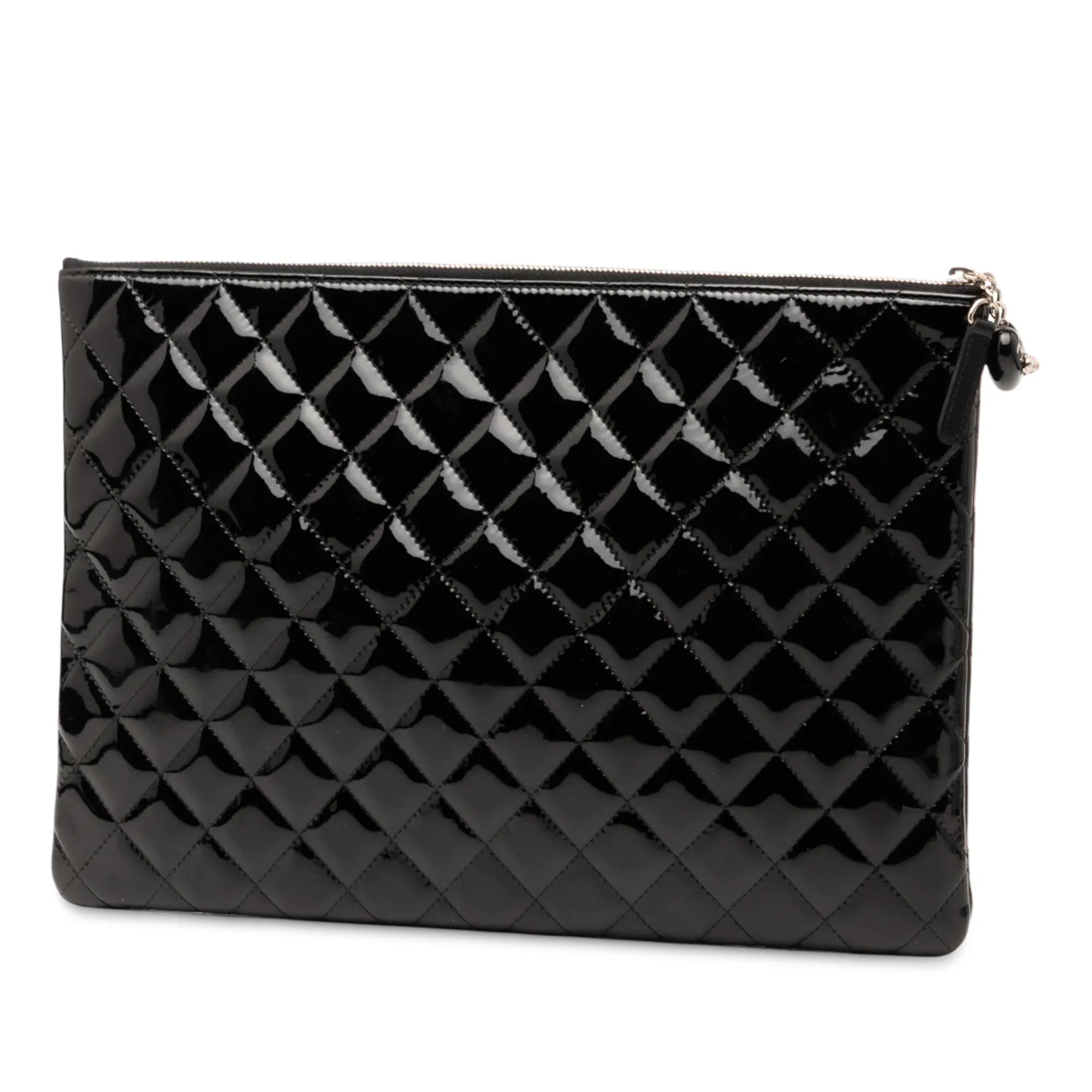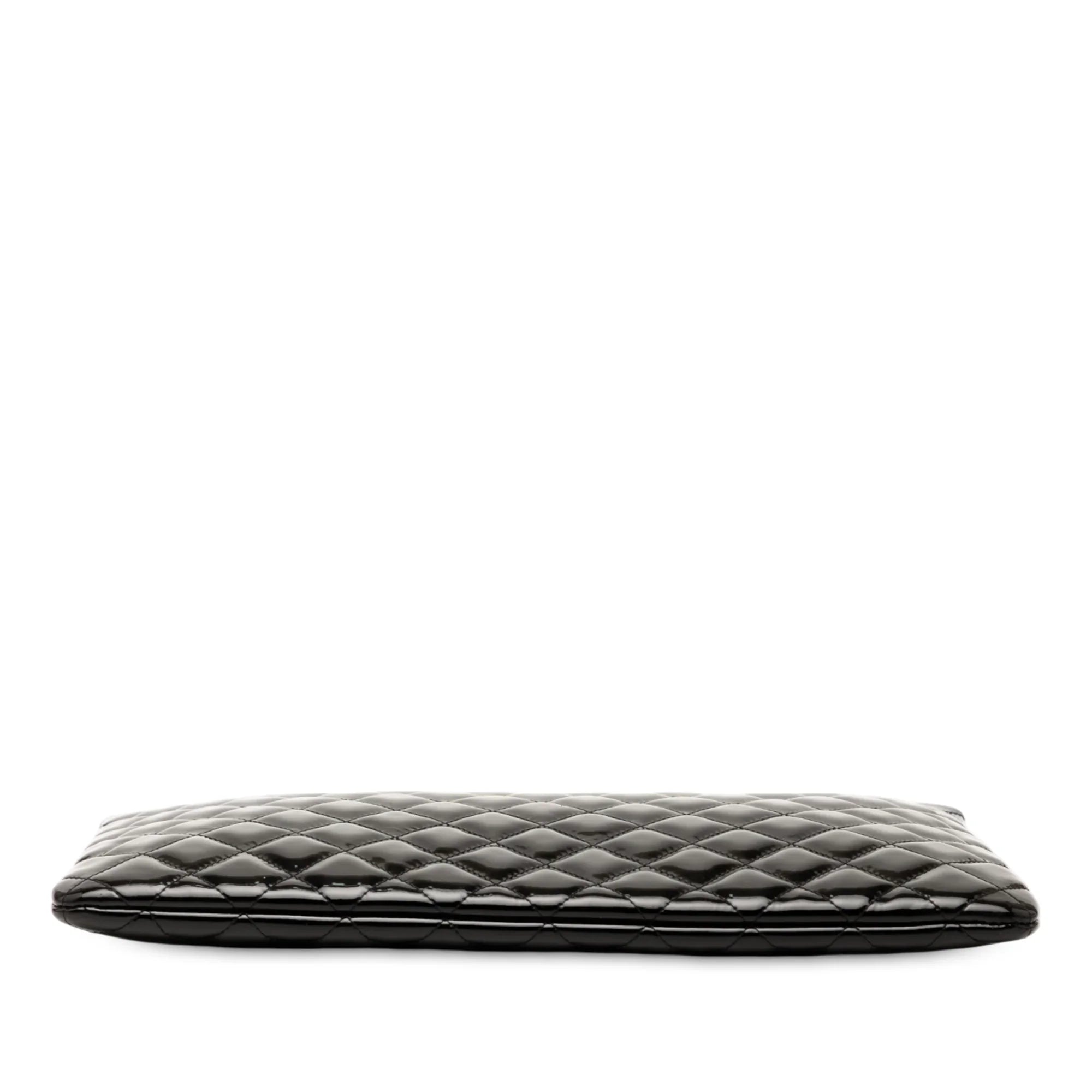 Black Chanel Large Quilted Patent O Case Clutch