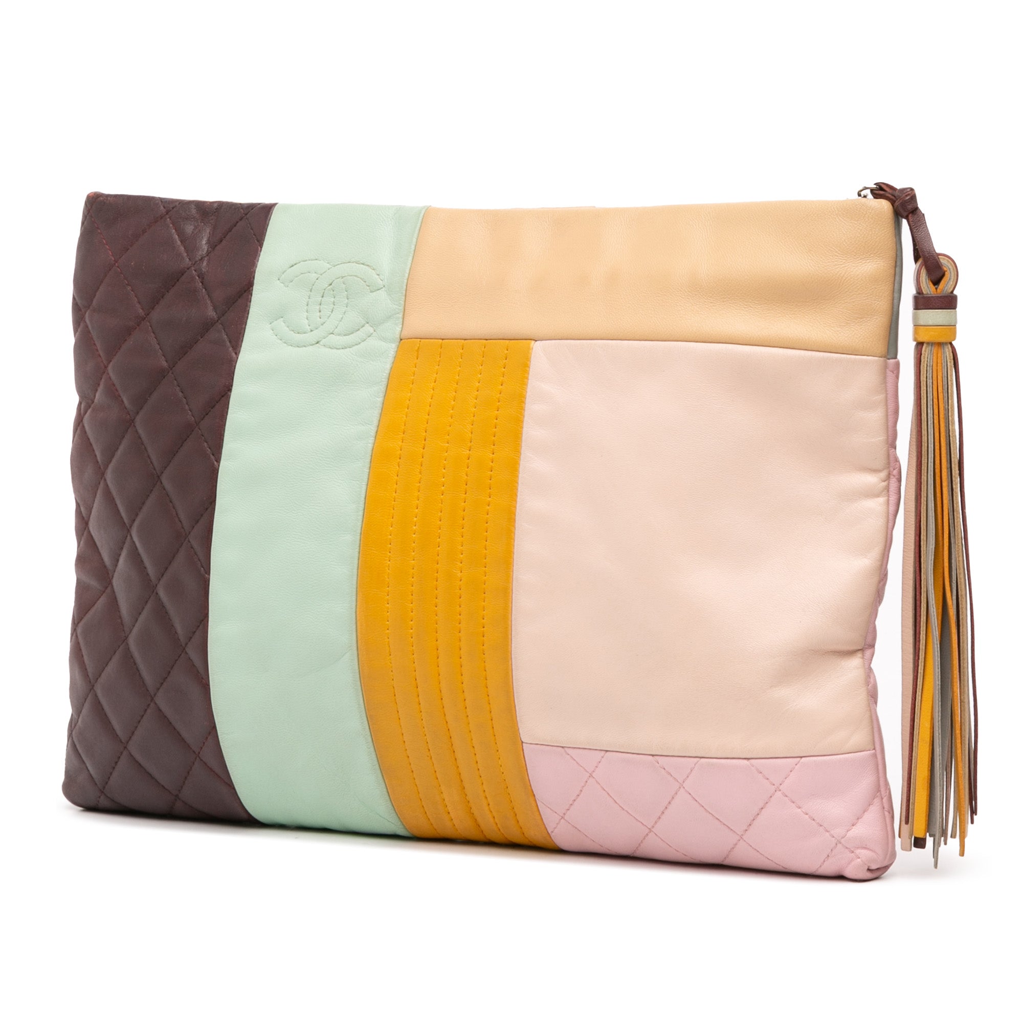 Brown Chanel Large Lambskin Colorblock Patchwork O Case Clutch Bag