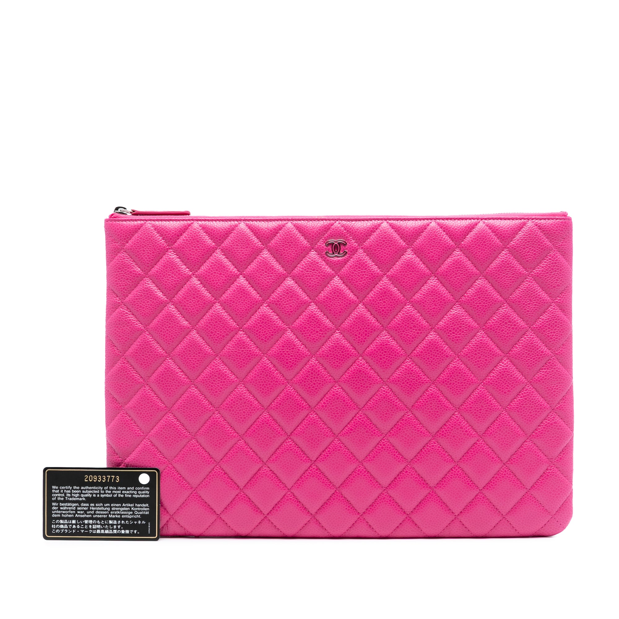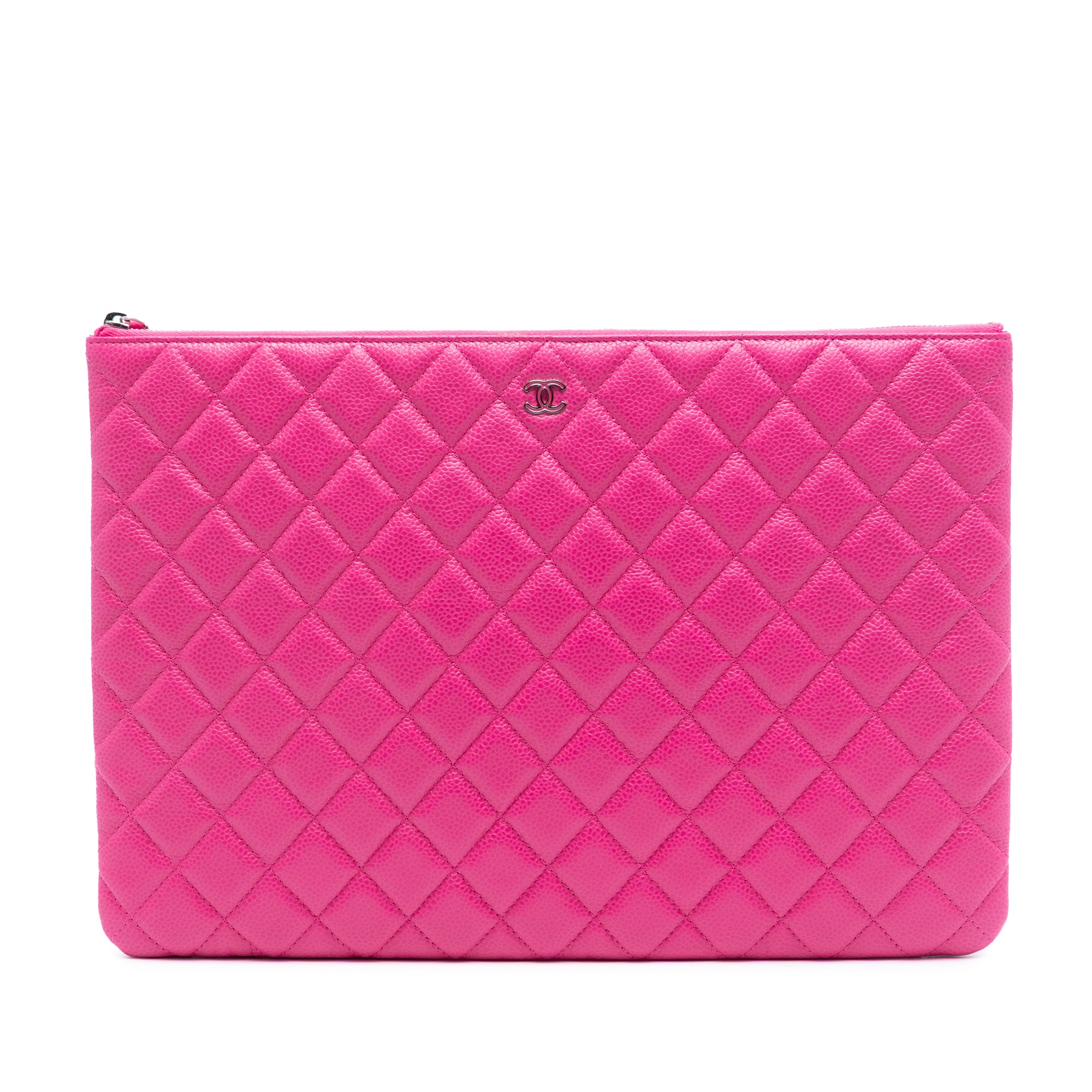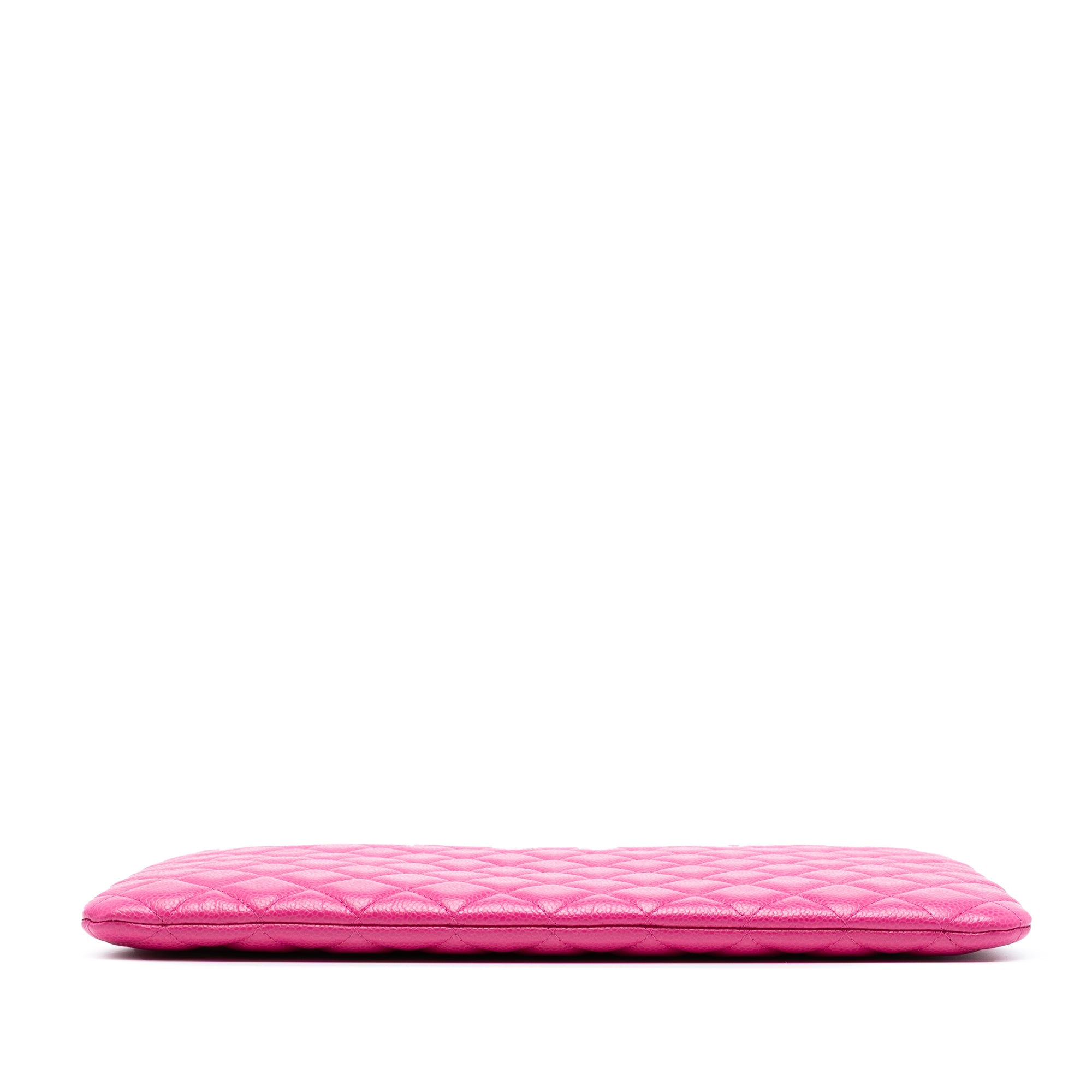 Pink Chanel Large Quilted Caviar O Case Clutch