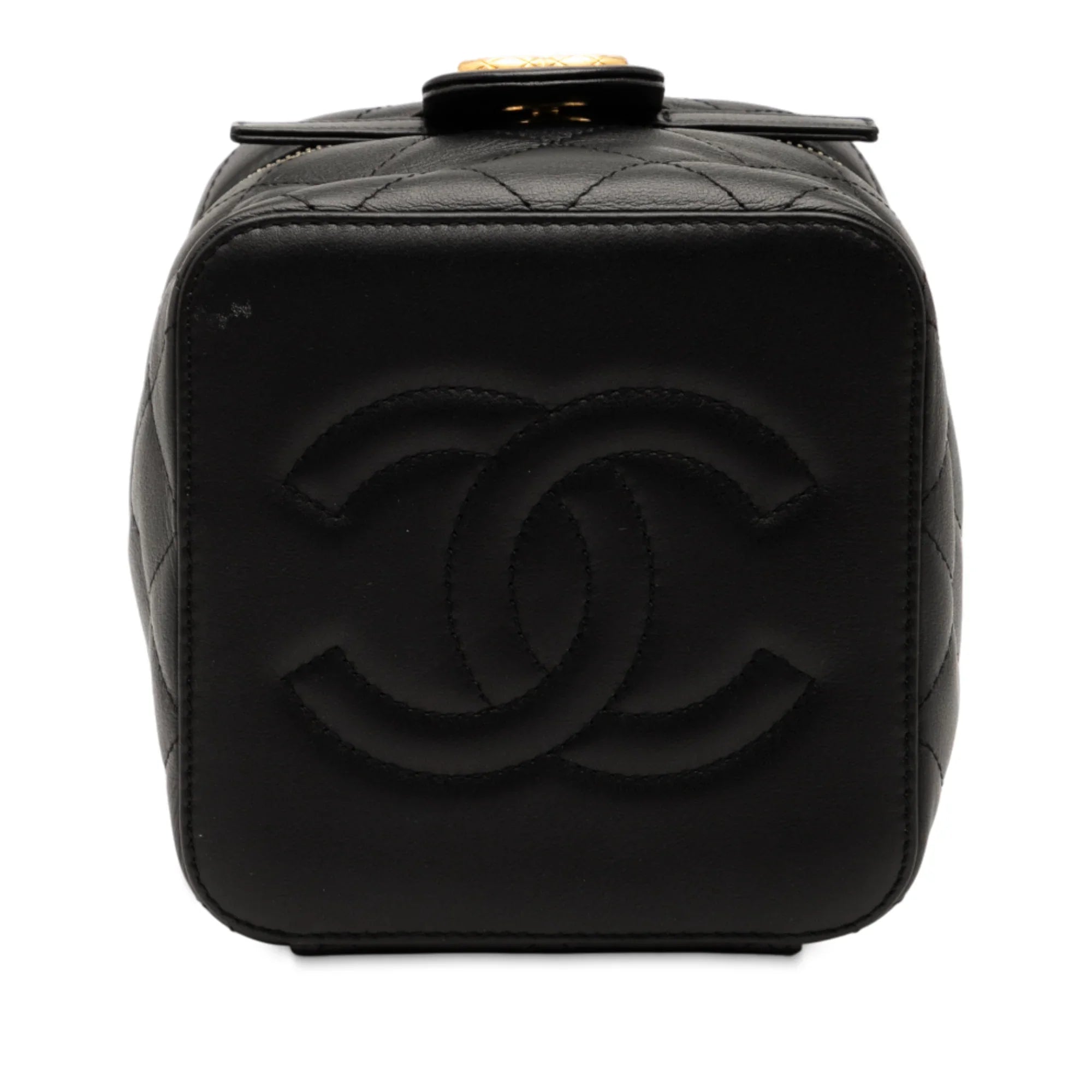 Black Chanel CC Quilted Calfskin Chain Top Handle Vanity Case on Strap Satchel