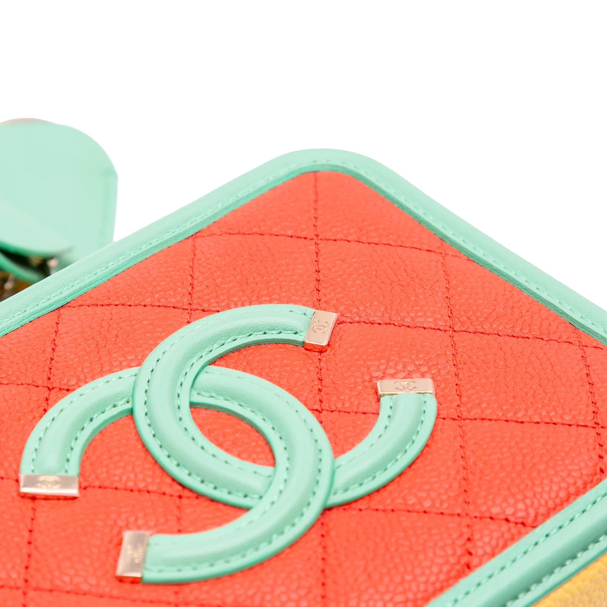 Orange Chanel Small Tricolor Caviar CC Filigree Vanity Case Satchel - Designer Revival Orange Chanel Small Tricolor Caviar CC Filigree Vanity Case Satchel - Designer Revival