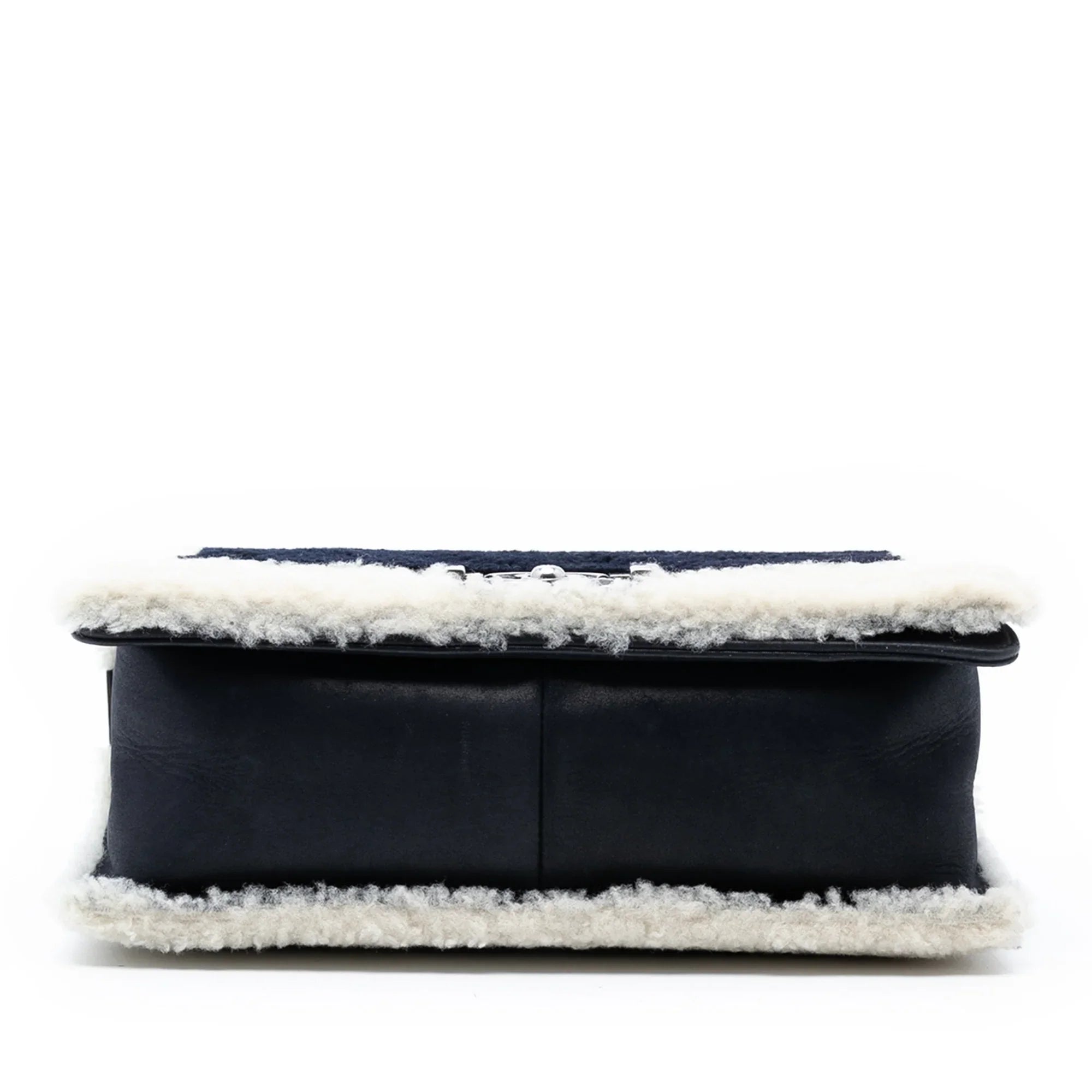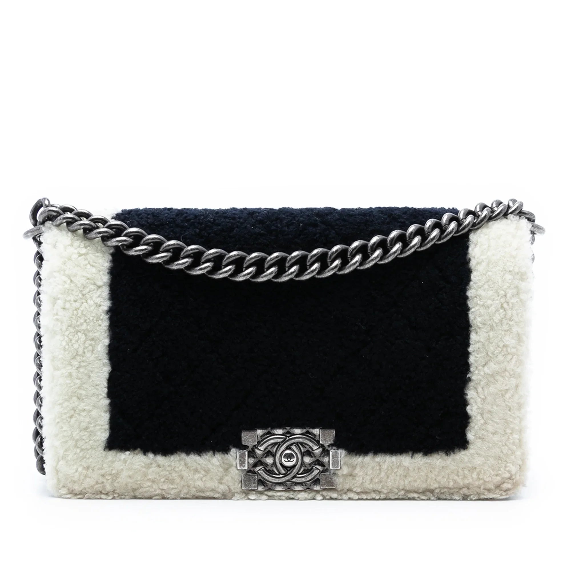Black Chanel Old Medium Bicolor Shearling Boy Flap Crossbody Bag