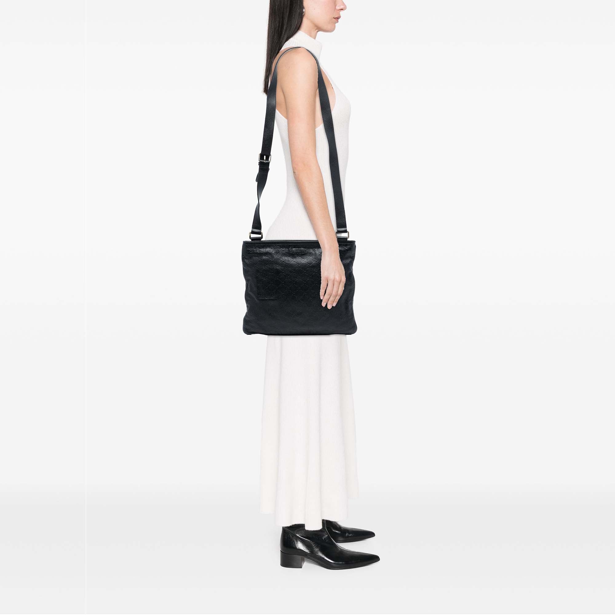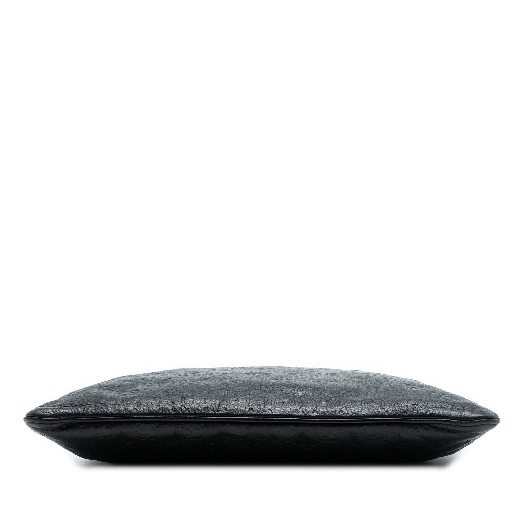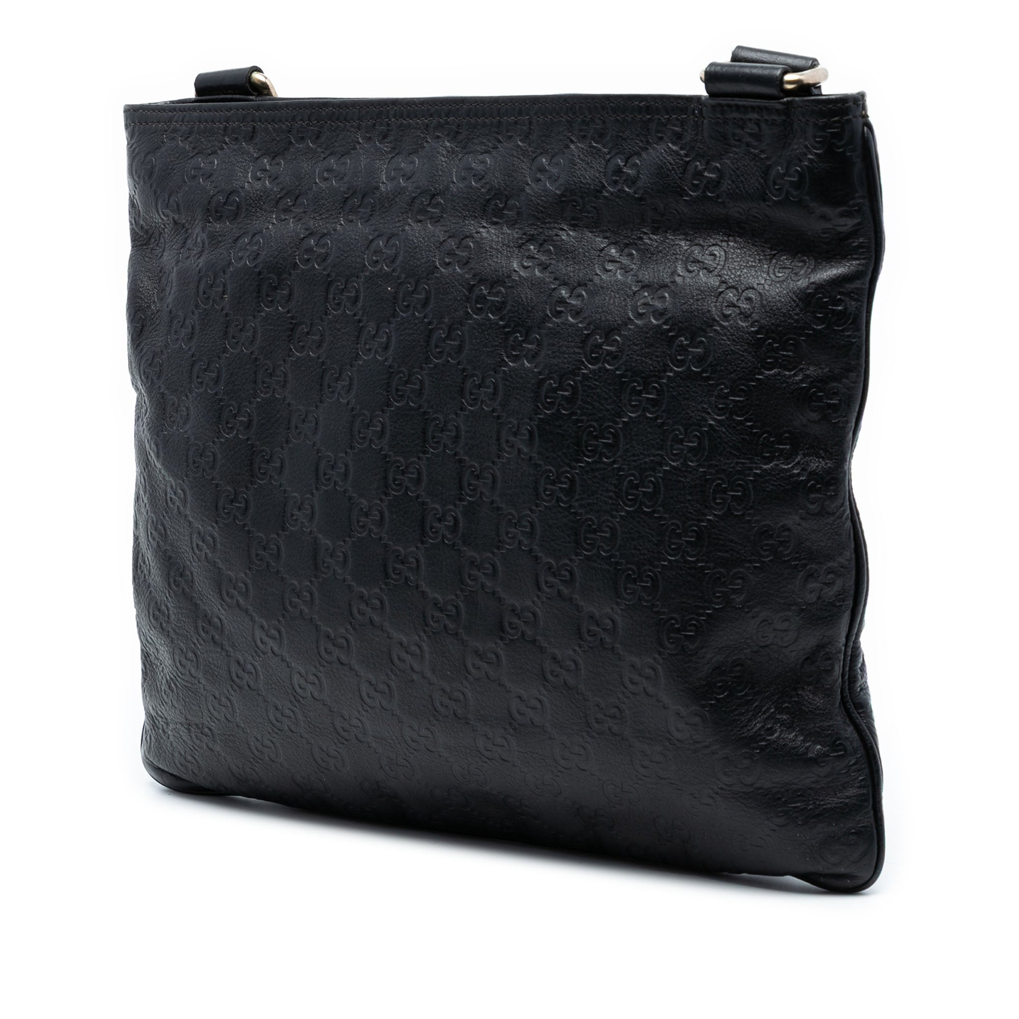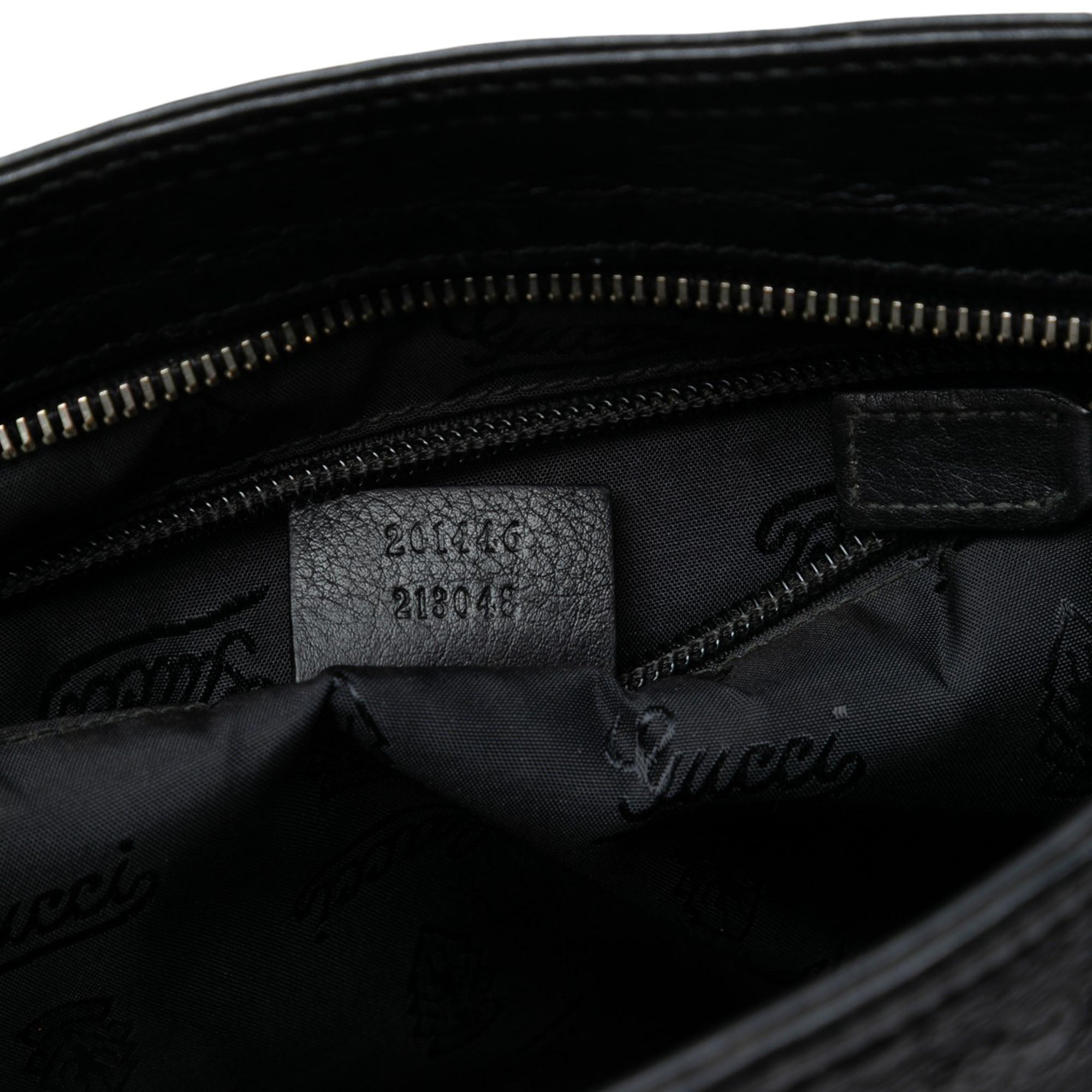 Product Details: Black Gucci Guccissima Crossbody. This crossbody bag features an embossed leather body, an adjustable flat leather strap, a top zip closure, and interior zip and slip pockets. 11.4" L x 13.8" W x 0.2" D. Serial number 201446 213048.