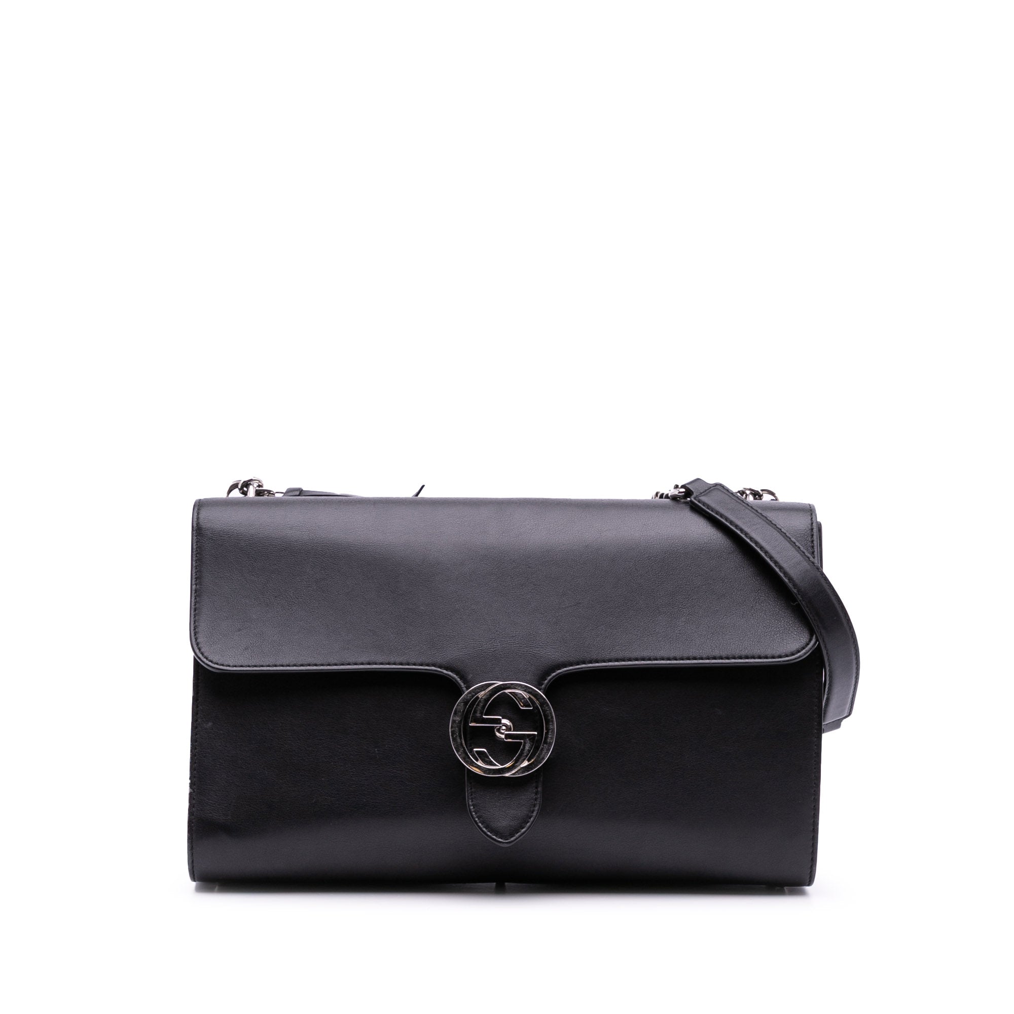 Black Gucci Medium Leather Dollar Interlocking G Crossbody