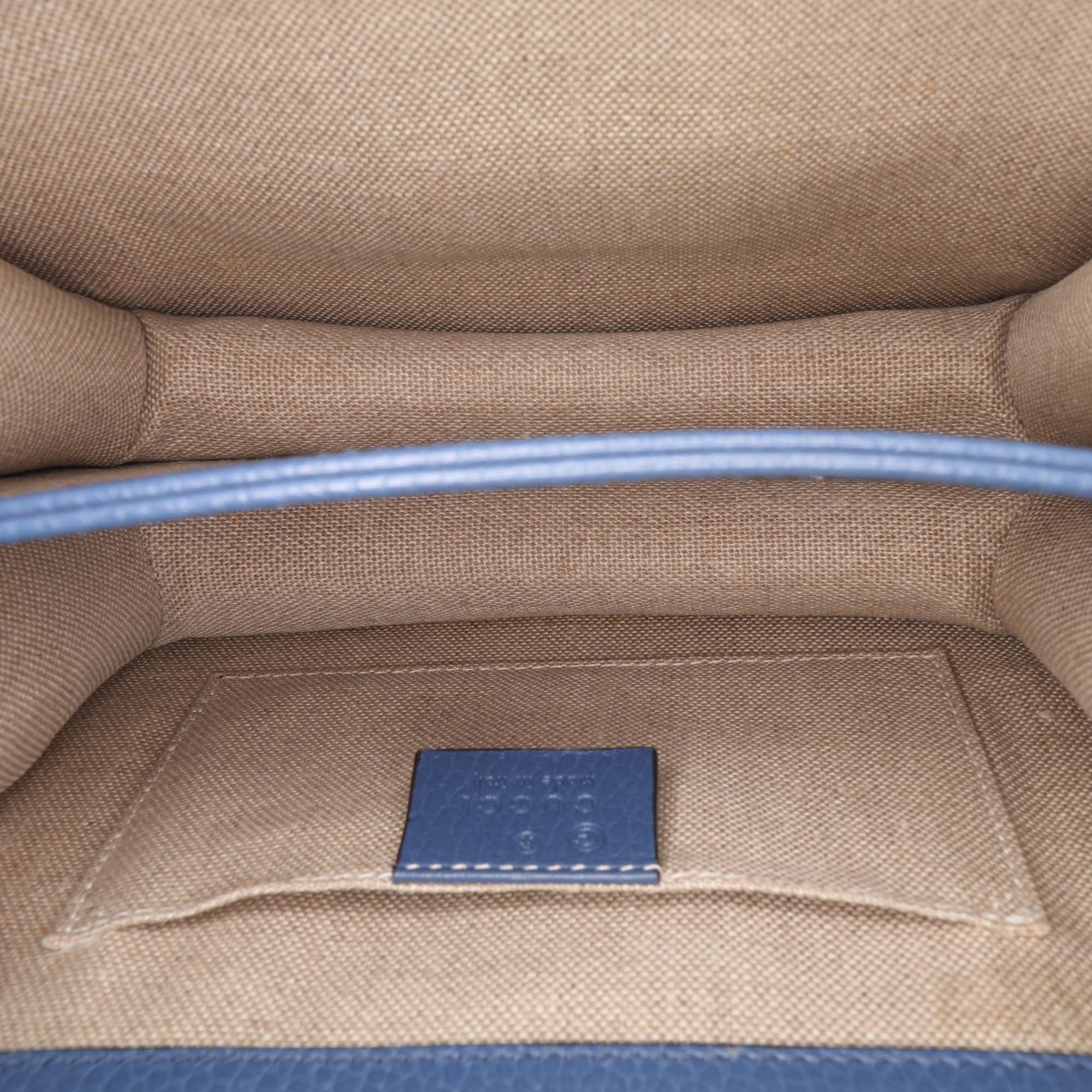 Please note this is a pre-owned item that may display signs of wear consistent with the condition listed above and shown in photos. Designer Revival guarantees this is an authentic Blue Gucci Small Dollar Calfskin Interlocking G Crossbody or 100% of your money back. Learn more about our authentication process.