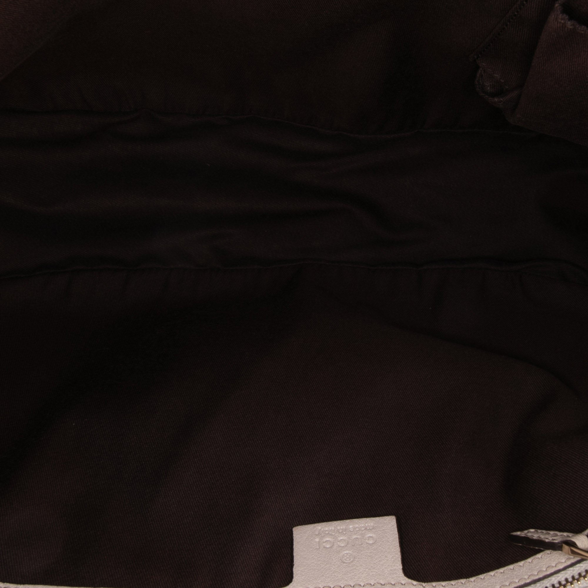Product Details: Brown Gucci GG Canvas Charlotte Crossbody. The Charlotte crossbody bag features a canvas body with leather trim, an adjustable flat leather strap, an open top with magnetic snap closure, and interior zip and slip pockets. 10.8" L x 14.4" W x 3.5" D. Serial number 203503 486628.