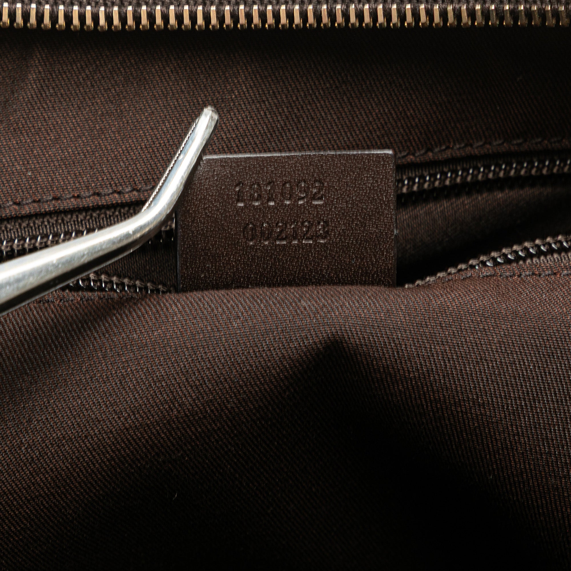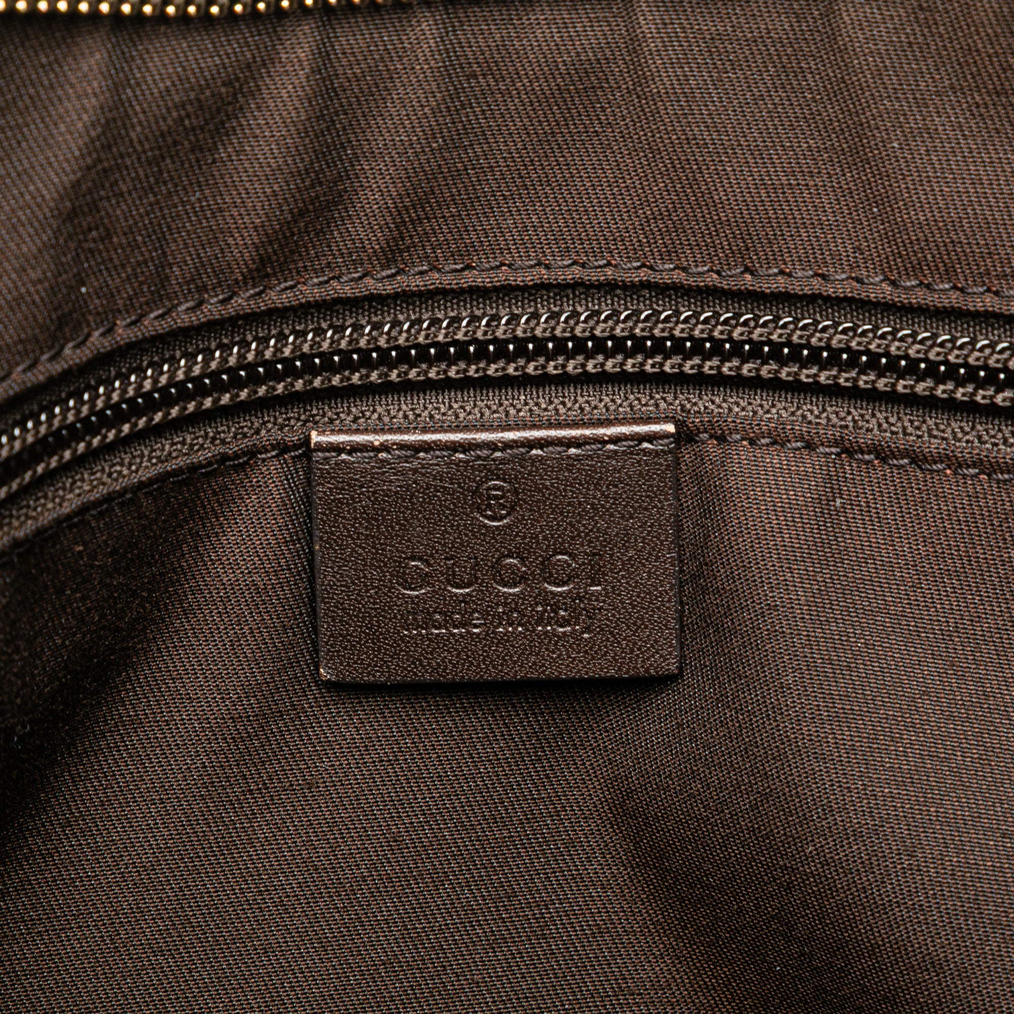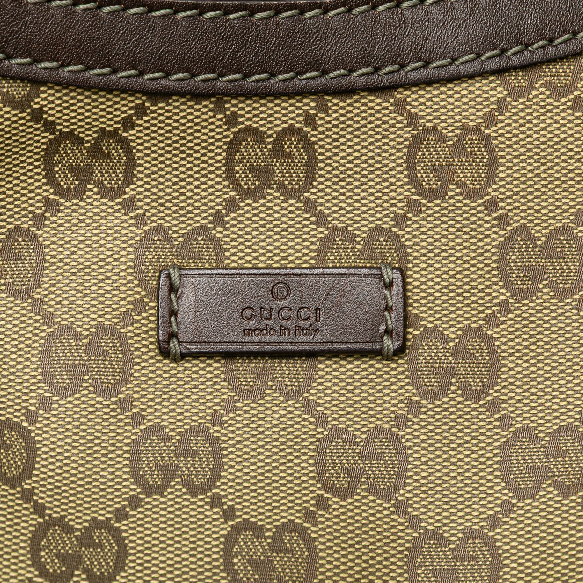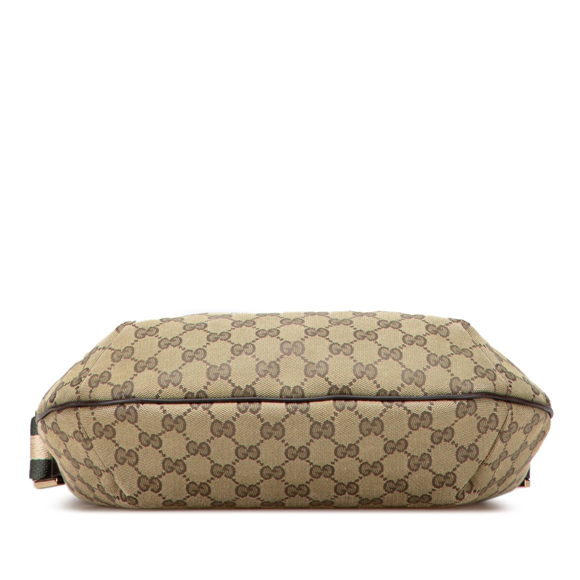 Product Details: Brown Gucci GG Canvas Web Crossbody. This crossbody bag features a canvas body with leather trim, an adjustable flat strap, a top zip closure, and interior zip and slip pockets. 9.4" L x 11" W x 1.2" D. Serial number 181092 002123.