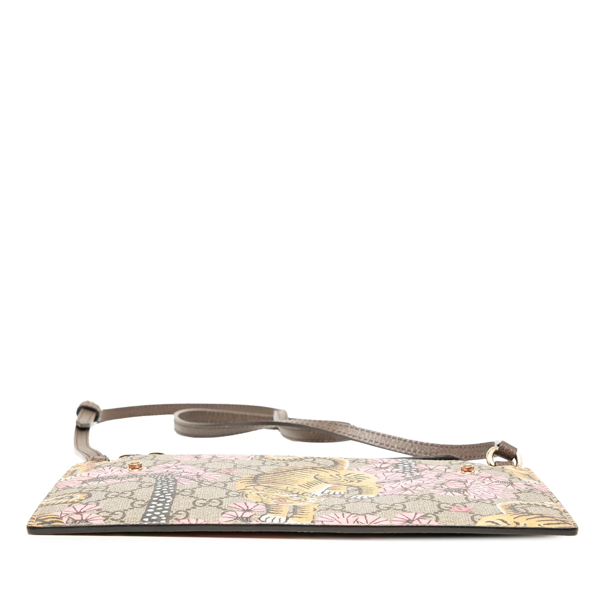 Brown Gucci GG Supreme Bengal Double Zip Pochette Crossbody Bag