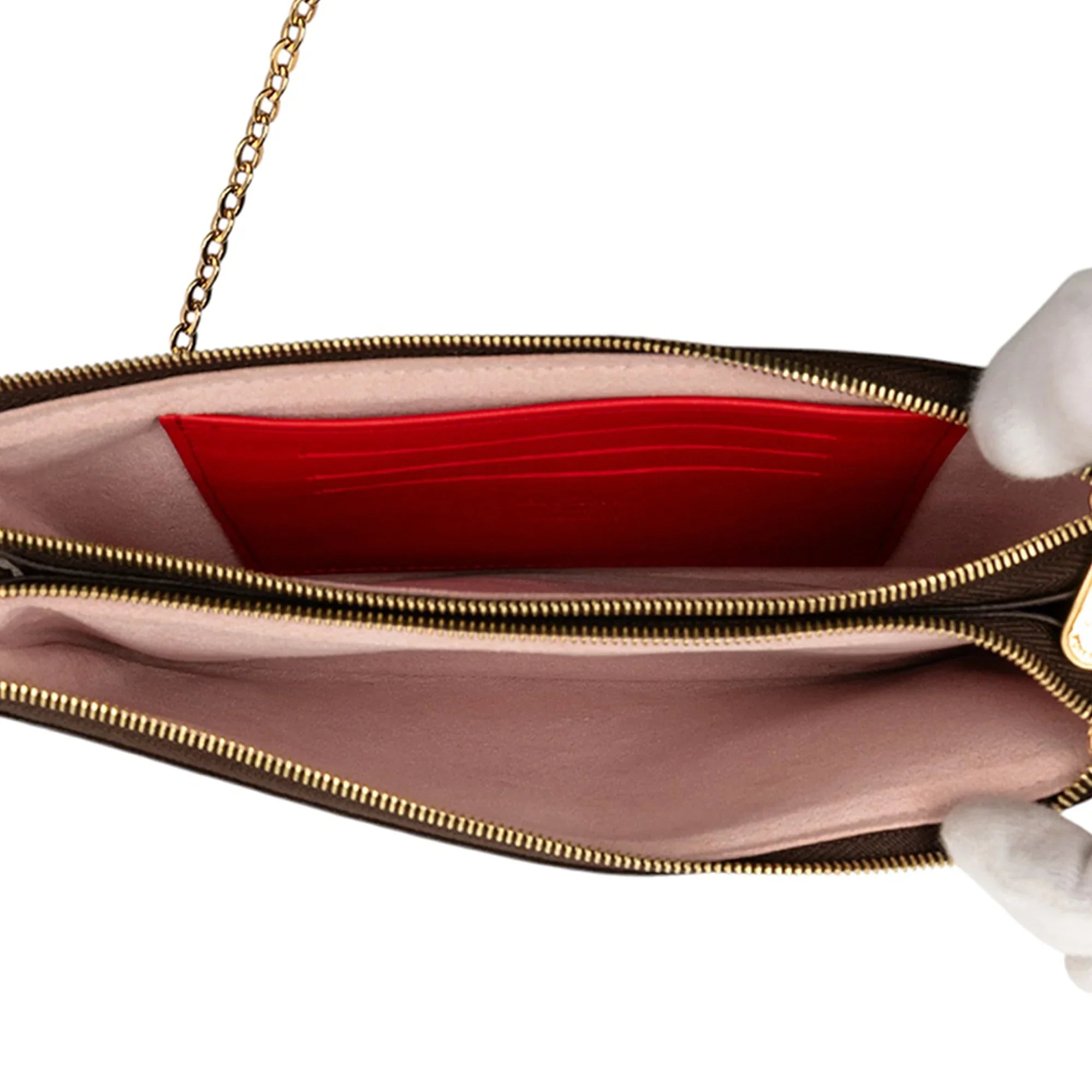 Brown Louis Vuitton Monogram Blooming Flowers Double Zip Pochette Crossbody Bag