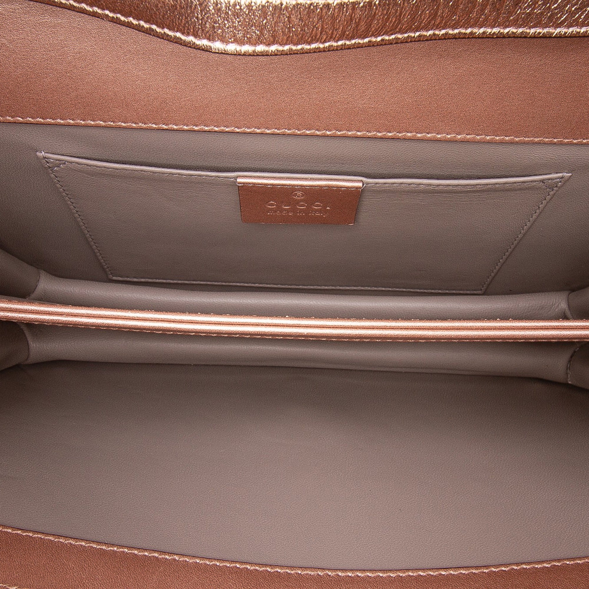 Please note this is a pre-owned item that may display signs of wear consistent with the condition listed above and shown in photos. Designer Revival guarantees this is an authentic Gold Gucci Metallic Leather Crystal Embellished Broadway Clutch on Strap Shoulder Bag or 100% of your money back. Learn more about our authentication process.