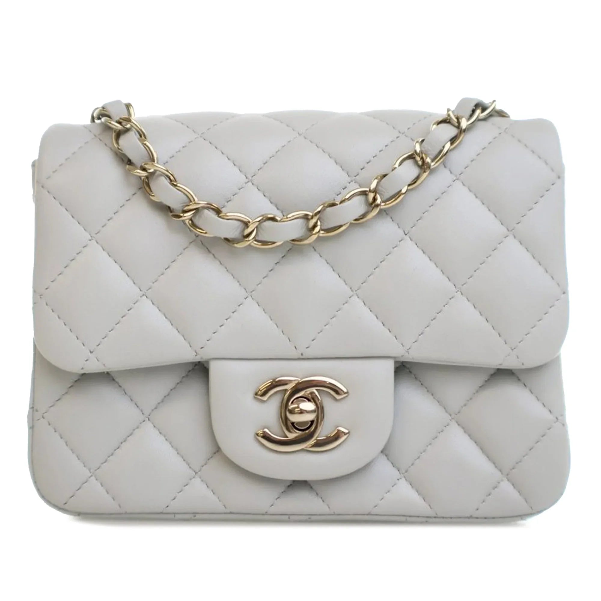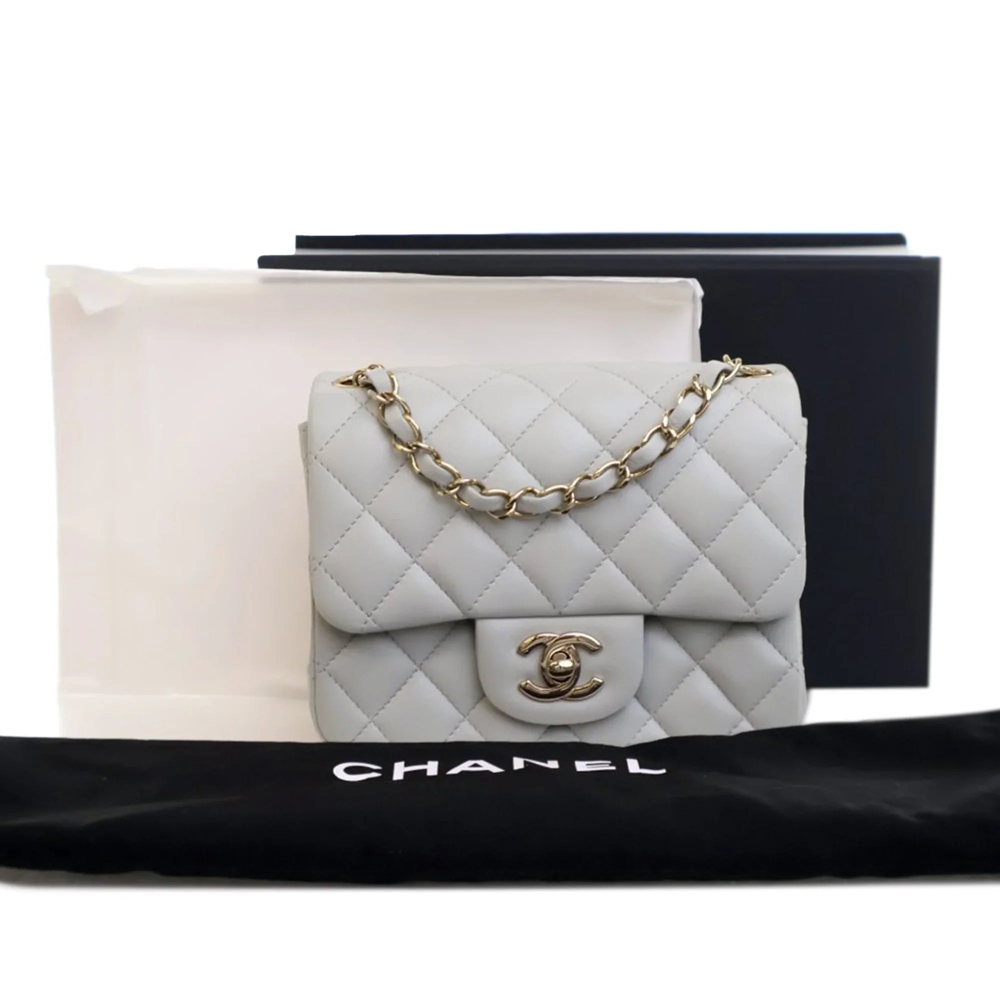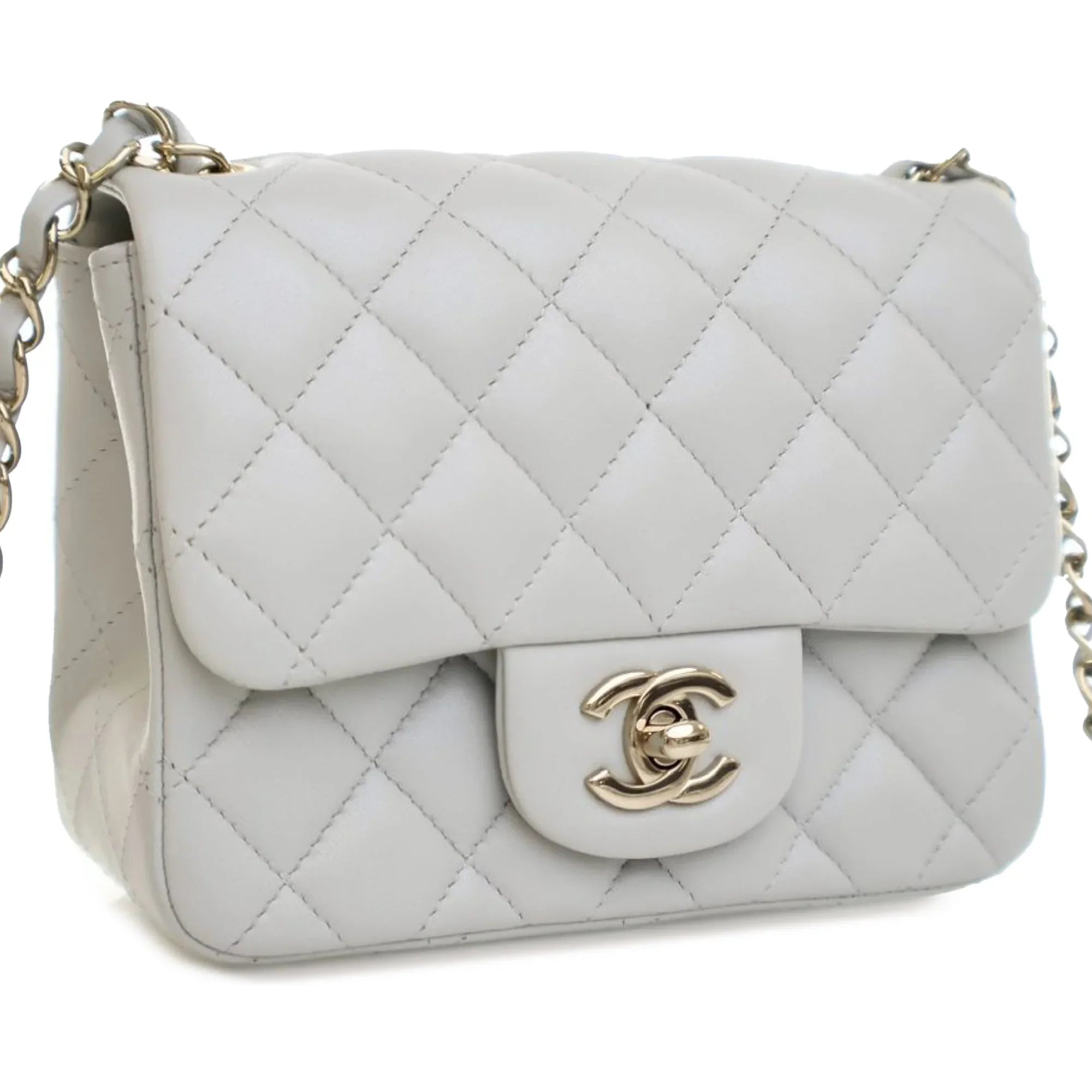 Gray Chanel Mini Square Classic Lambskin Single Flap Crossbody Bag
