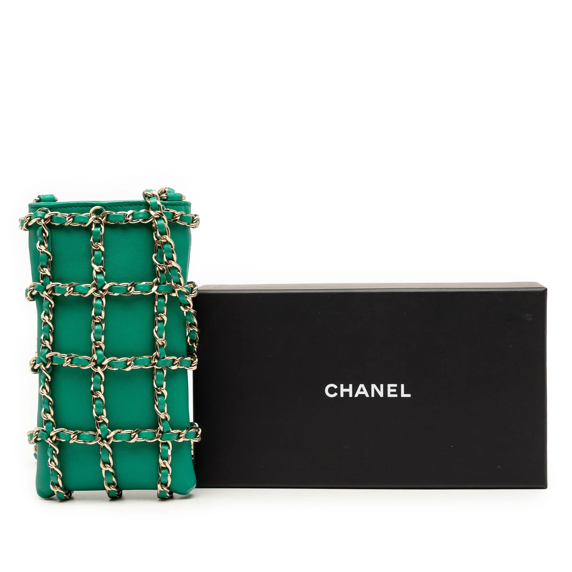 Green Chanel Lambskin Tech Me Out Clutch With Chain Crossbody Bag