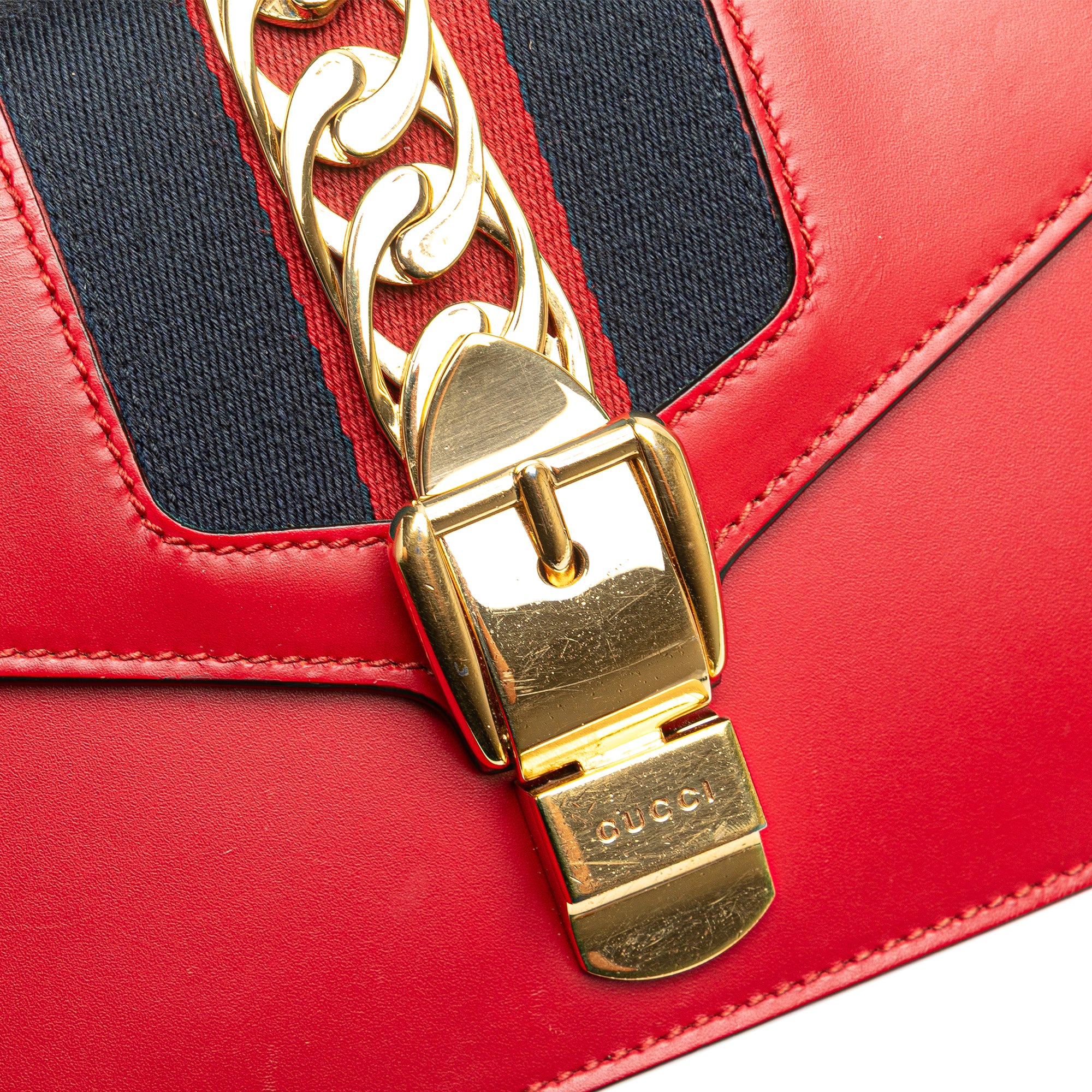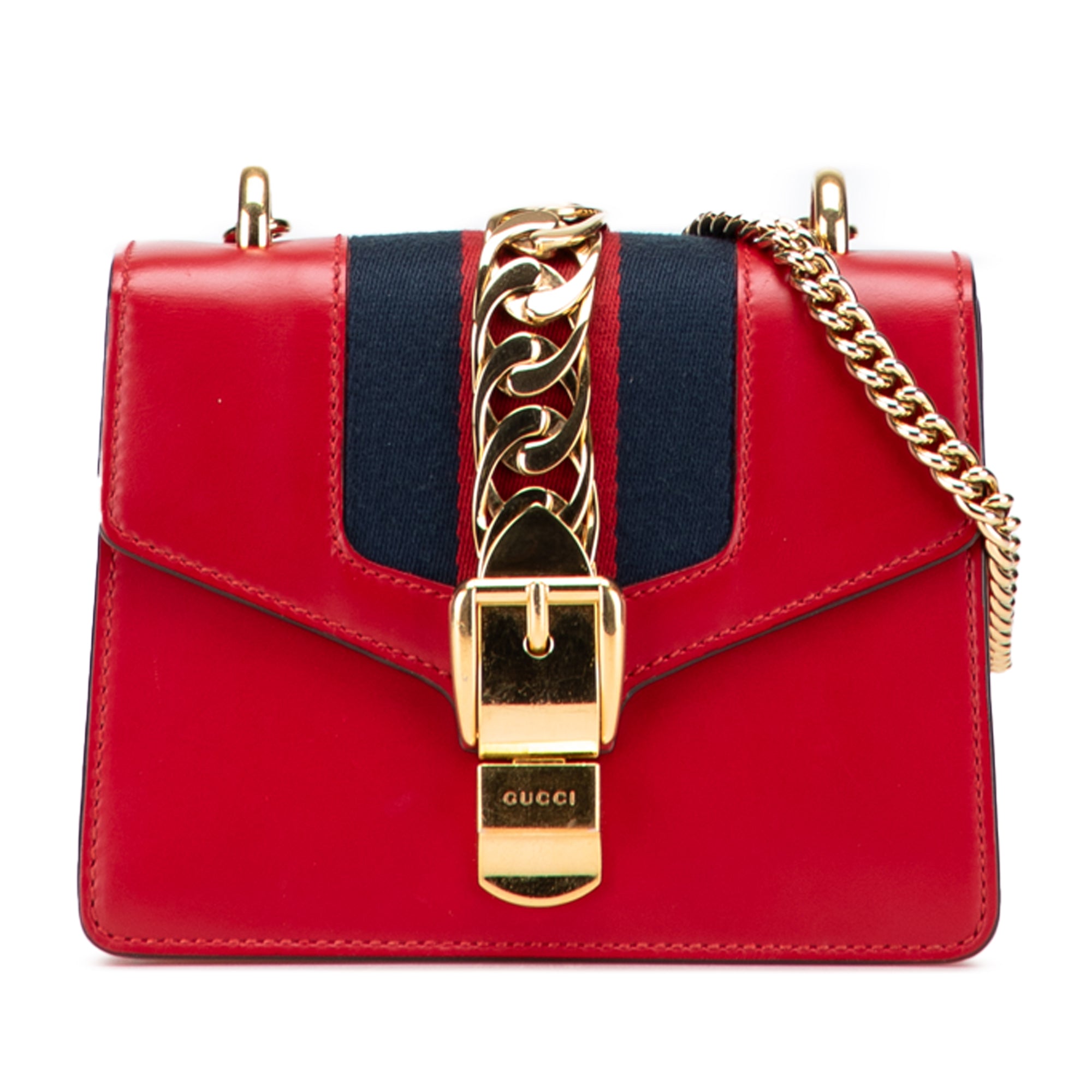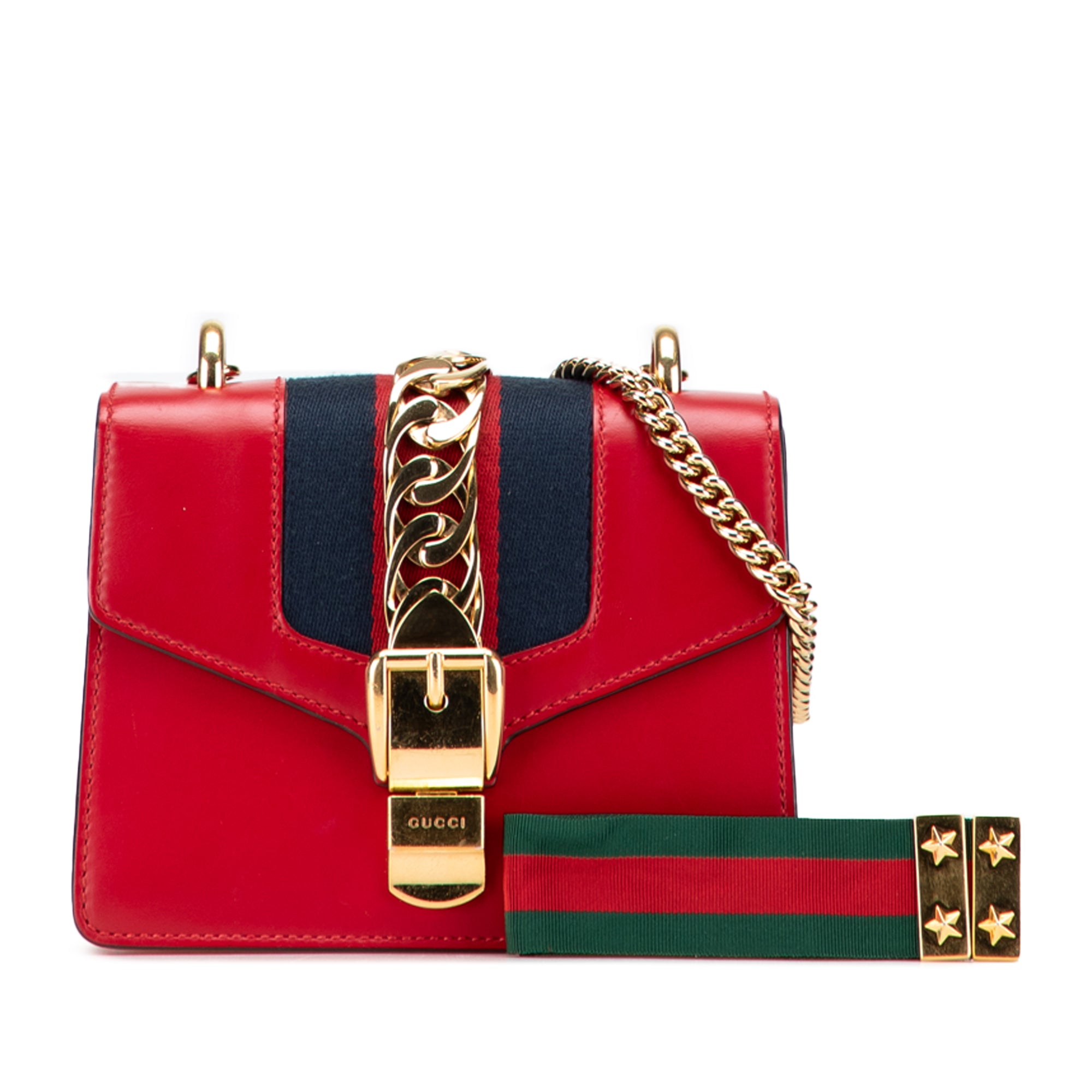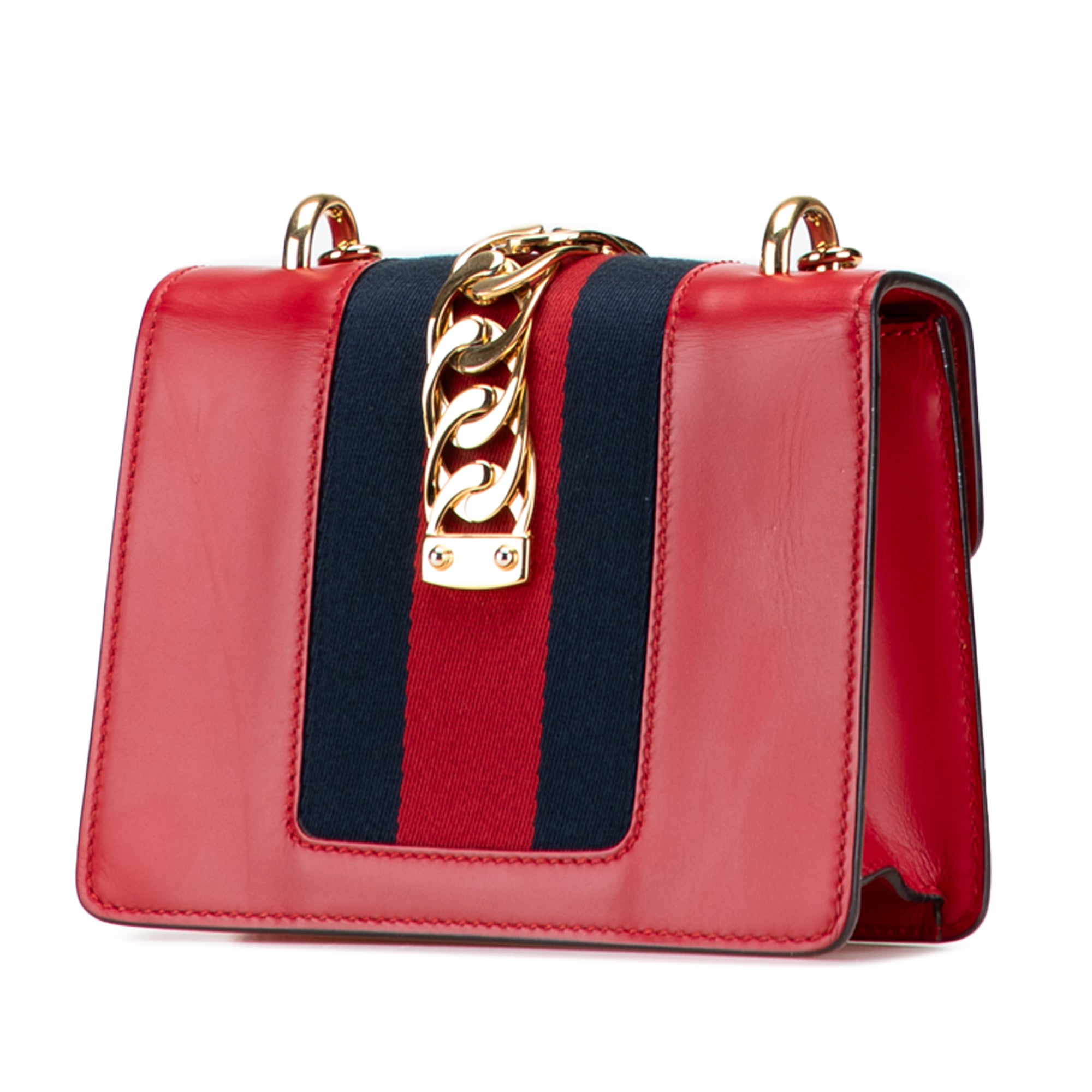 Red Gucci Mini Leather Sylvie Chain Crossbody - Designer Revival Red Gucci Mini Leather Sylvie Chain Crossbody - Designer Revival