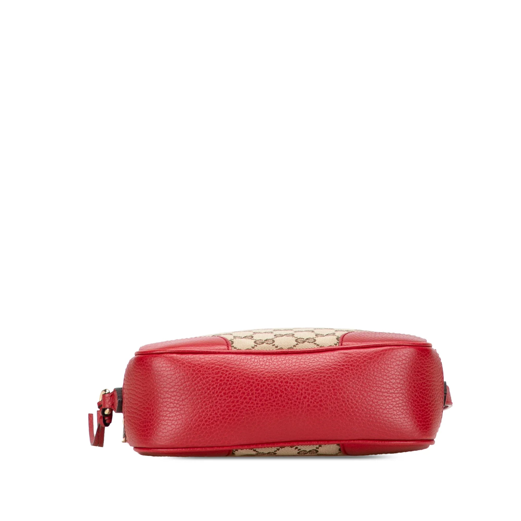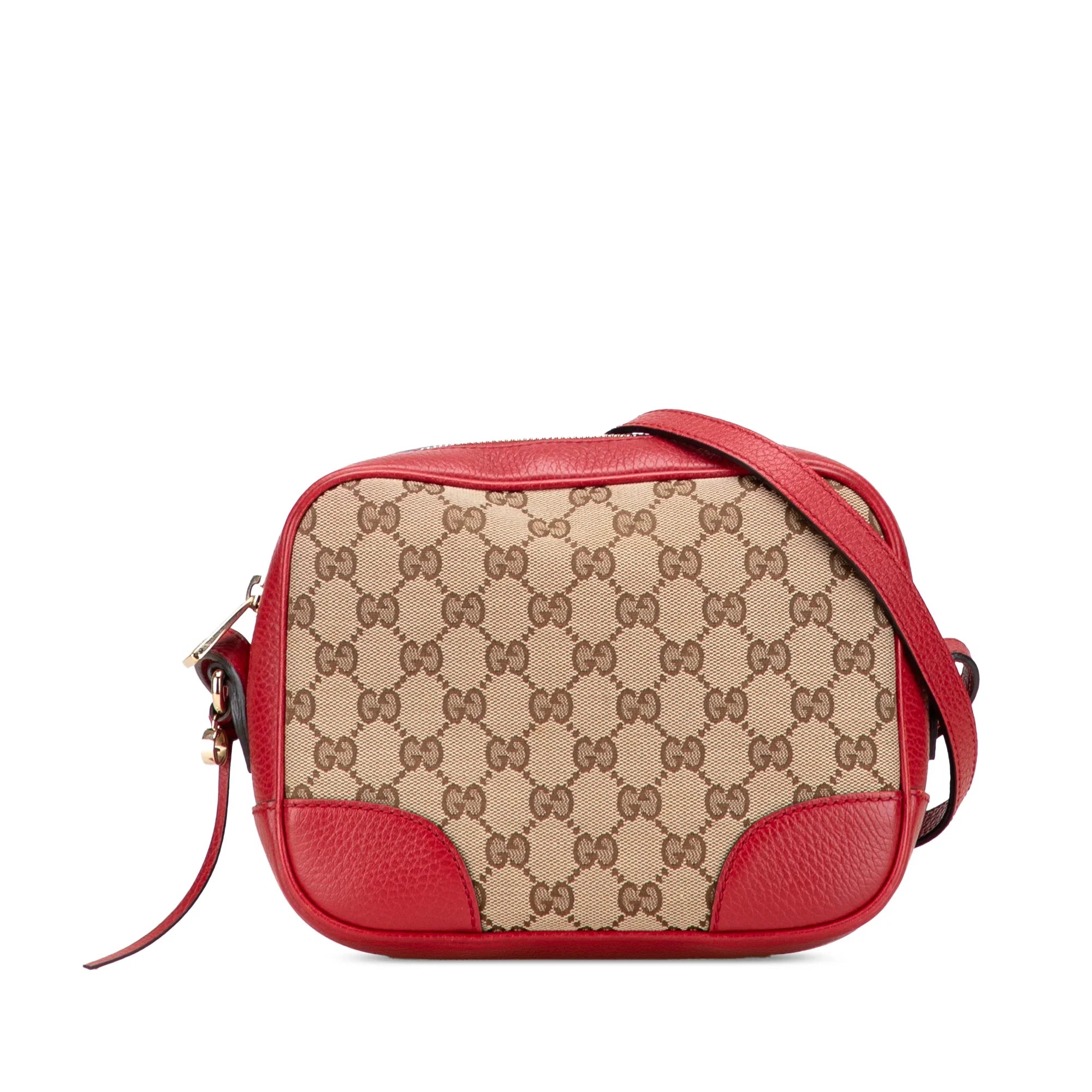 Product Details: Tan Gucci GG Canvas Bree Crossbody. The Bree crossbody bag features a canvas body with leather trim, a flat leather shoulder strap, a top zip closure, and interior slip pockets. 6.3" L x 8.3" W x 2.8" D. Serial number 449413 585795.