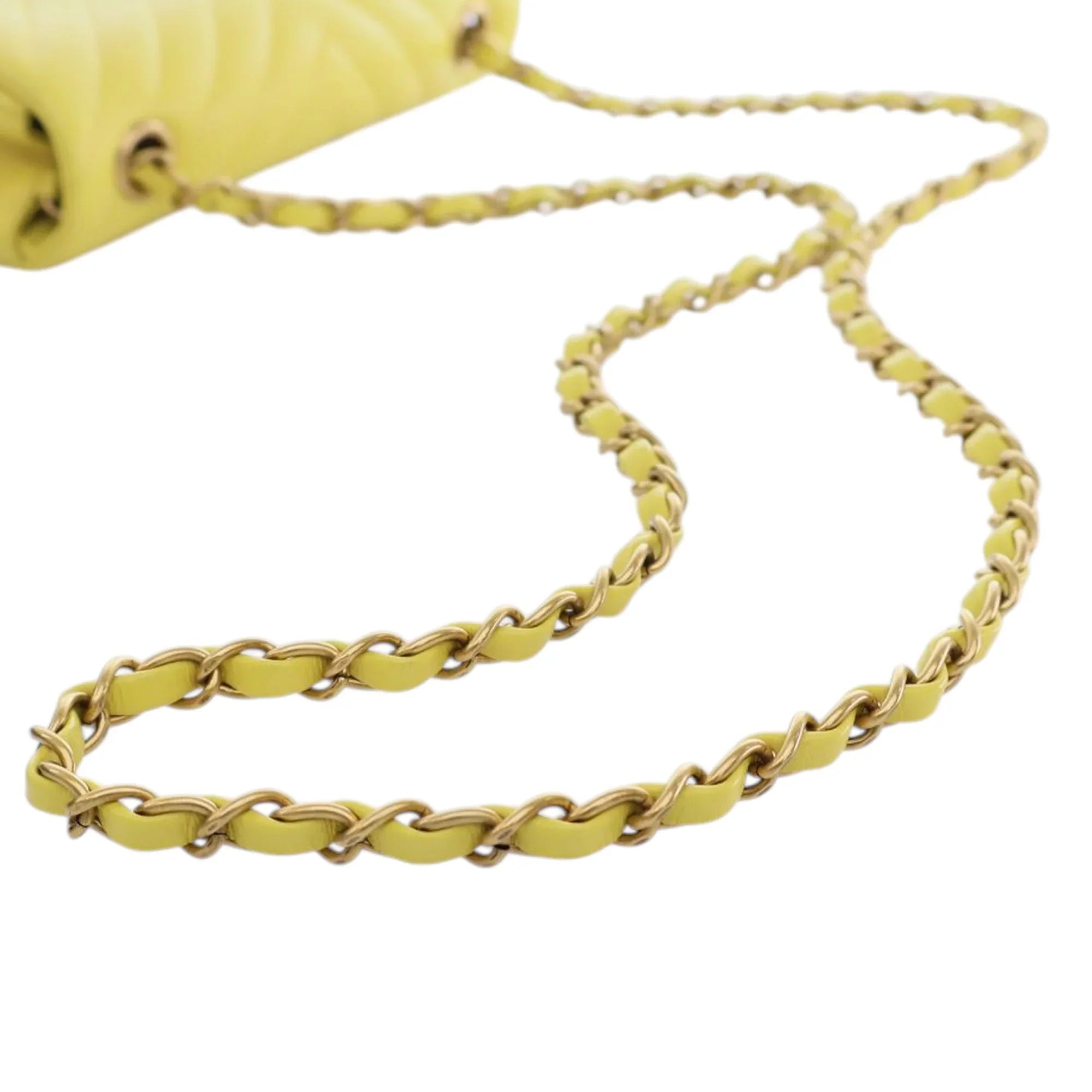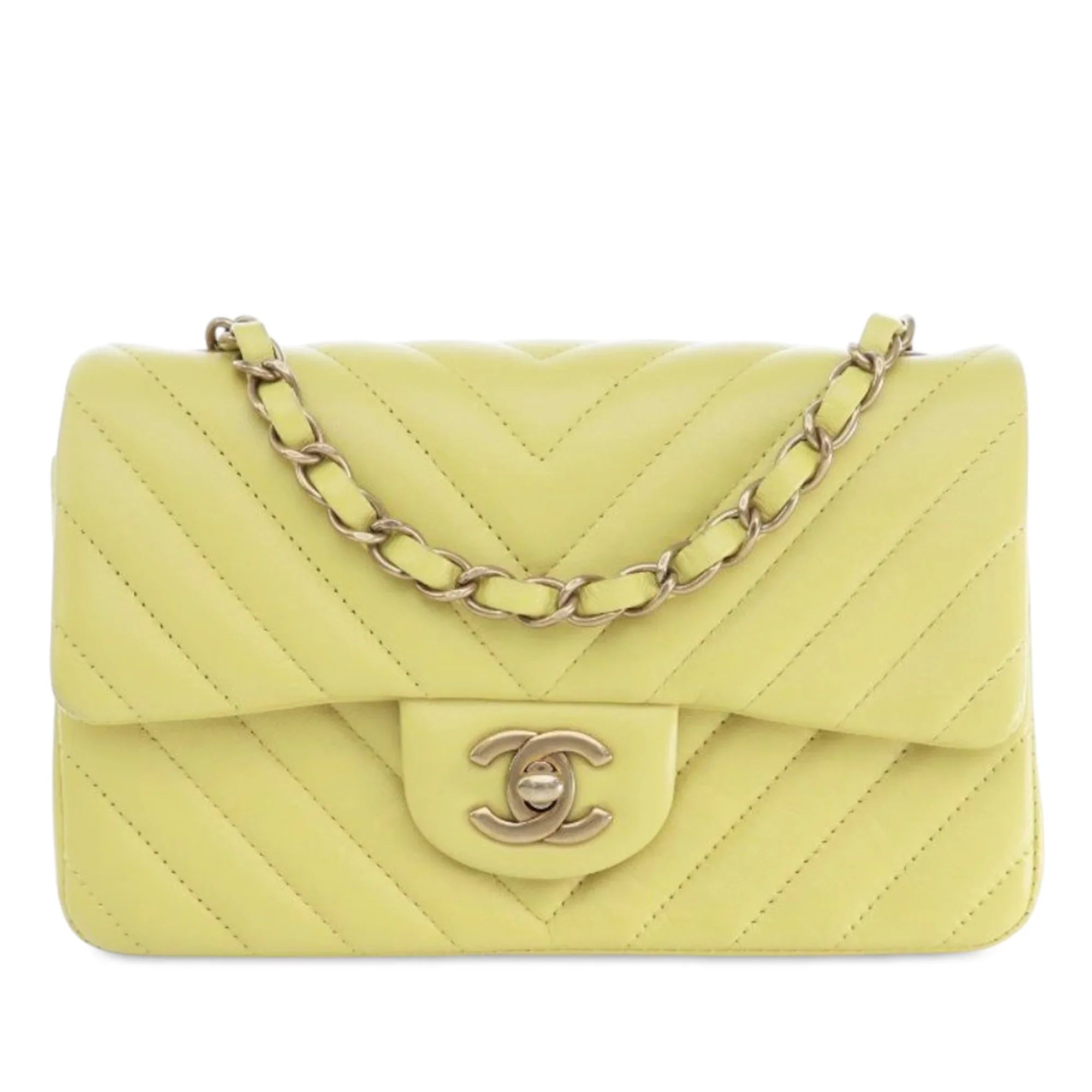 Yellow Chanel Mini Rectangular Classic Chevron Lambskin Single Flap Crossbody Bag
