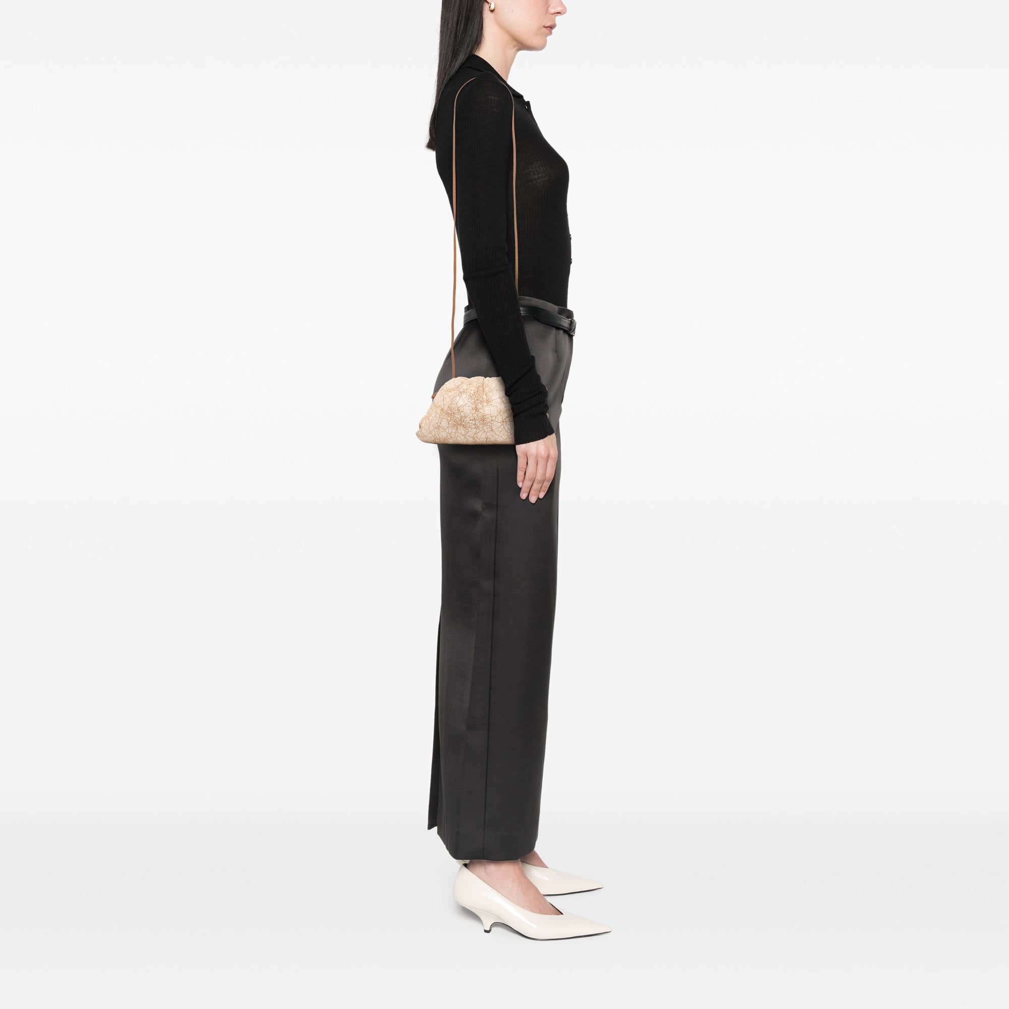 Brown Bottega Veneta Crackled Calfskin The Mini Pouch Crossbody